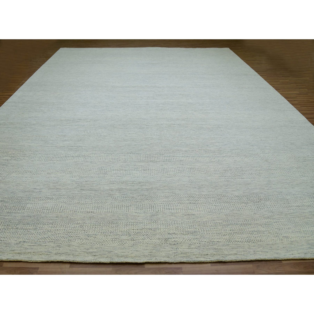 14'x18'1" Eider White, Hand Knotted Velvety Wool, Organic Sustainable Textile, Tone On Tone, Modern Grass Design, Xl Oriental RugFWR479880