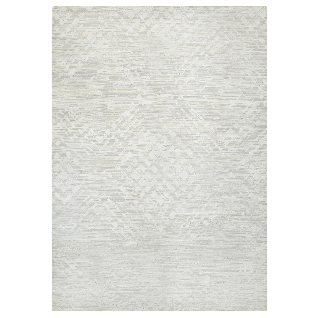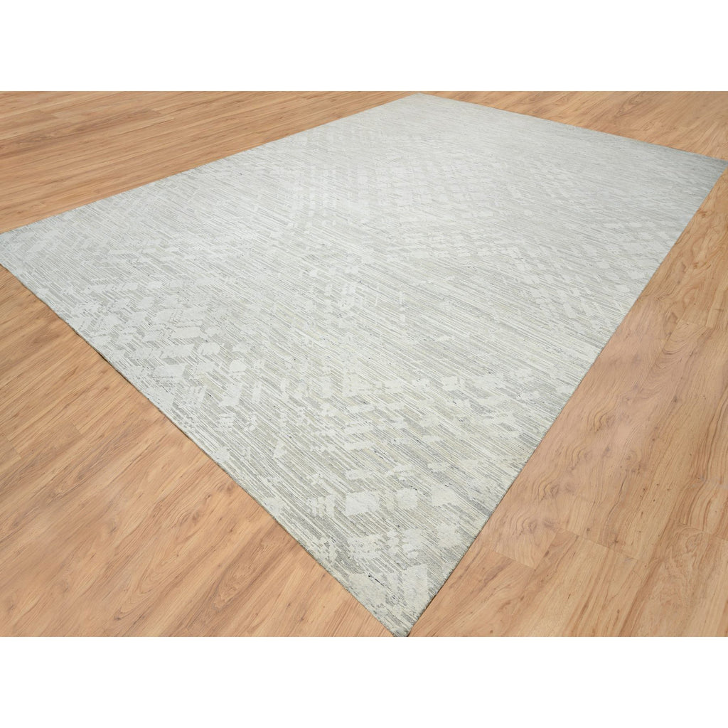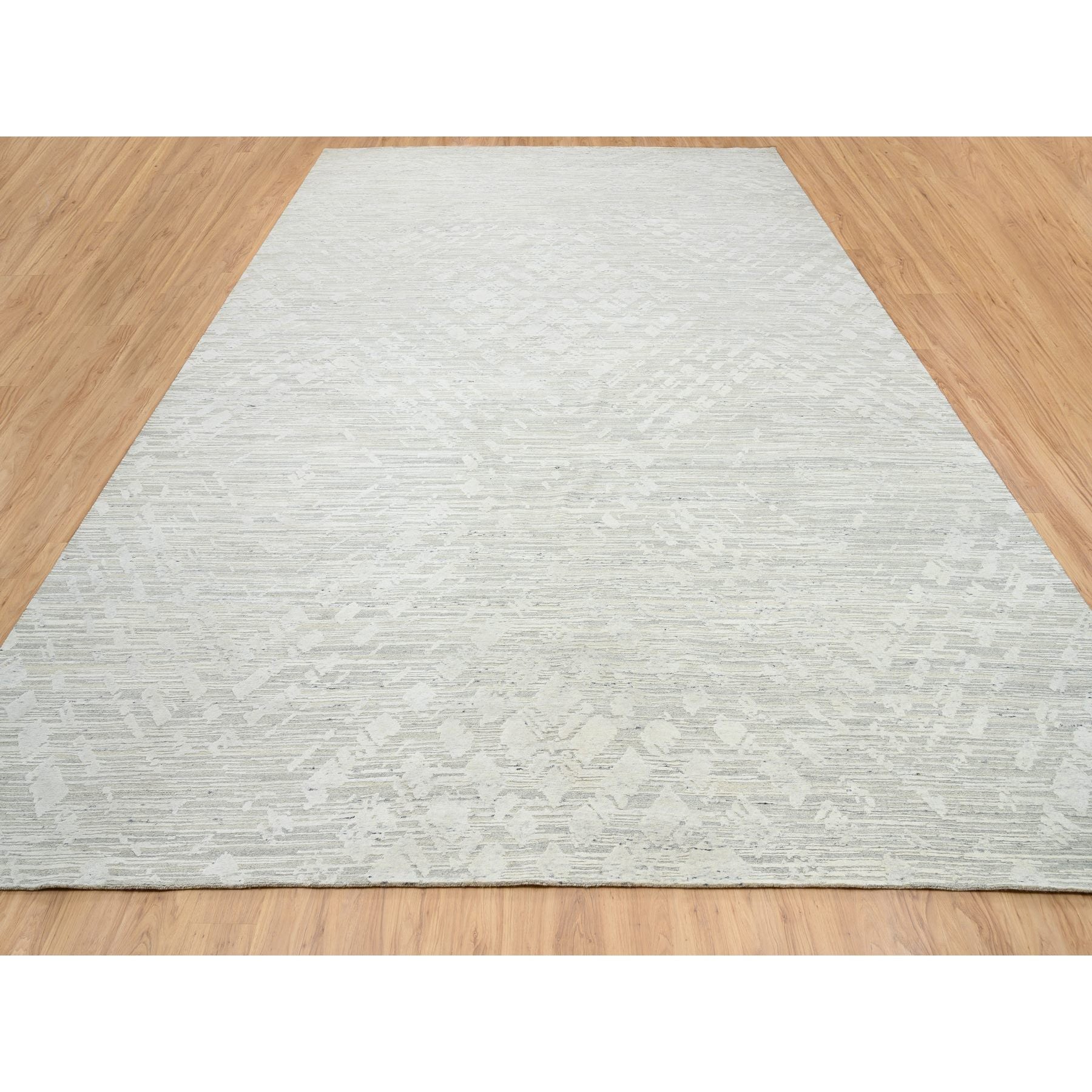 14'x19'9" Light Gray, Hand Spun Undyed Natural Wool, Hand Knotted, Modern Design, Oversized Oriental Rug FWR388272