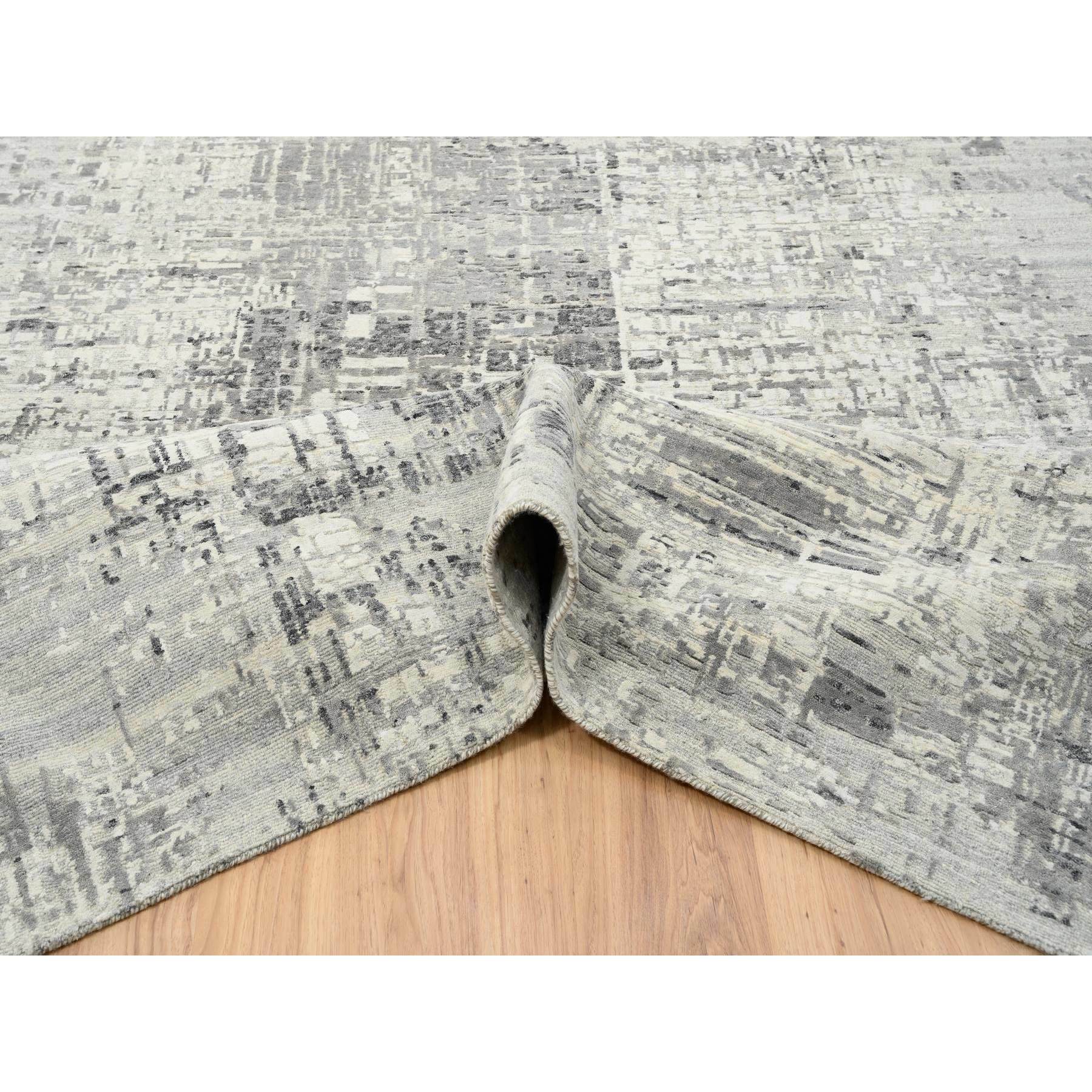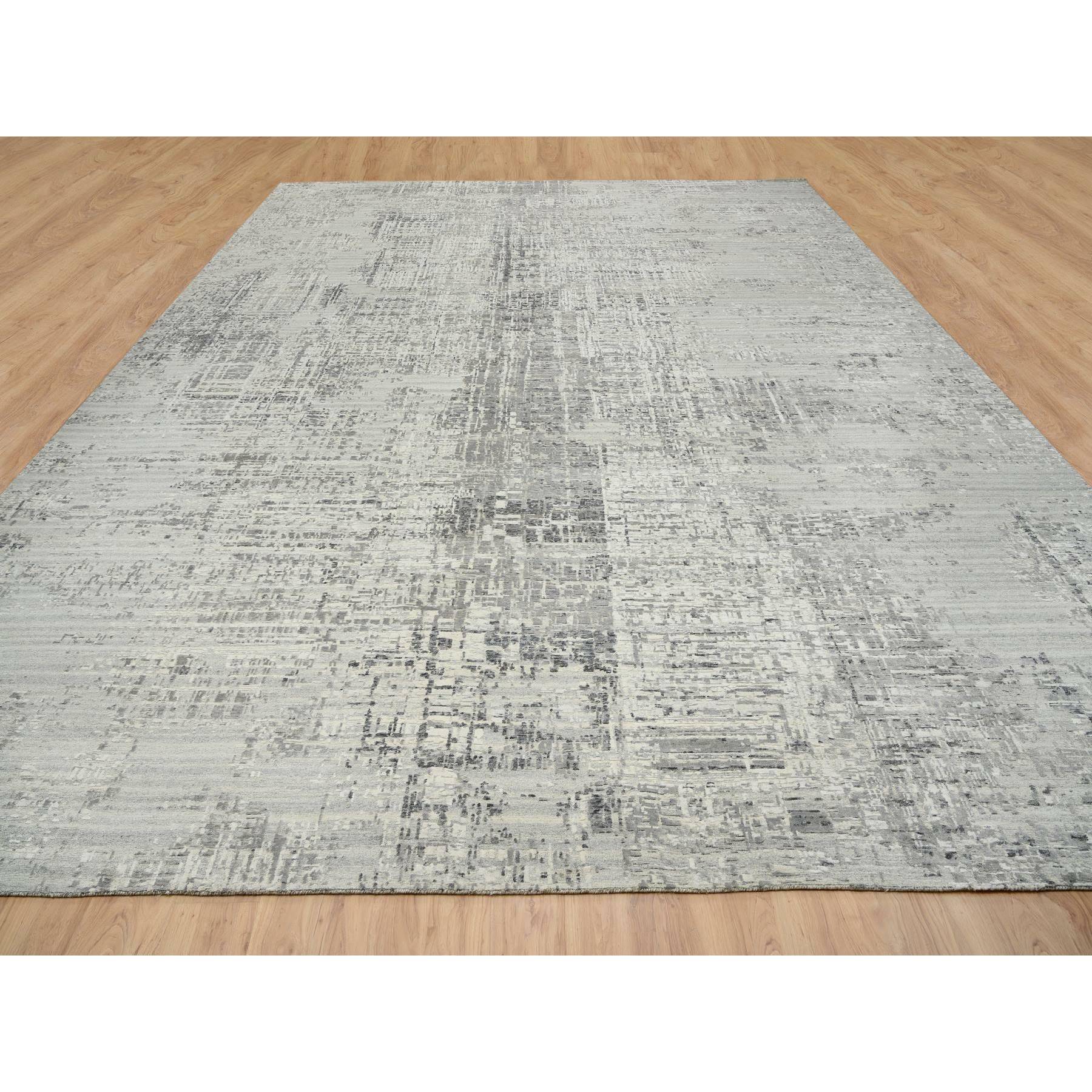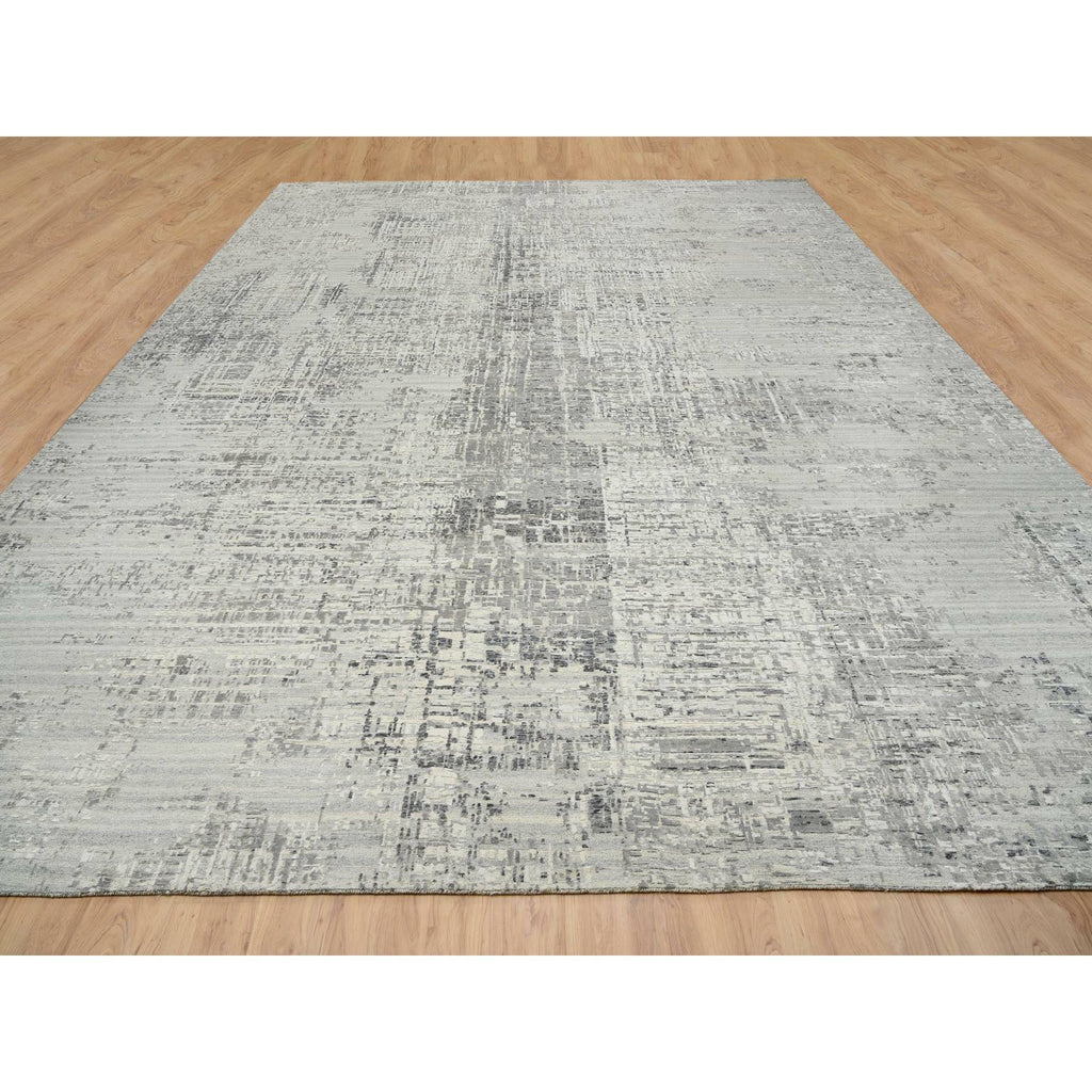 14'x20' Light Gray, Hand Knotted, Modern Design, Hand Spun Undyed Natural Wool, Oversized Oriental Rug FWR390984