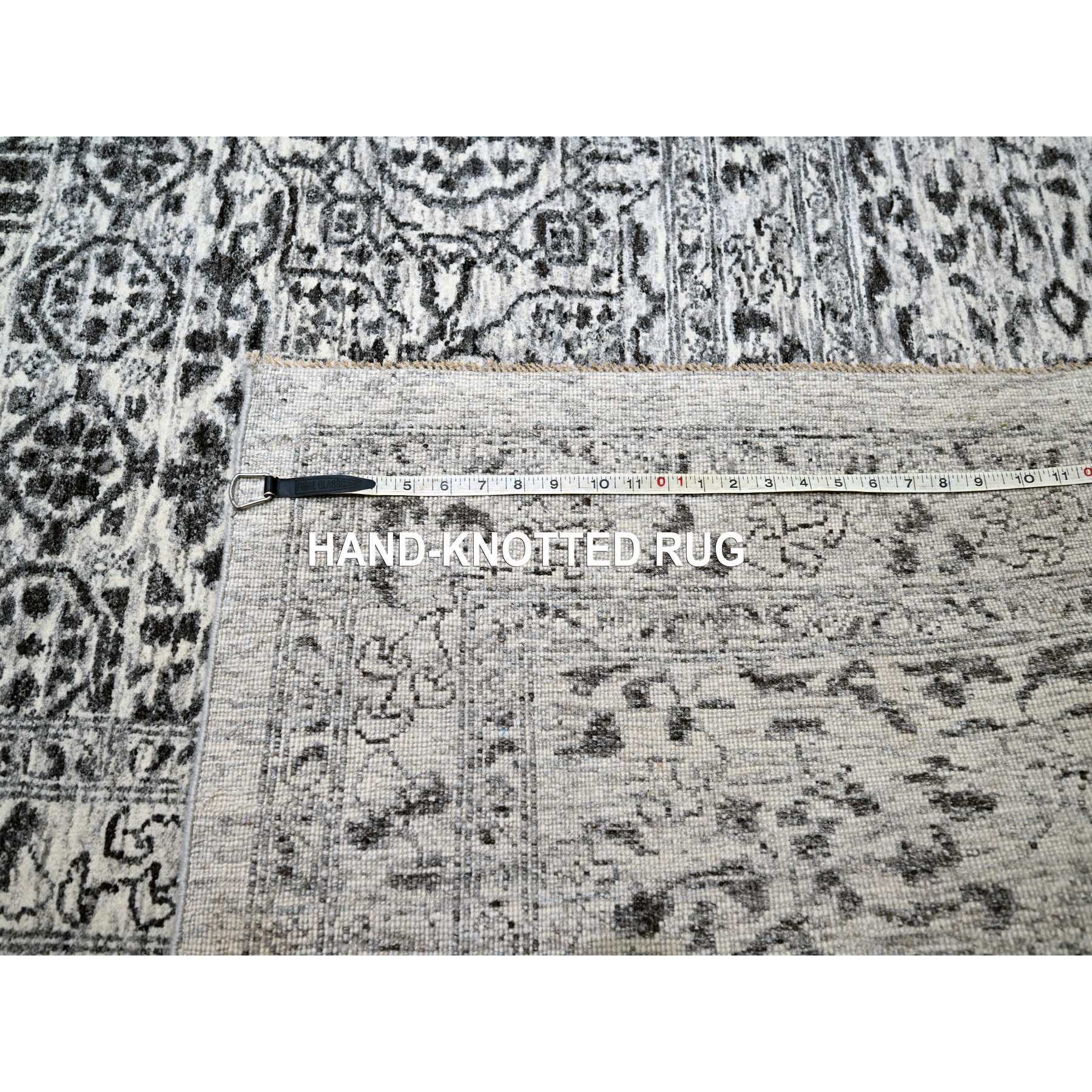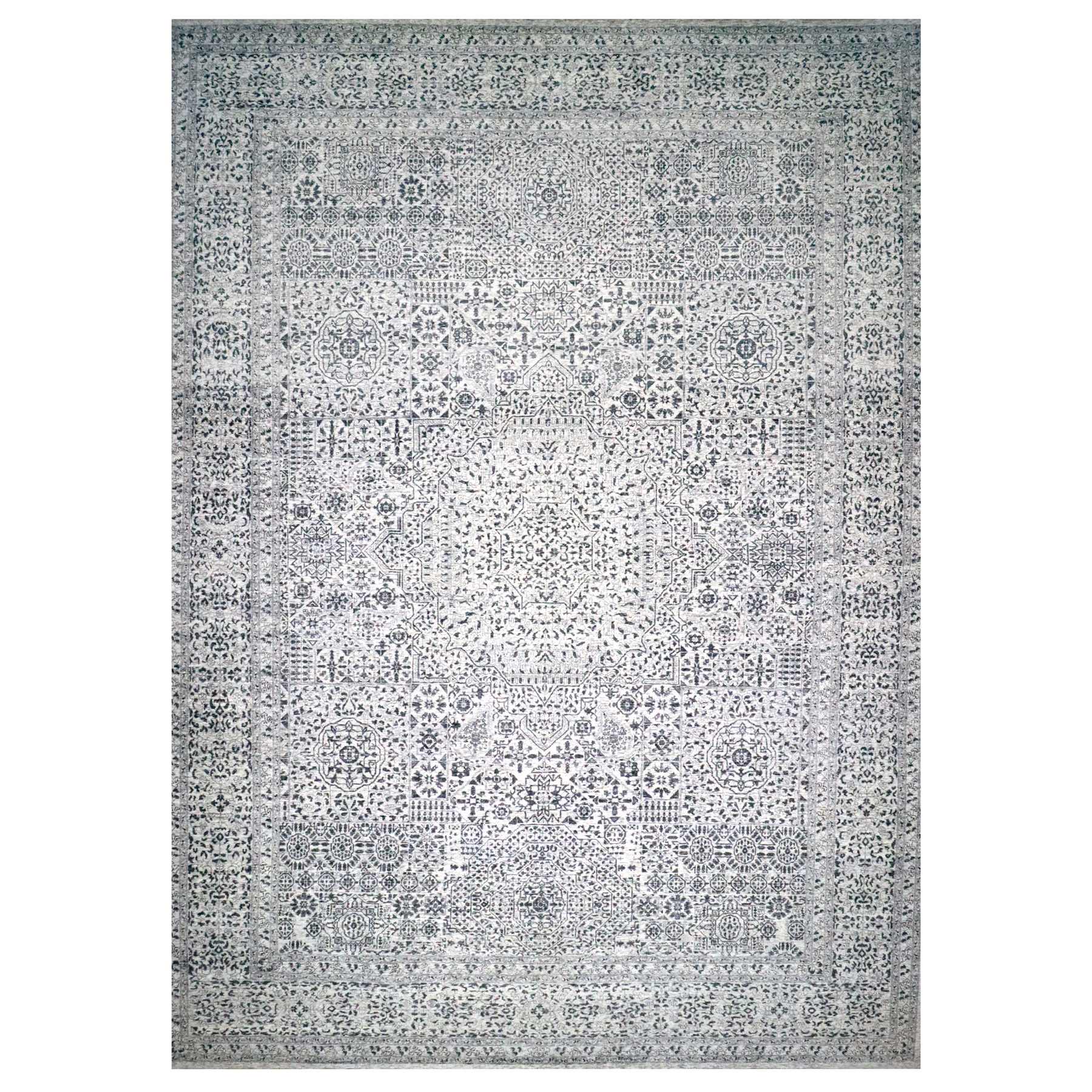 15'x20' Powder White, Mamluk Dynasty, Tone On Tone Design, Undyed Natural Wool, Densely Woven, Hand Knotted, Oversized, Oriental Rug FWR456714