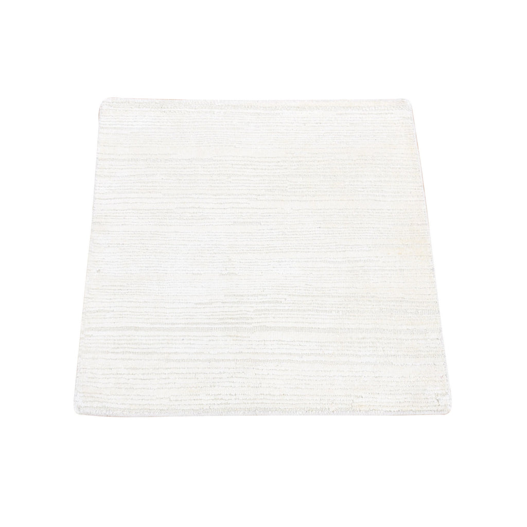2'1"x2'1" Ivory, Hand Knotted Modern Design, Silk With Textured Wool, Sample Fragment, Mat Square Oriental Rug FWR482778