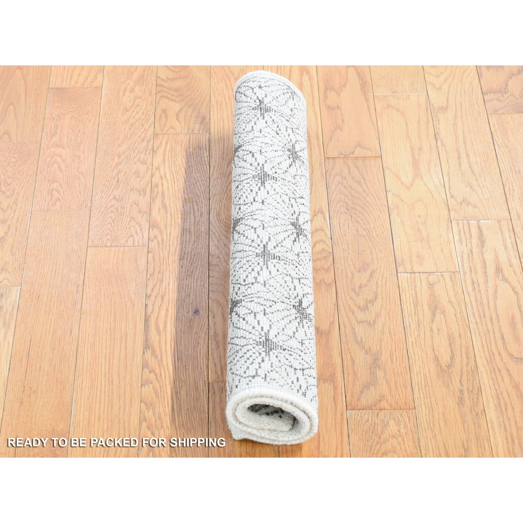2'1"x2'1" Ivory, Modern Design With Intricate All Over Pattern, Wool And Silk Hand Knotted, Square Sample Oriental Rug FWR483648