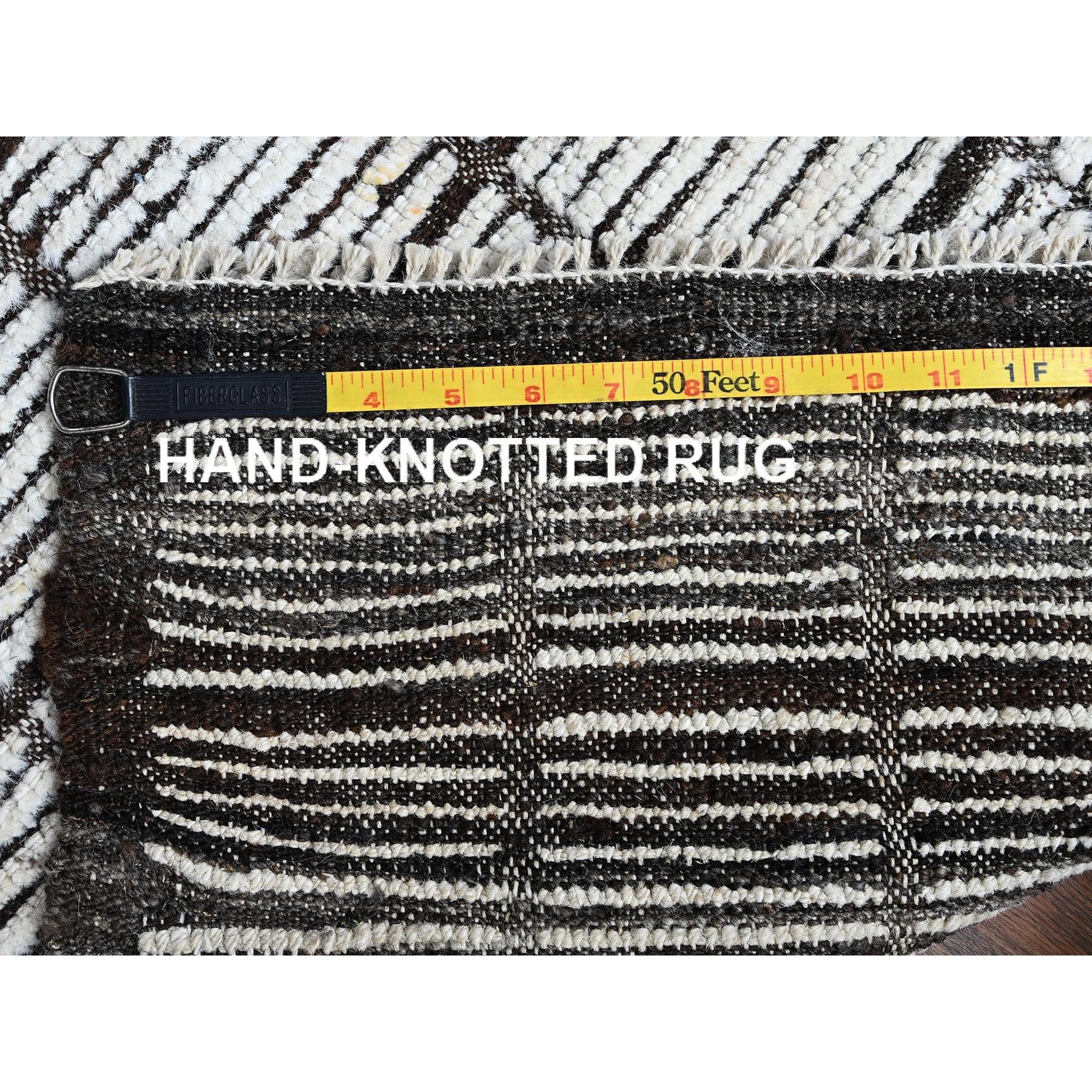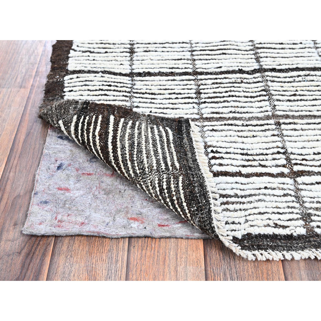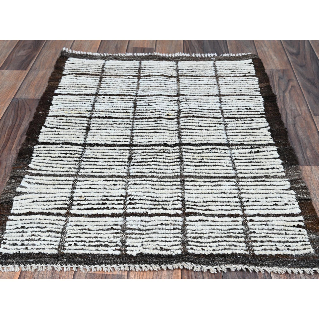 2'1"x2'10" Cotton White, Moroccan Weave With Grid Design, Textured Pile, Undyed Natural Wool, Hand Knotted, Tone On Tone, Mat, Sample, Oriental Rug FWR8364