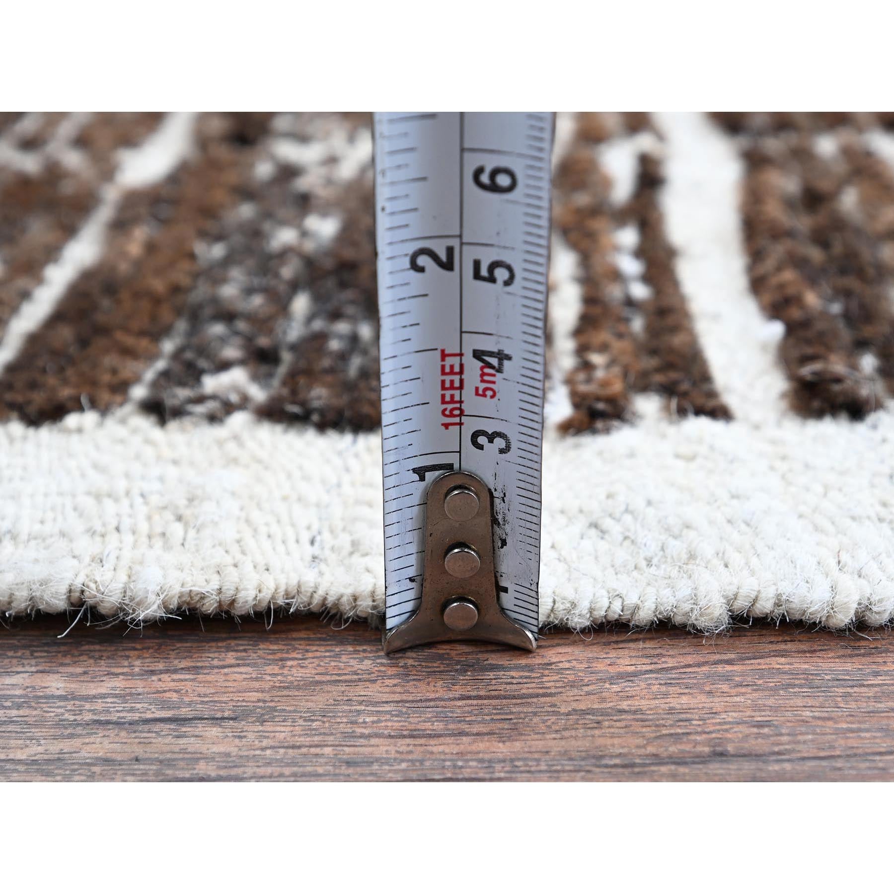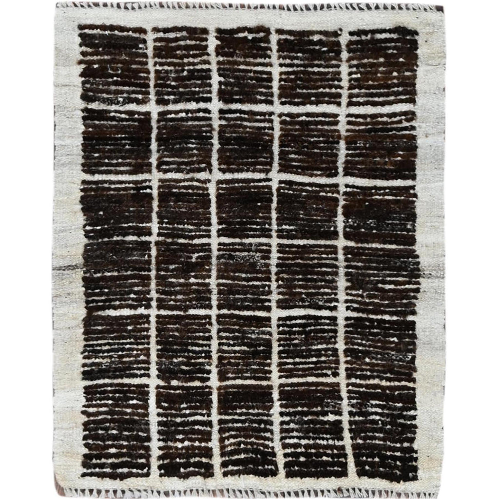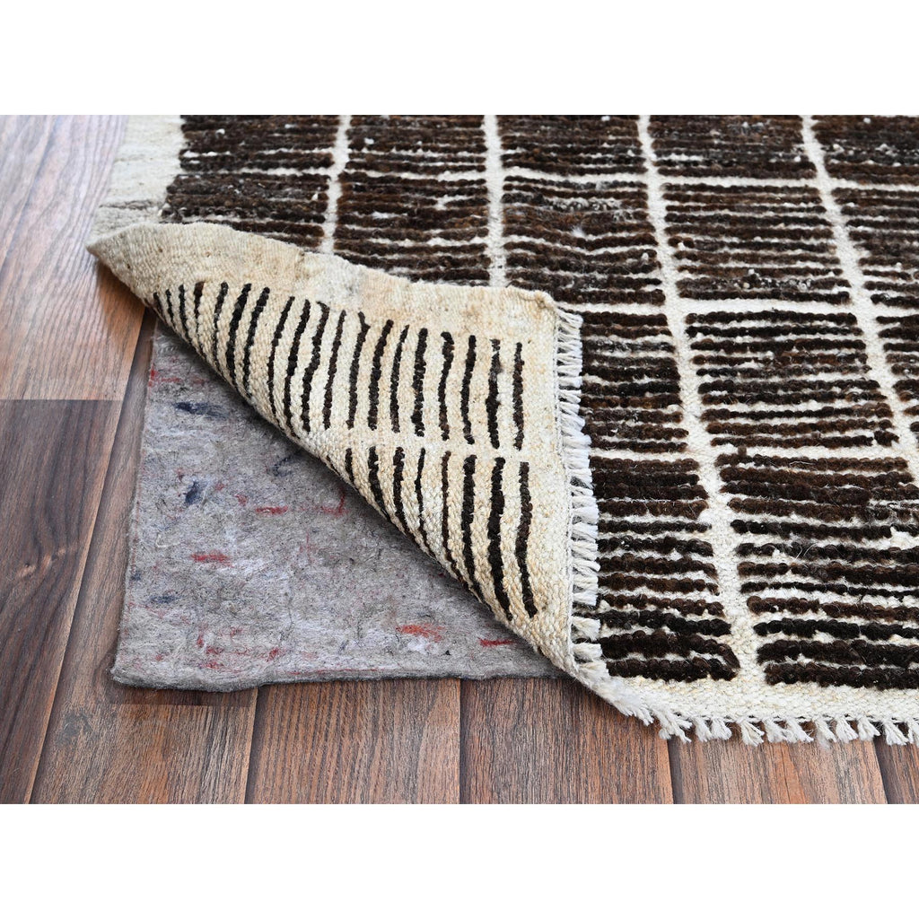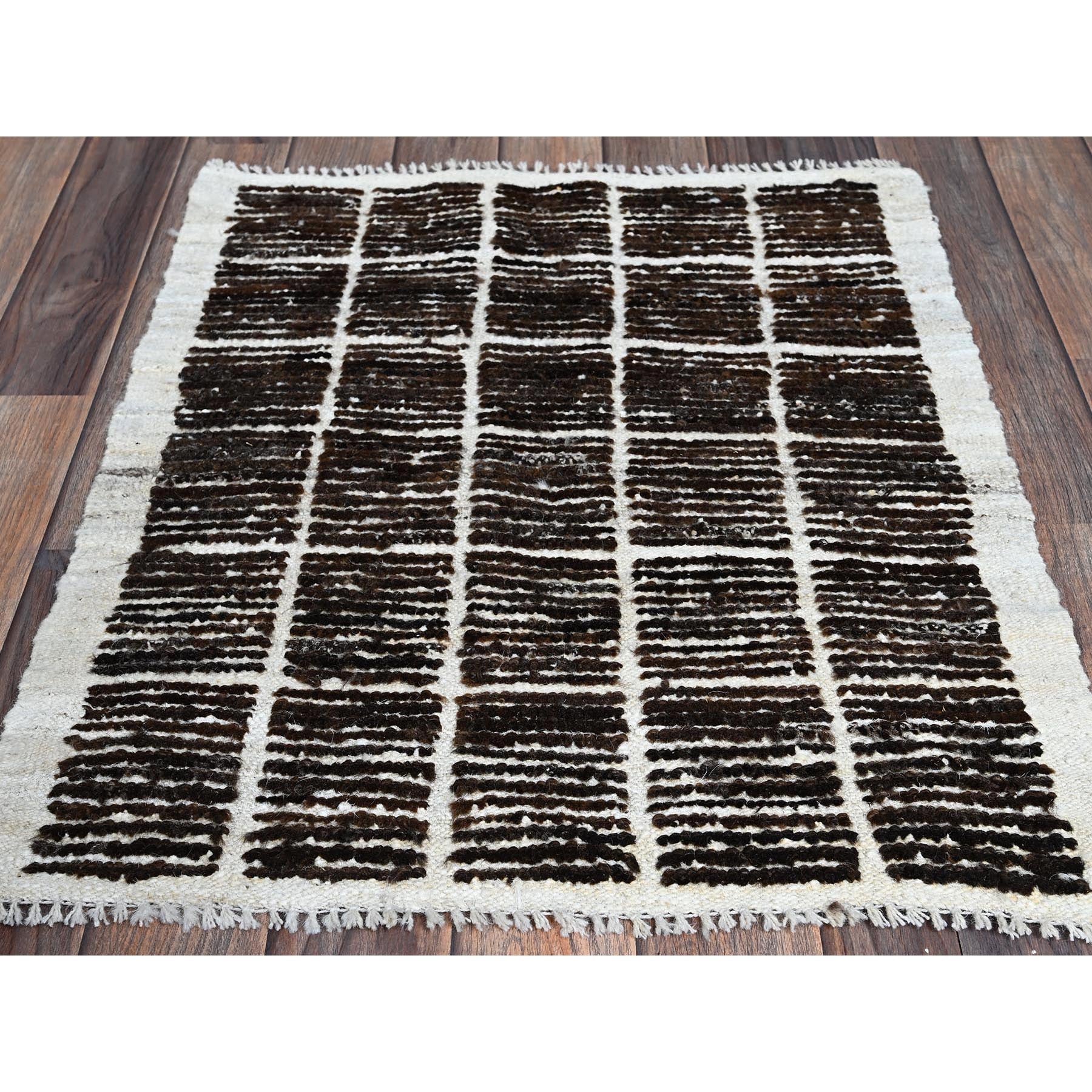 2'1"x2'7" Chocolate Brown, Moroccan Weave With Box Design, Textured Pile, Undyed Natural Wool, Tone On Tone, Hand Knotted, Sample, Mat, Oriental Rug FWR8334