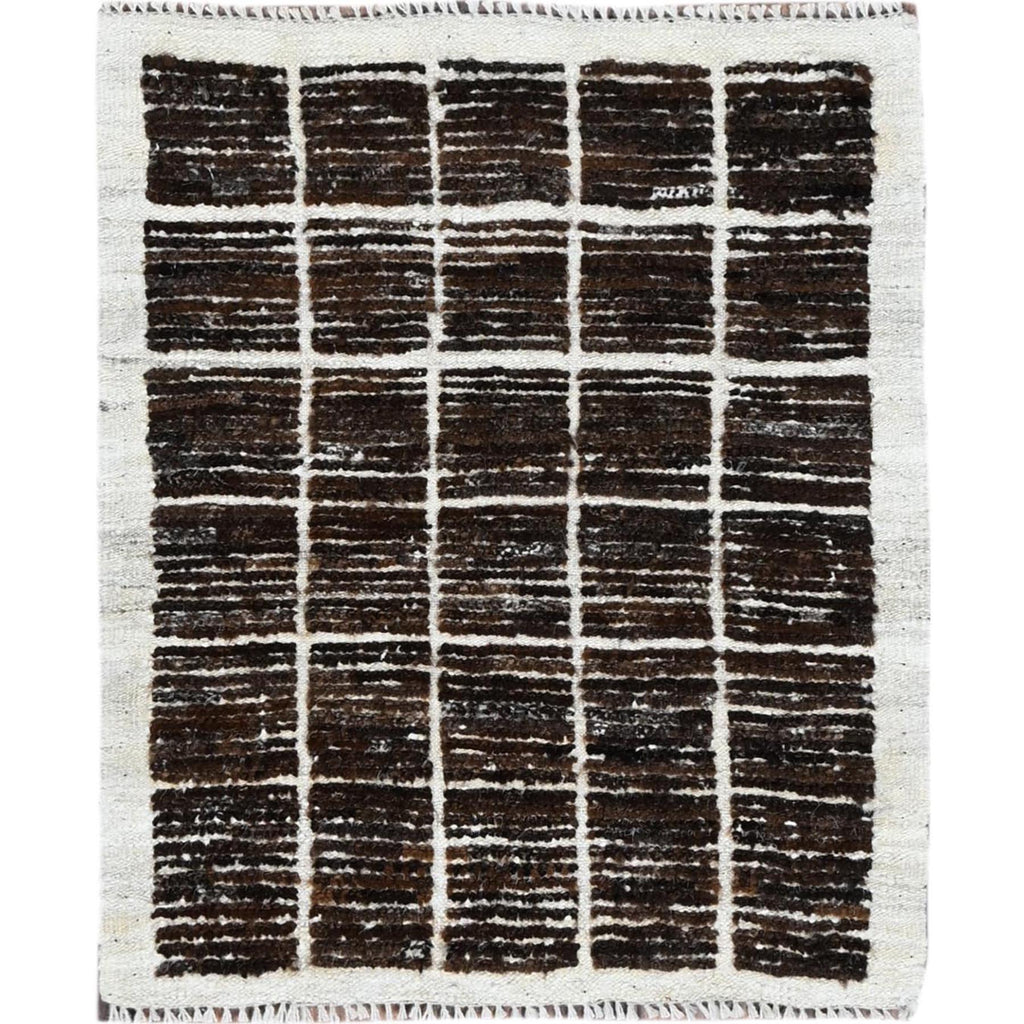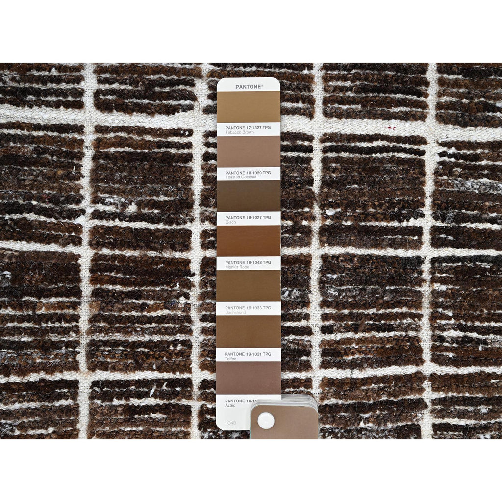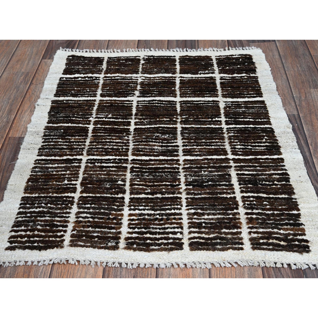 2'1"x2'7" Chocolate Brown, Moroccan Weave With Grid Design, Textured Pile, Tone On Tone, Undyed Natural Wool, Hand Knotted, Sample, Mat, Oriental Rug FWR8328