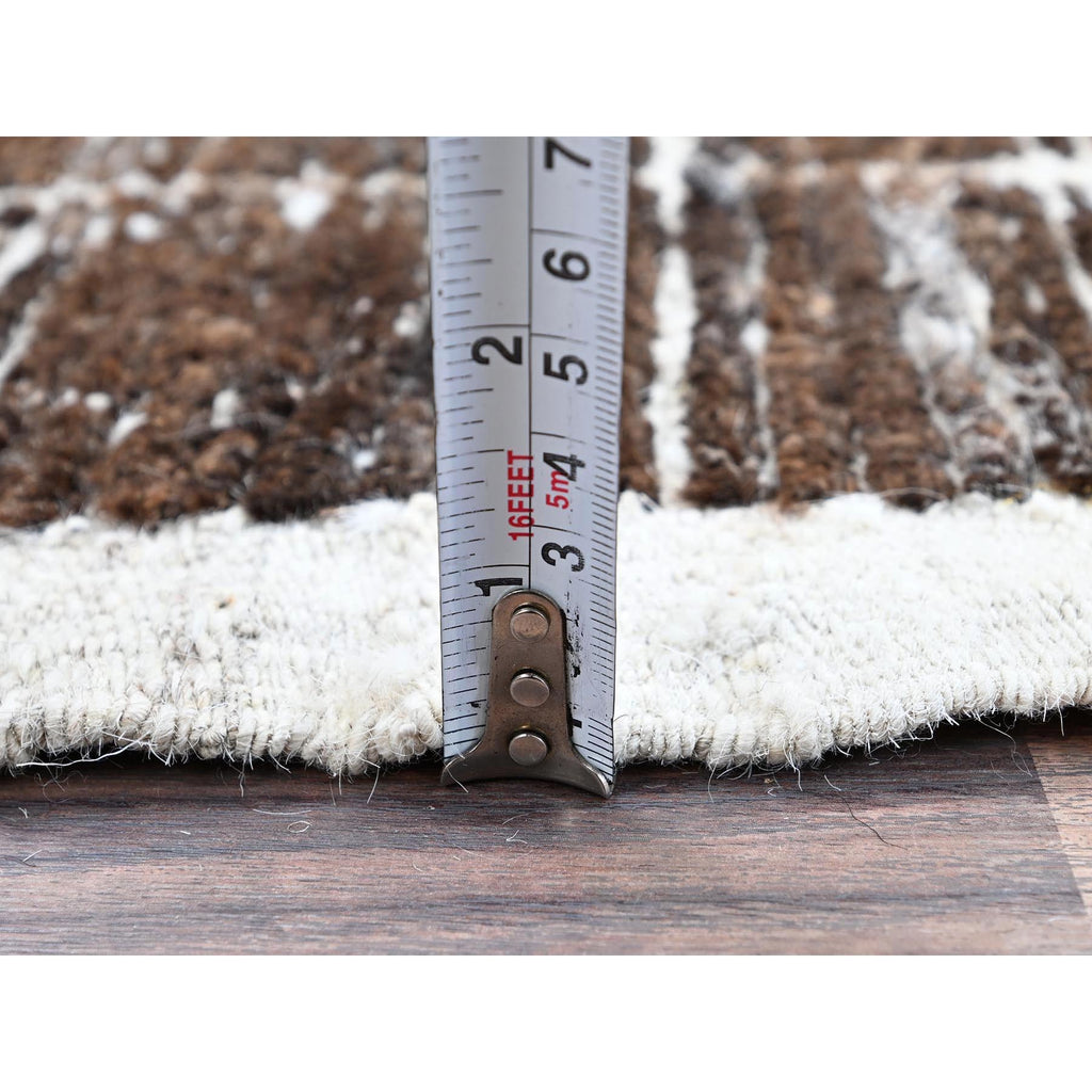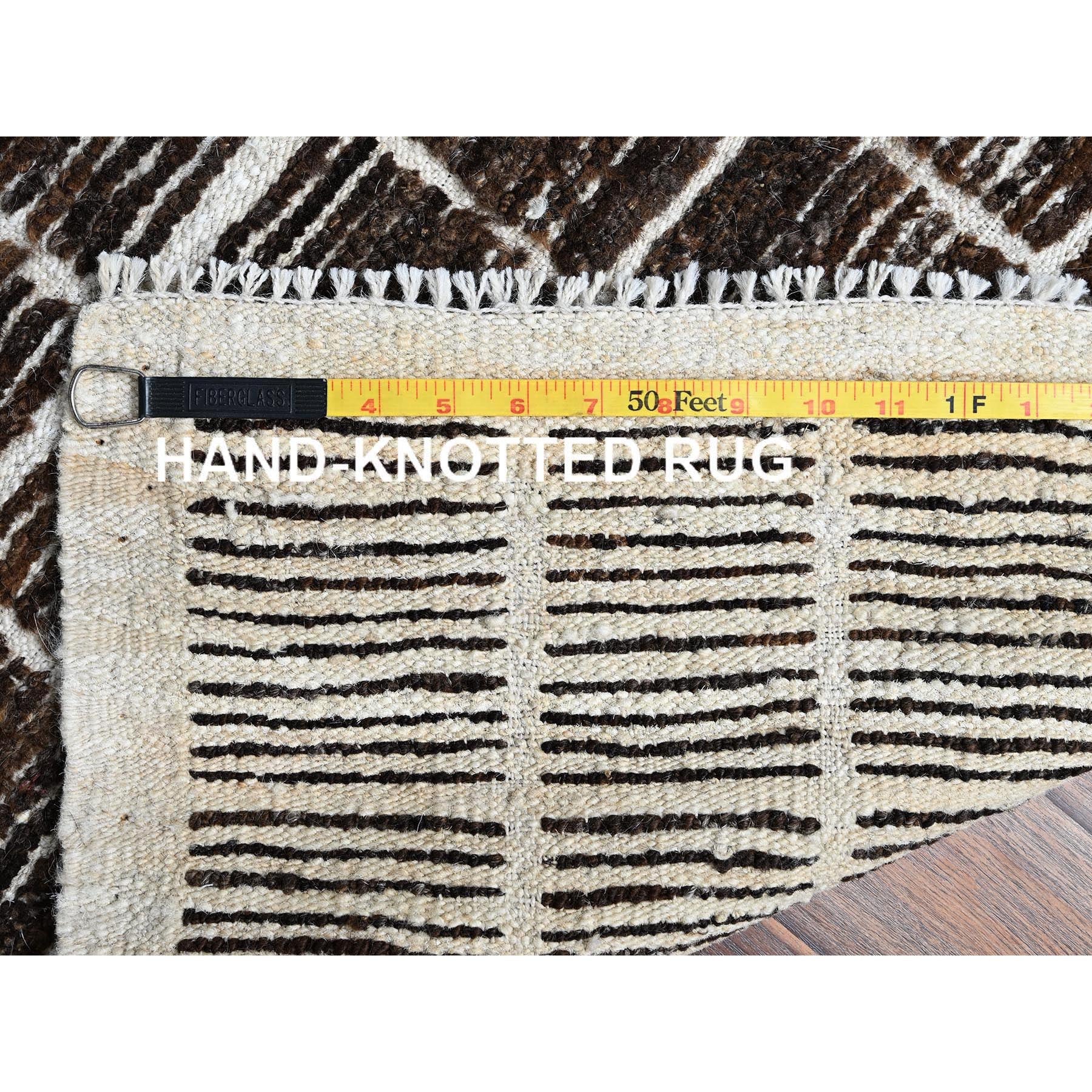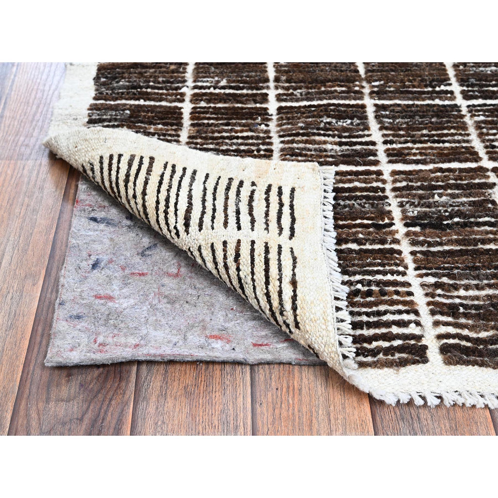 2'1"x2'7" Chocolate Brown, Moroccan Weave With Grid Design, Textured Pile, Tone On Tone, Undyed Natural Wool, Hand Knotted, Sample, Mat, Oriental Rug FWR8328
