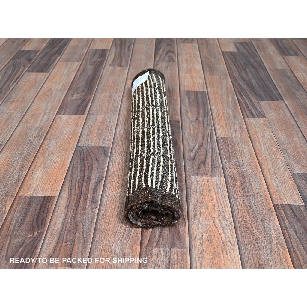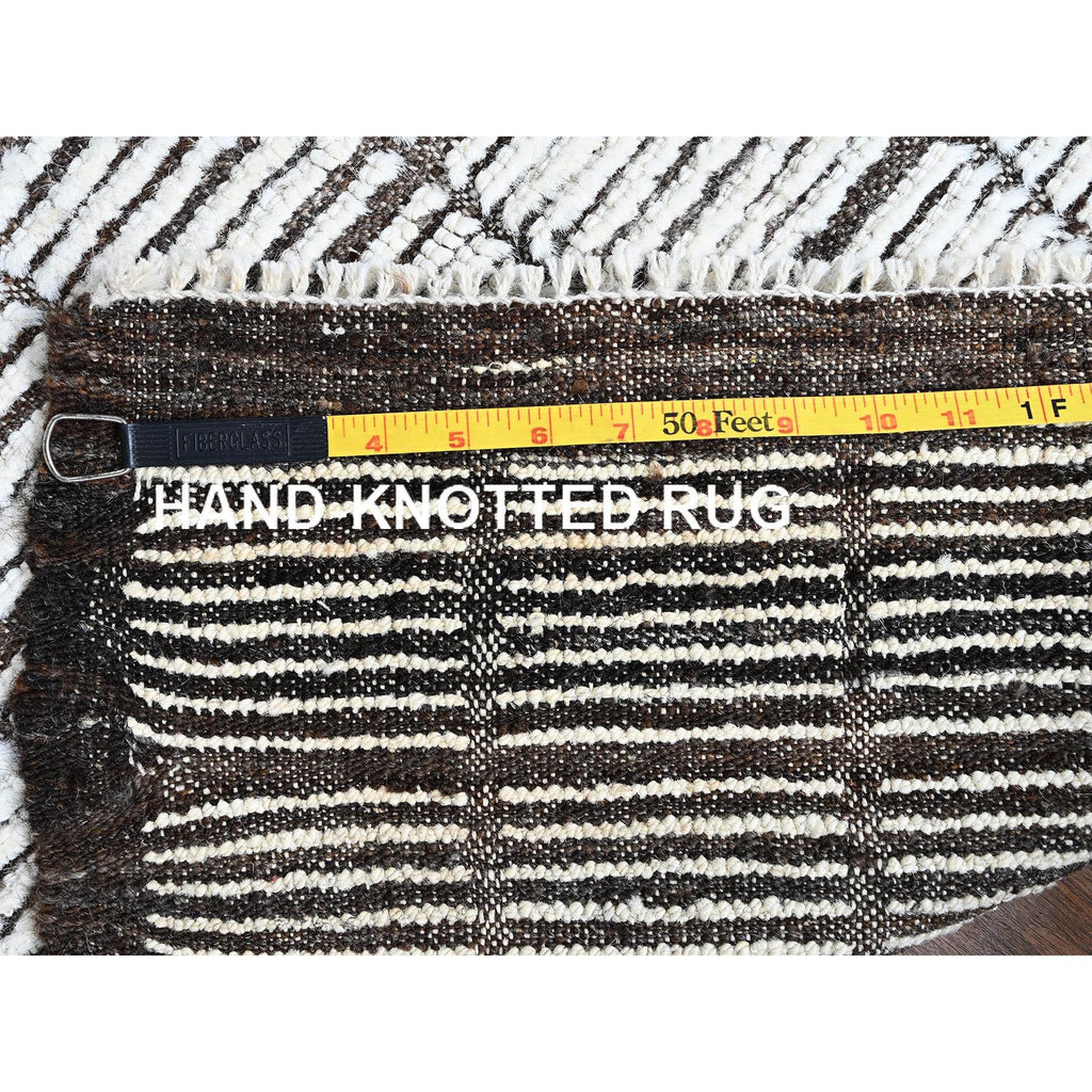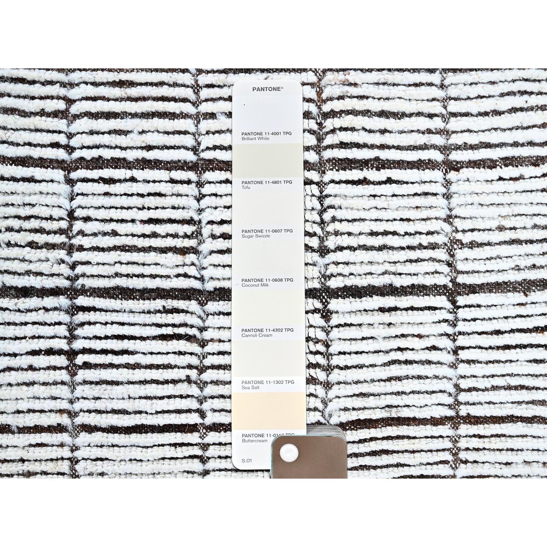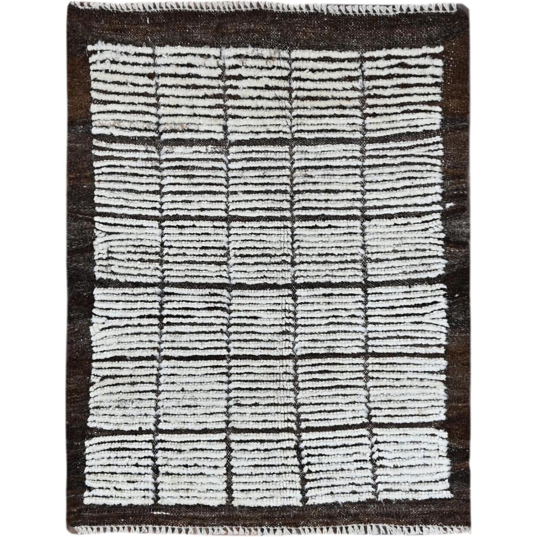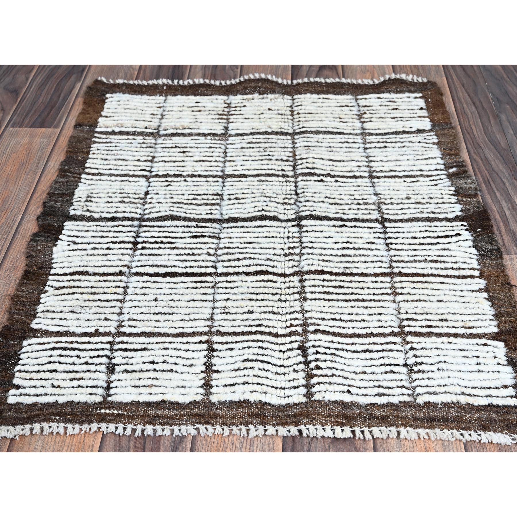 2'1"x2'8" Daisy White, Moroccan Weave With Grid Design, Textured Pile, Tone On Tone, Undyed Natural Wool, Hand Knotted, Mat, Sample, Oriental Rug FWR8352