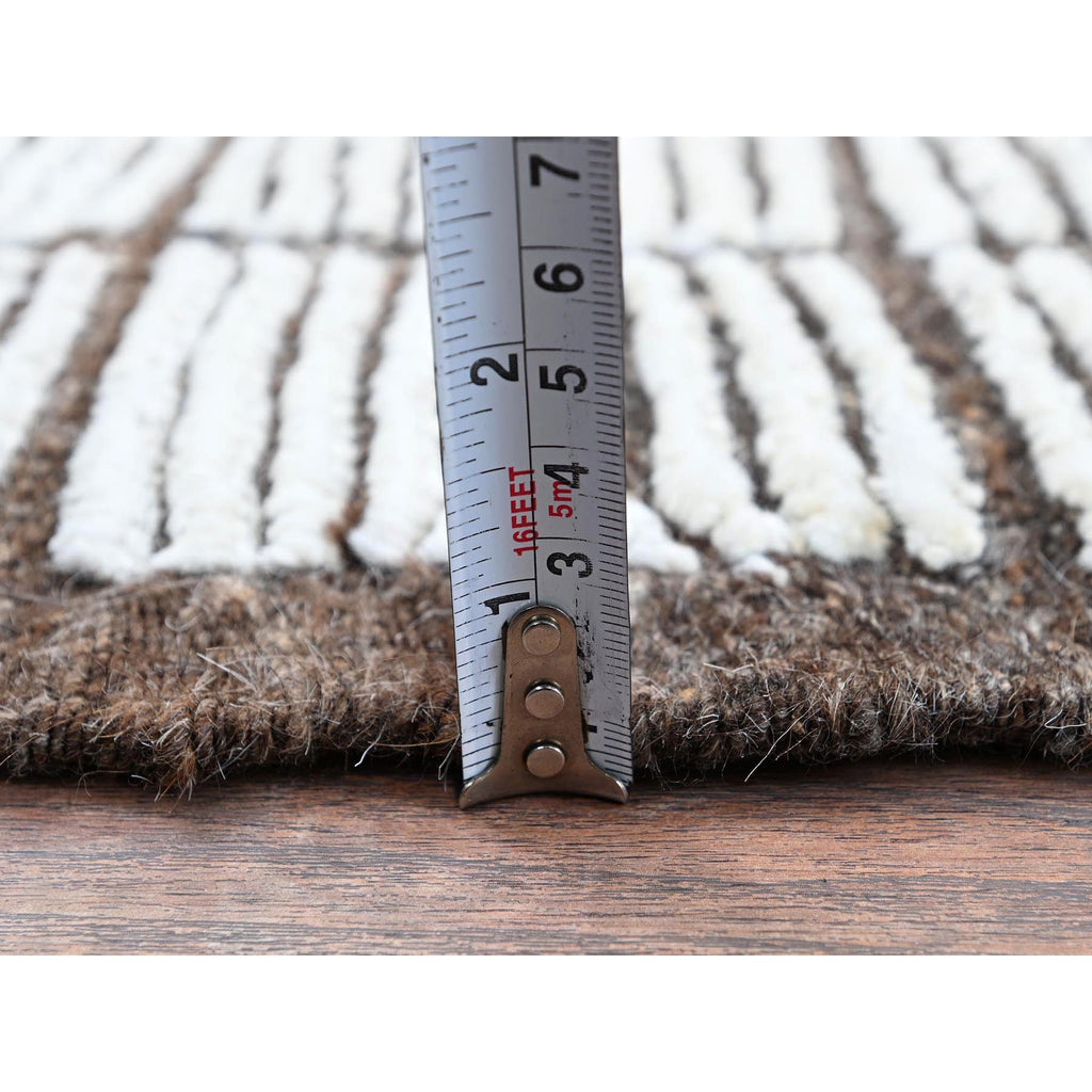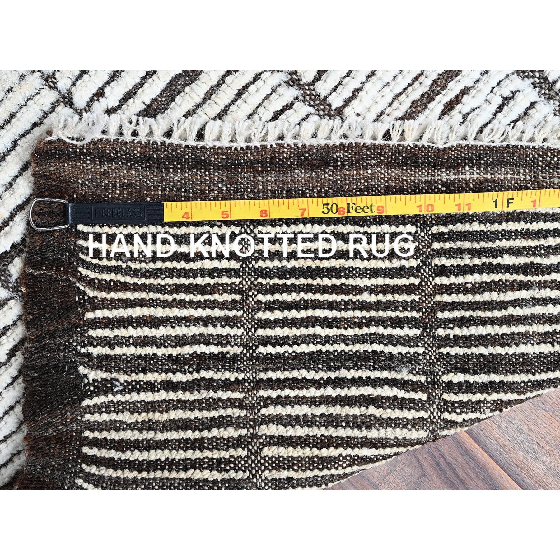 2'1"x2'8" Snow White, Moroccan Weave With Box Design, Tone On Tone, Textured Pile, Undyed Natural Wool, Hand Knotted, Mat, Sample, Oriental Rug FWR8382