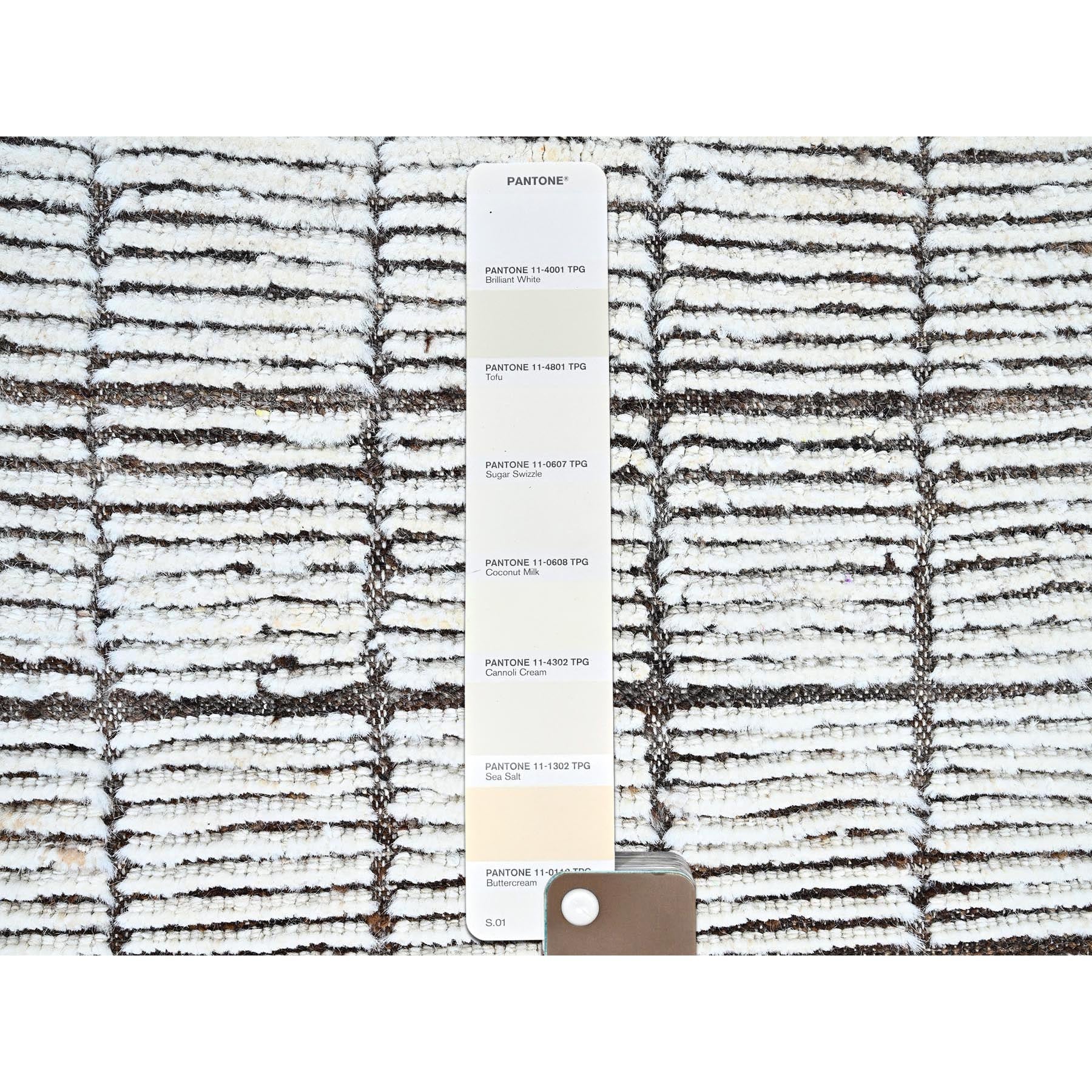 2'1"x2'8" Vista White, Tone On Tone, Moroccan Weave With Box Design, Textured Pile, Undyed Natural Wool, Hand Knotted, Mat, Sample, Oriental Rug FWR8376