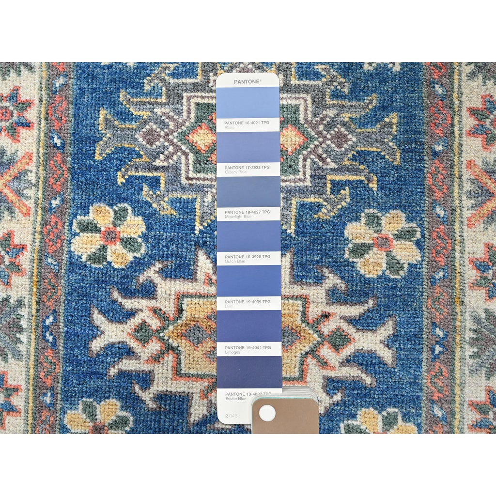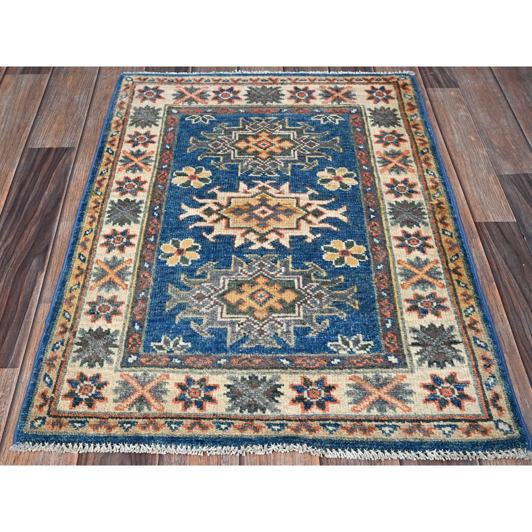 2'1"x2'9" Imperial Blue, Hand Knotted, Kazak With Tribal Medallions Design, Vegetable Dyes, Soft Wool, Denser Weave, Sample, Mat, Oriental Rug FWR2280