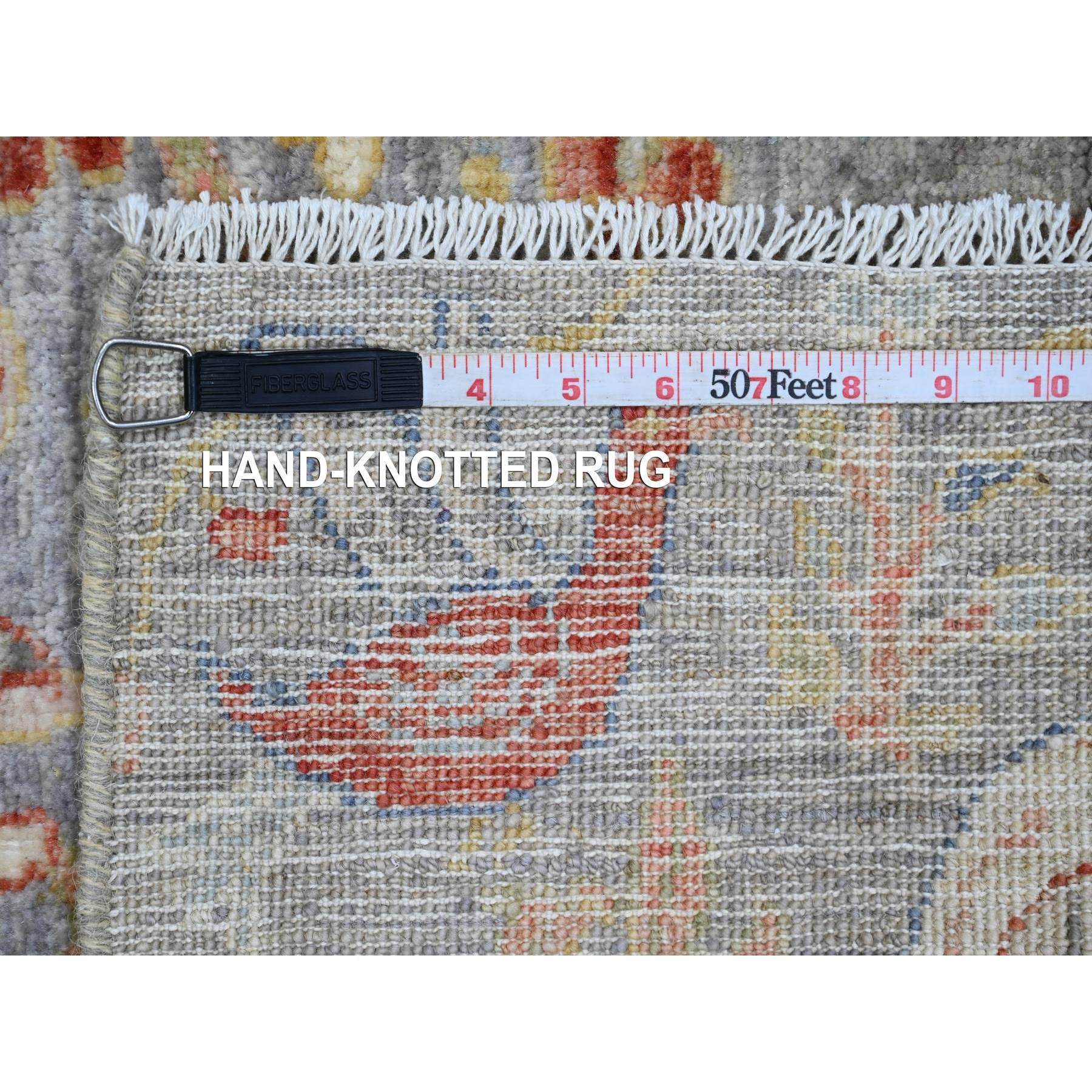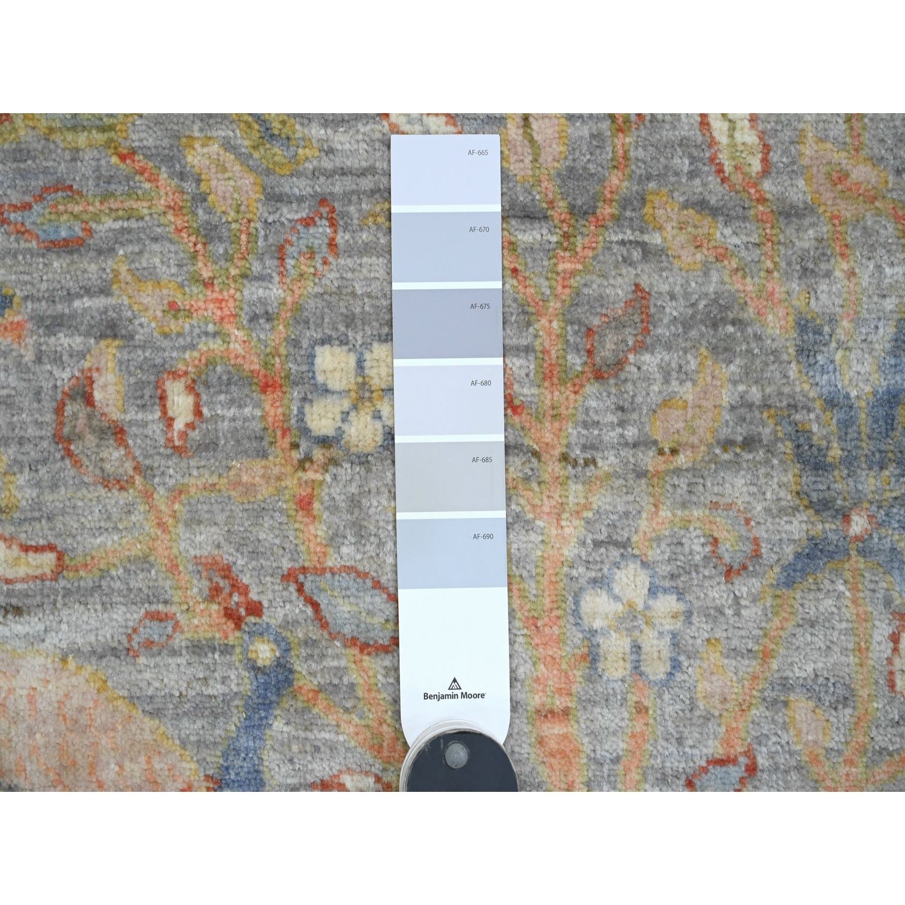2'1"x3'1" Flint Gray, 100% Wool, Afghan Peshawar With Birds Of Paradise Design, Hand Knotted, Natural Dyes, Mat, Oriental Rug FWR120252