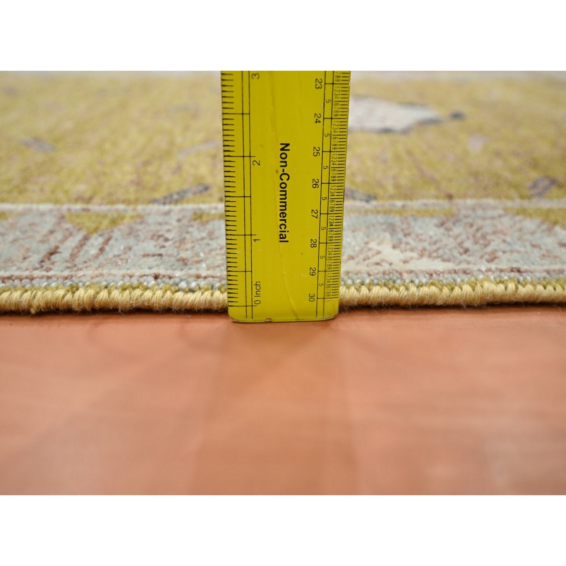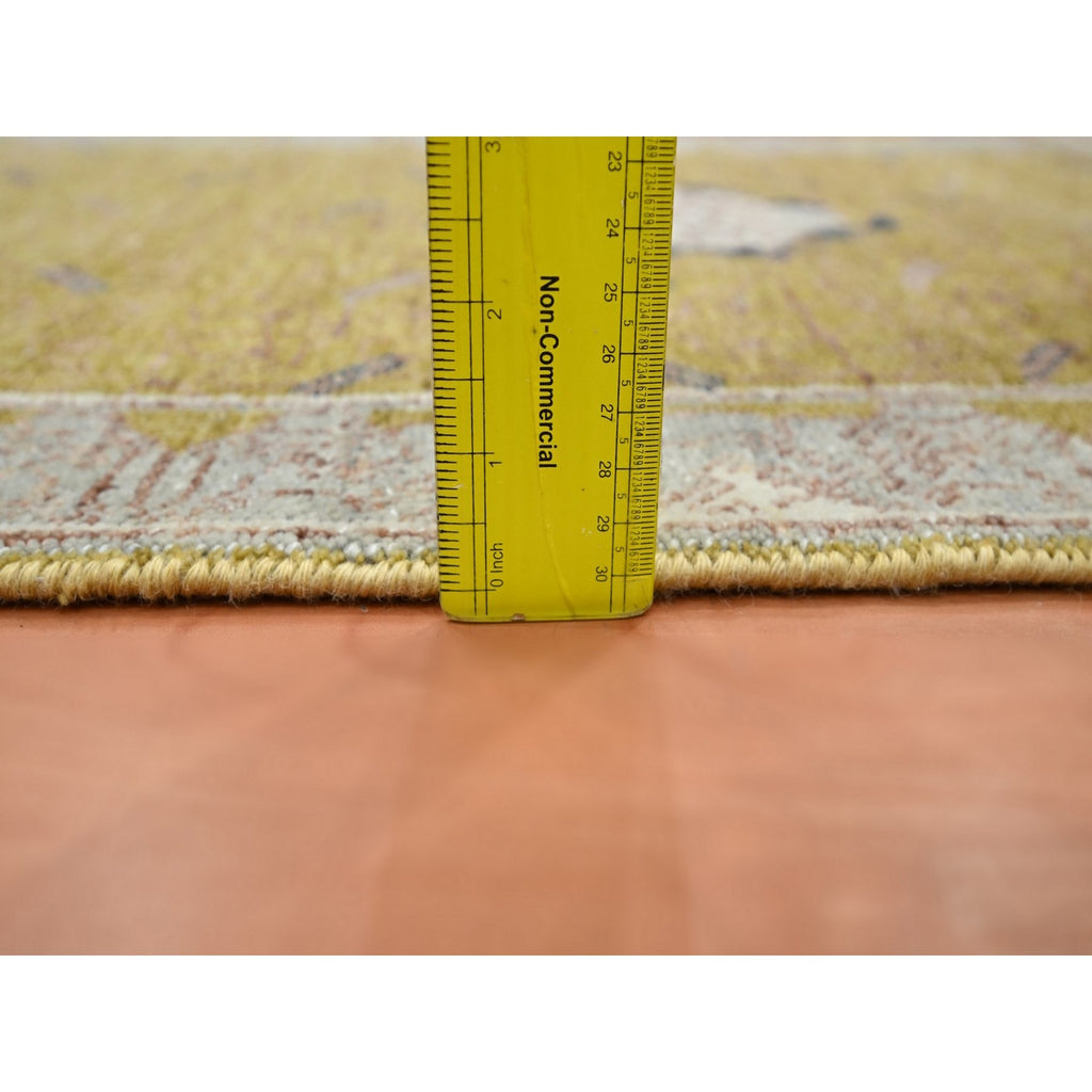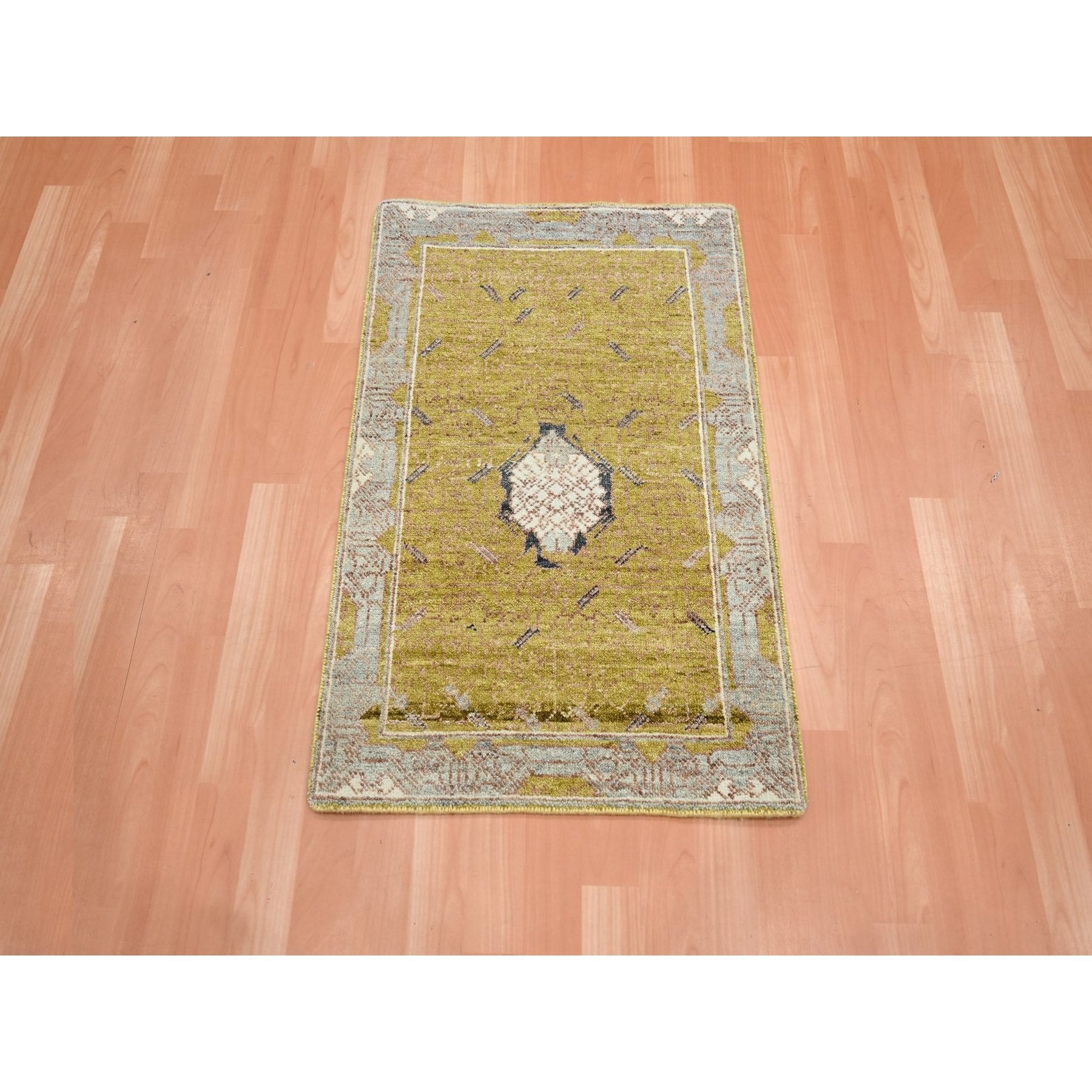 2'1"x3'1" Golden Yellow, Pinecone Design, Hand Knotted, Pure Wool, Shaved Low, Densely Woven, Mat, Sample, Oriental Rug FWR454170