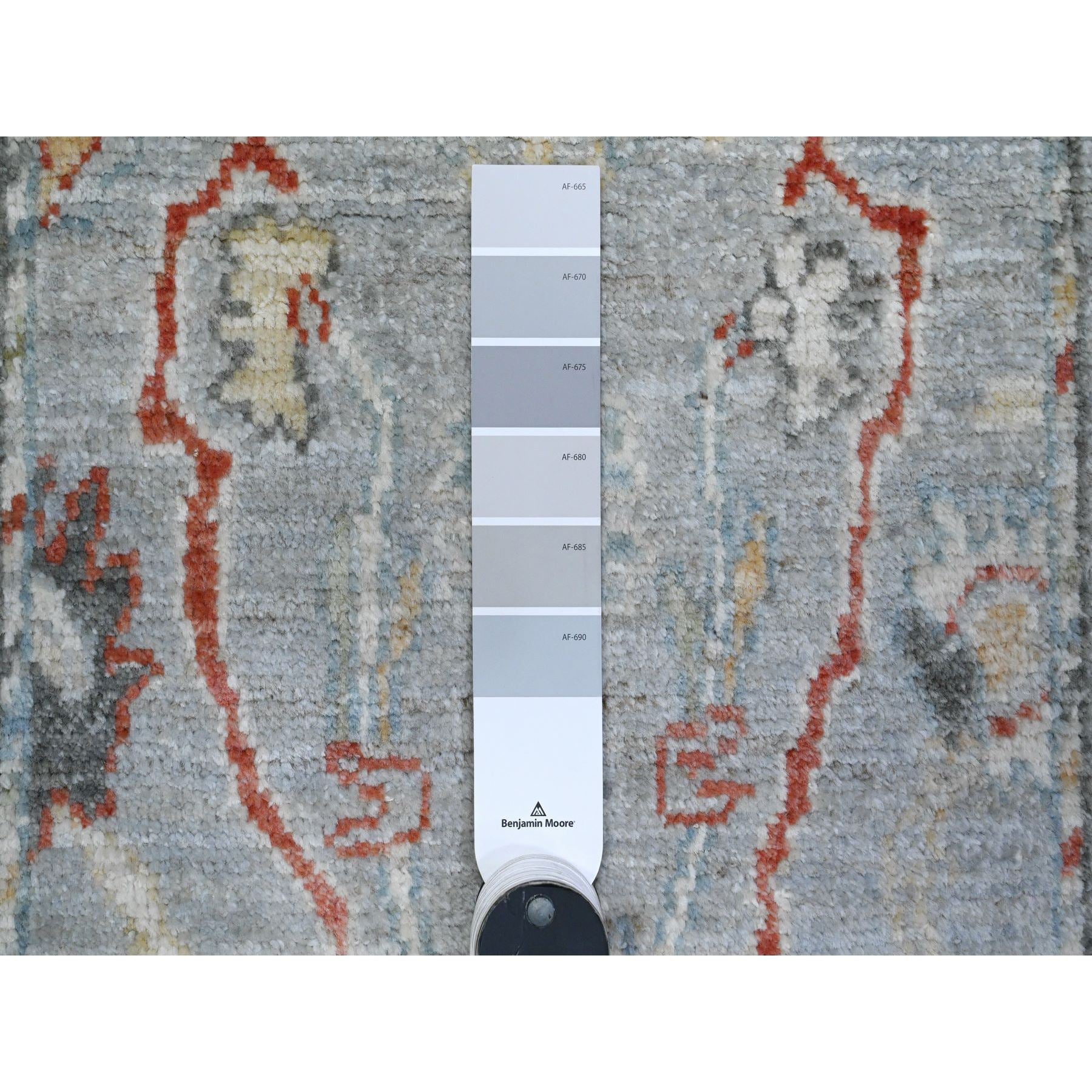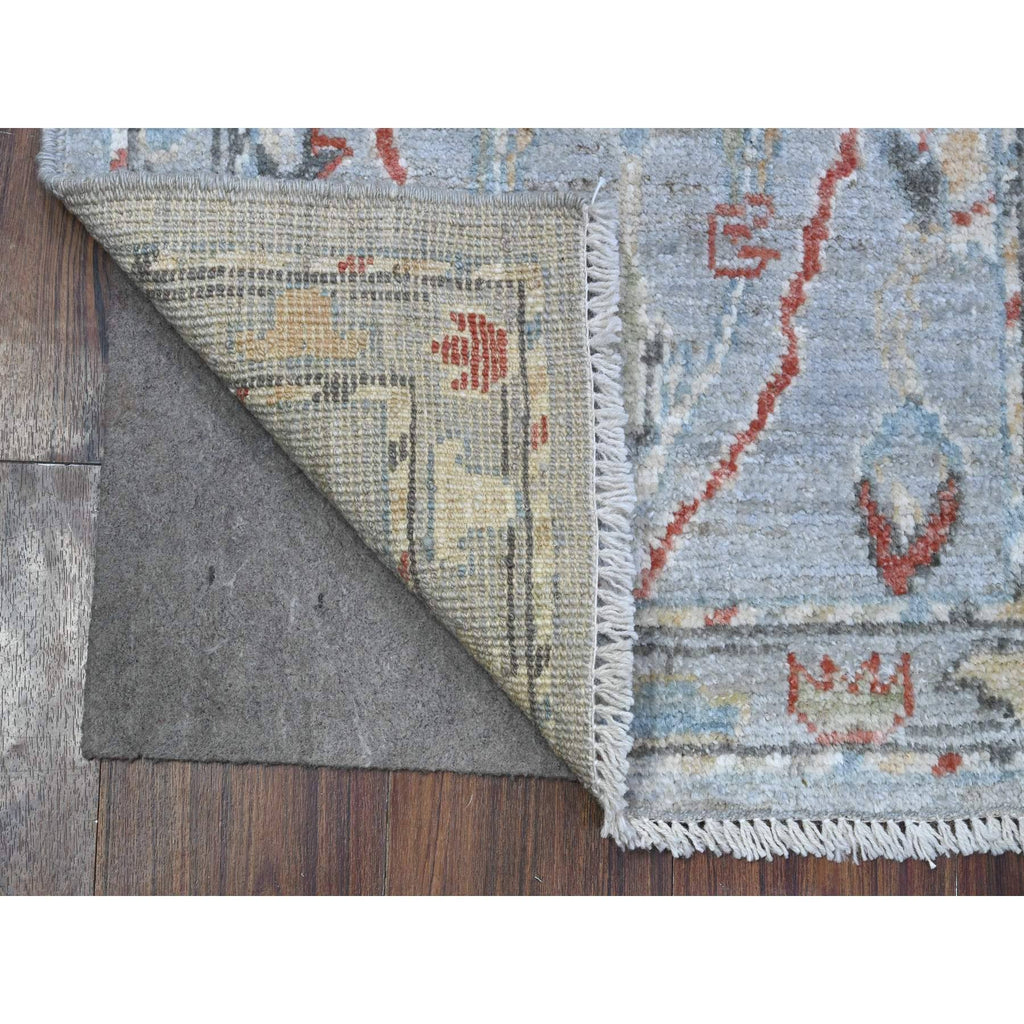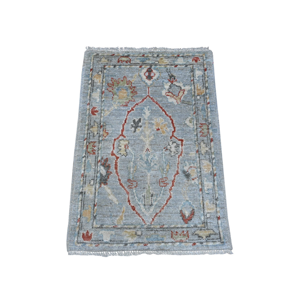 2'1"x3'1" Misty Gray, Village Flower And Leaf Medallions, Wool Foundation, Hand Knotted, Afghan Natural Dyes, Angora Oushak, Mat Oriental Rug FWR537798