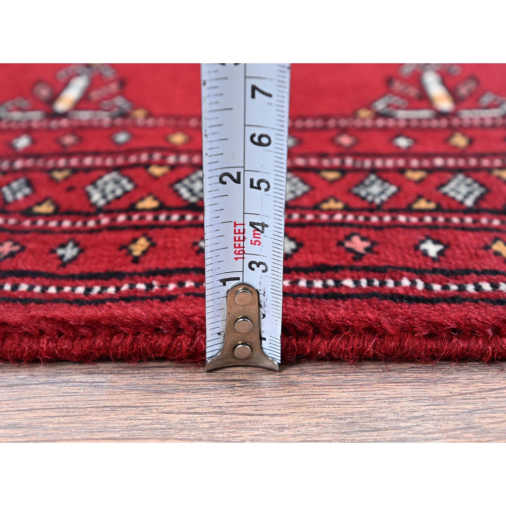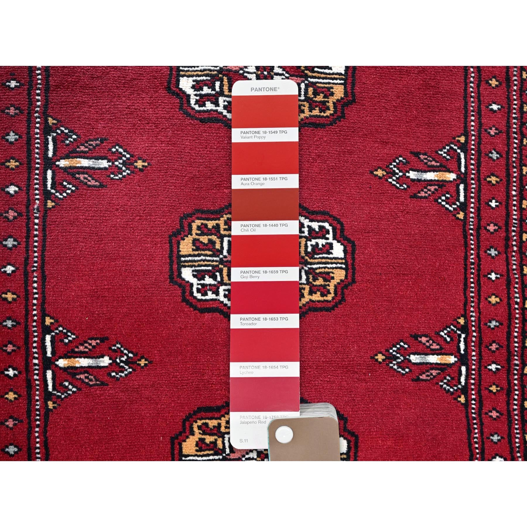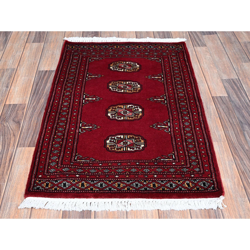 2'1"x3'1" Scarlet Red, Princess Bokara With Tribal Medallions, Vegetable Dyes, Soft And Velvety Wool, Hand Knotted, Mat, Sample, Oriental Rug FWR7890