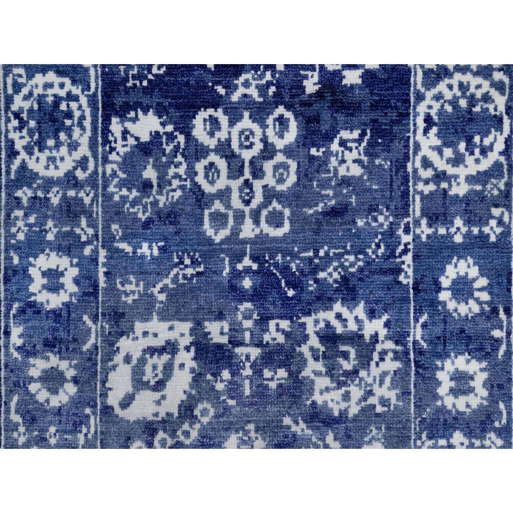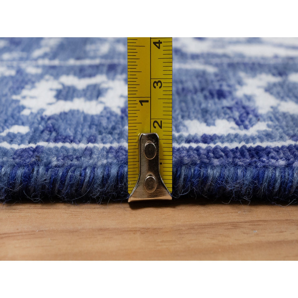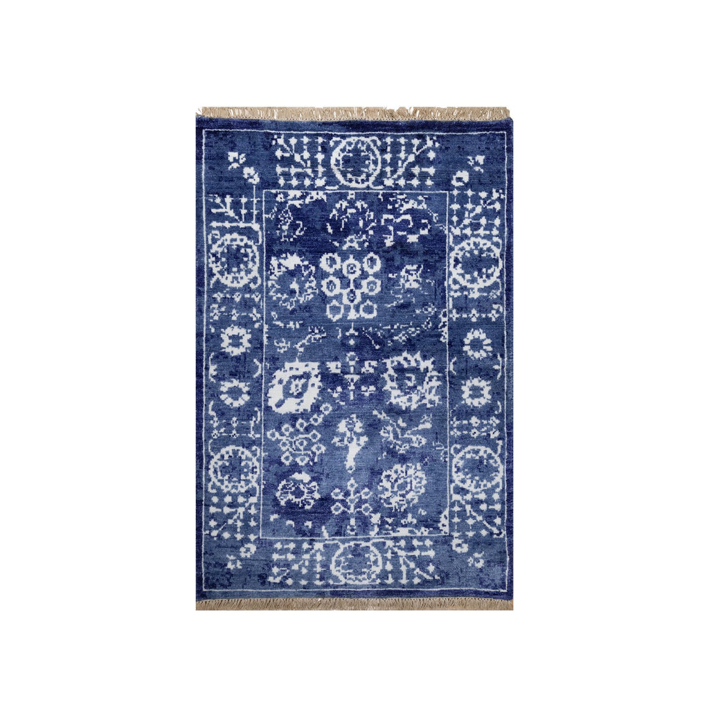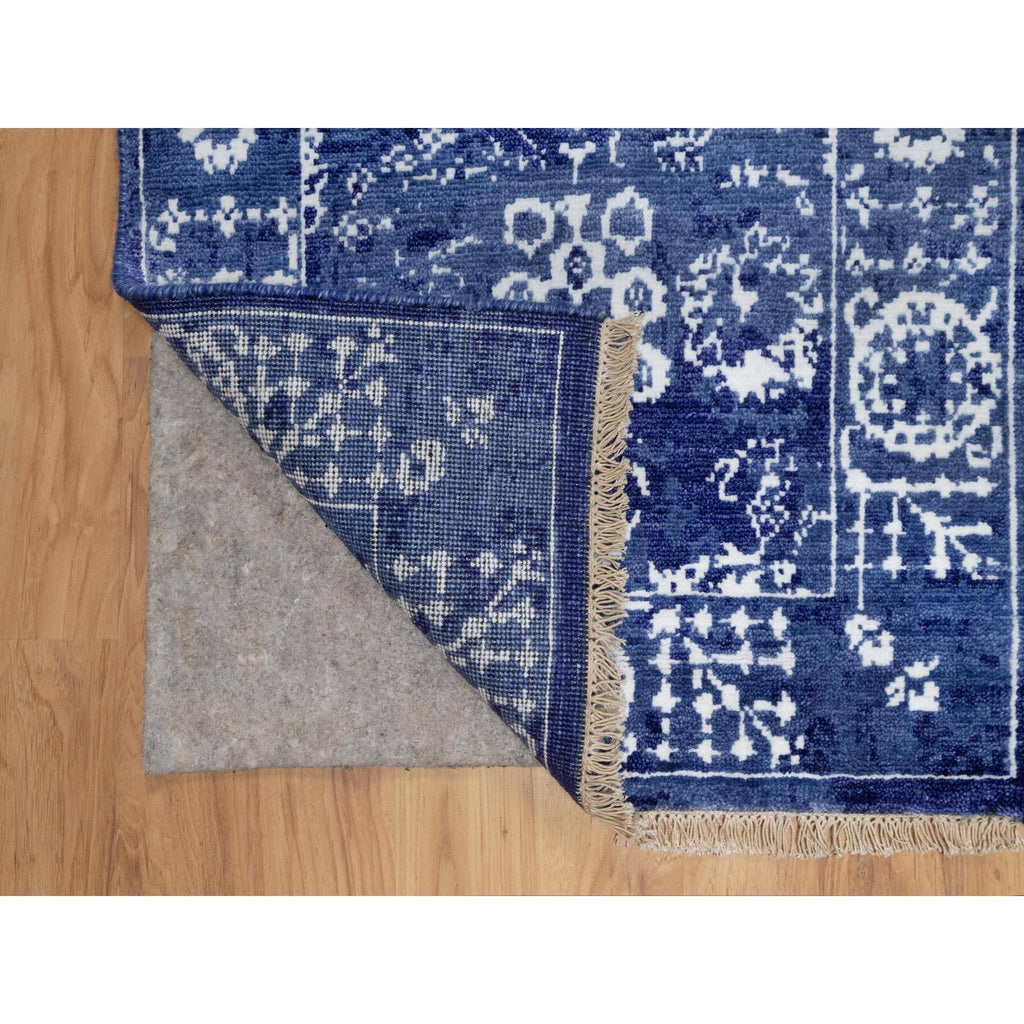 2'1"x3'2" Denim Blue, Wool And Silk, Hand Knotted, Tabriz With All Over Leaf Motifs, Mat, Oriental Rug FWR547368