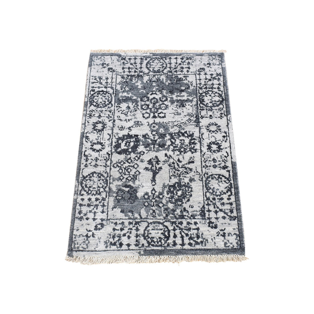2'1"x3'2" Ivory, Erased Tabriz Design, Sample, Hand Knotted, Wool And Silk, Mat, Oriental Rug FWR482910