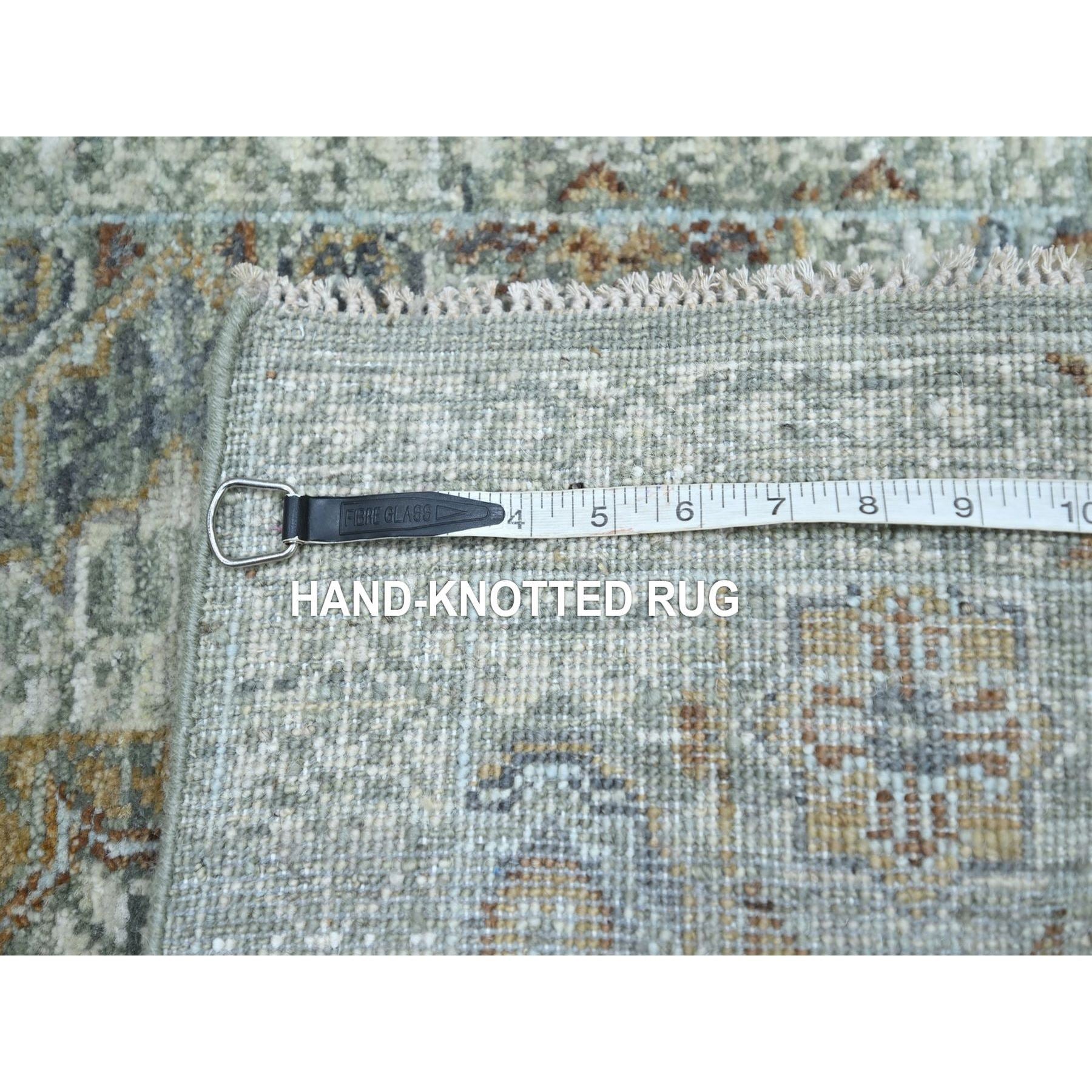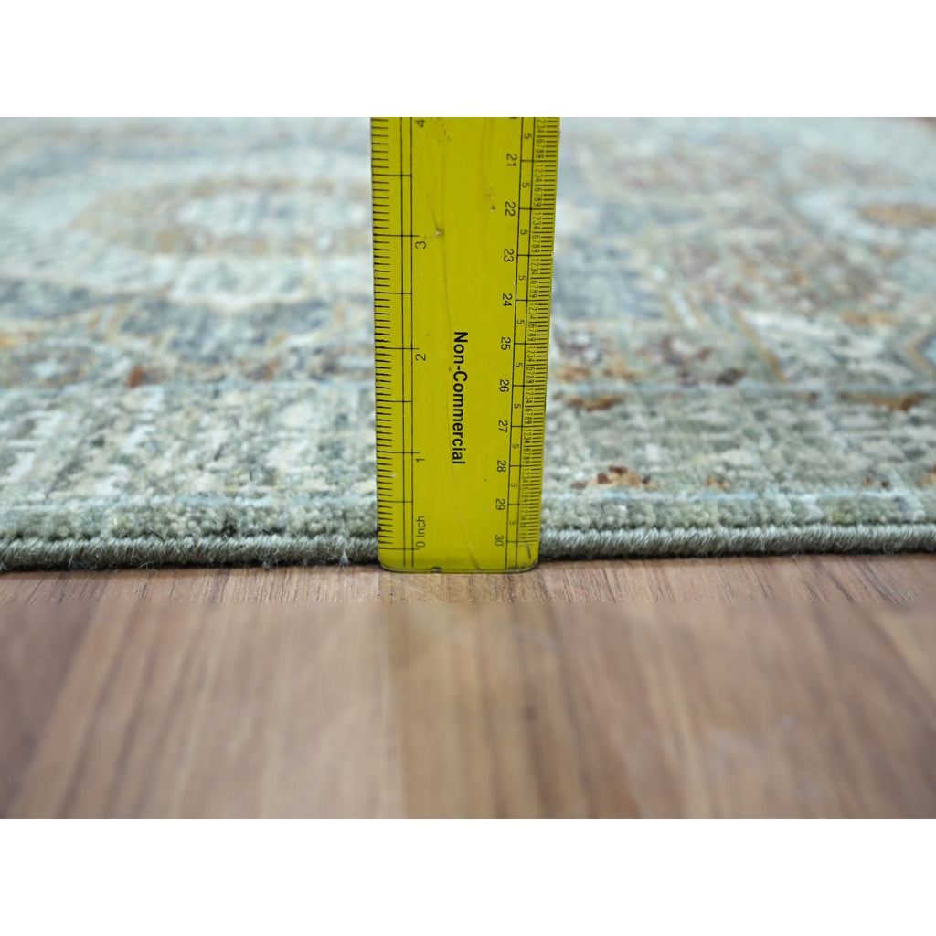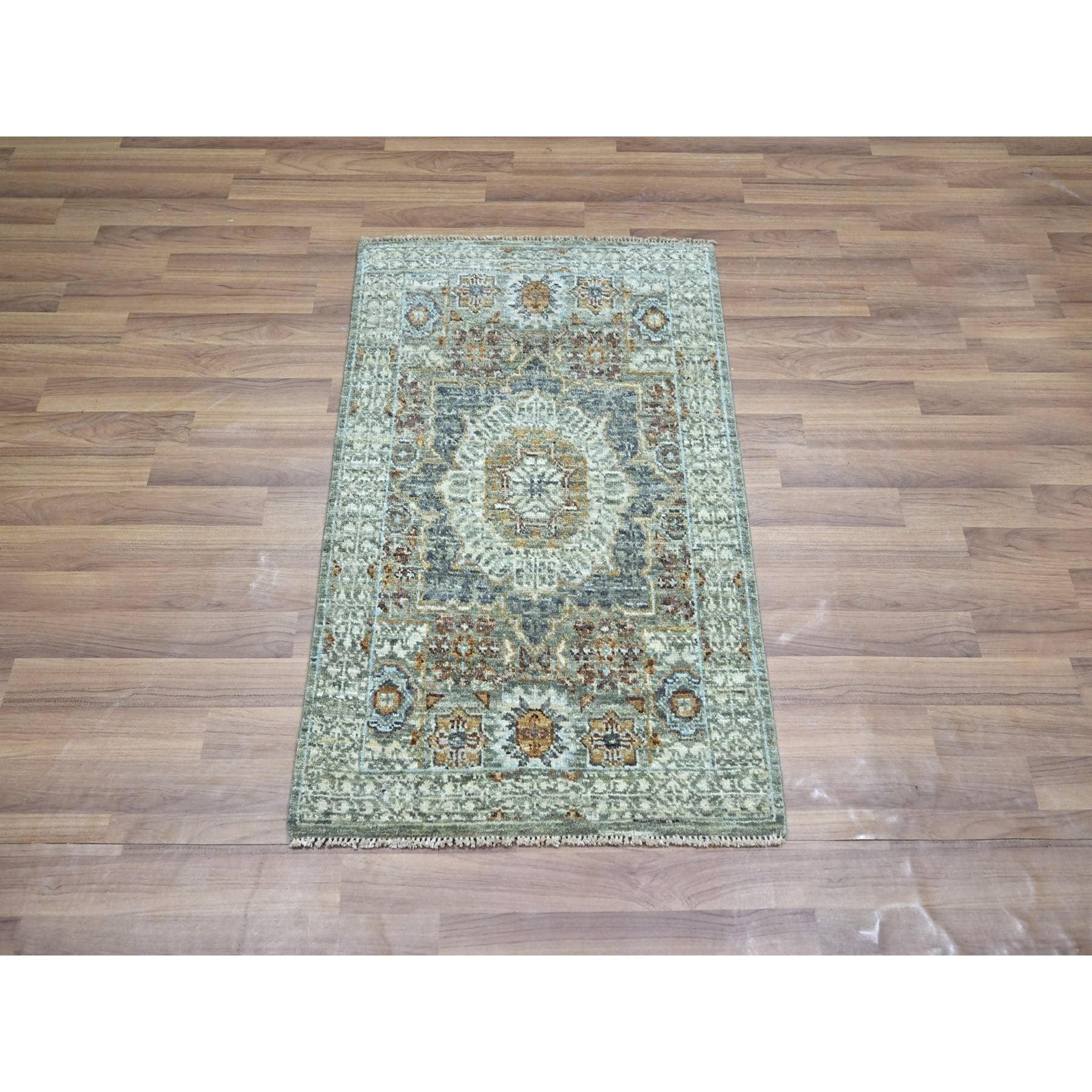 2'1"x3'2" Mint Green, Hand Knotted, Pre Historic 14th Century Influence, Mamluk Design, Natural Dyes, Pure Wool, Sample, Mat, Oriental Rug FWR460914