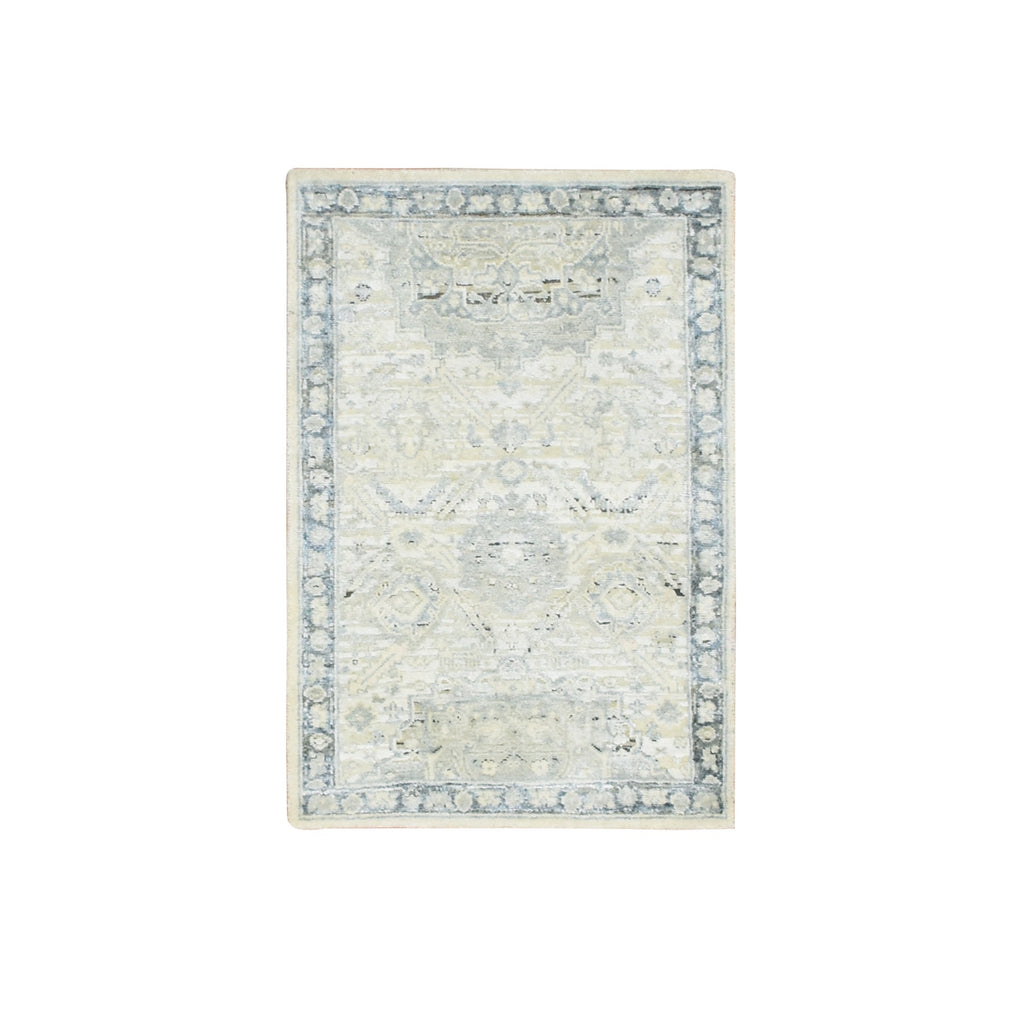 2'1"x3'2" Pastel Gray, Silk And Oxidized Wool, Oushak Design With Geometric Pattern, Hand Knotted, Mat, Oriental Rug FWR453150