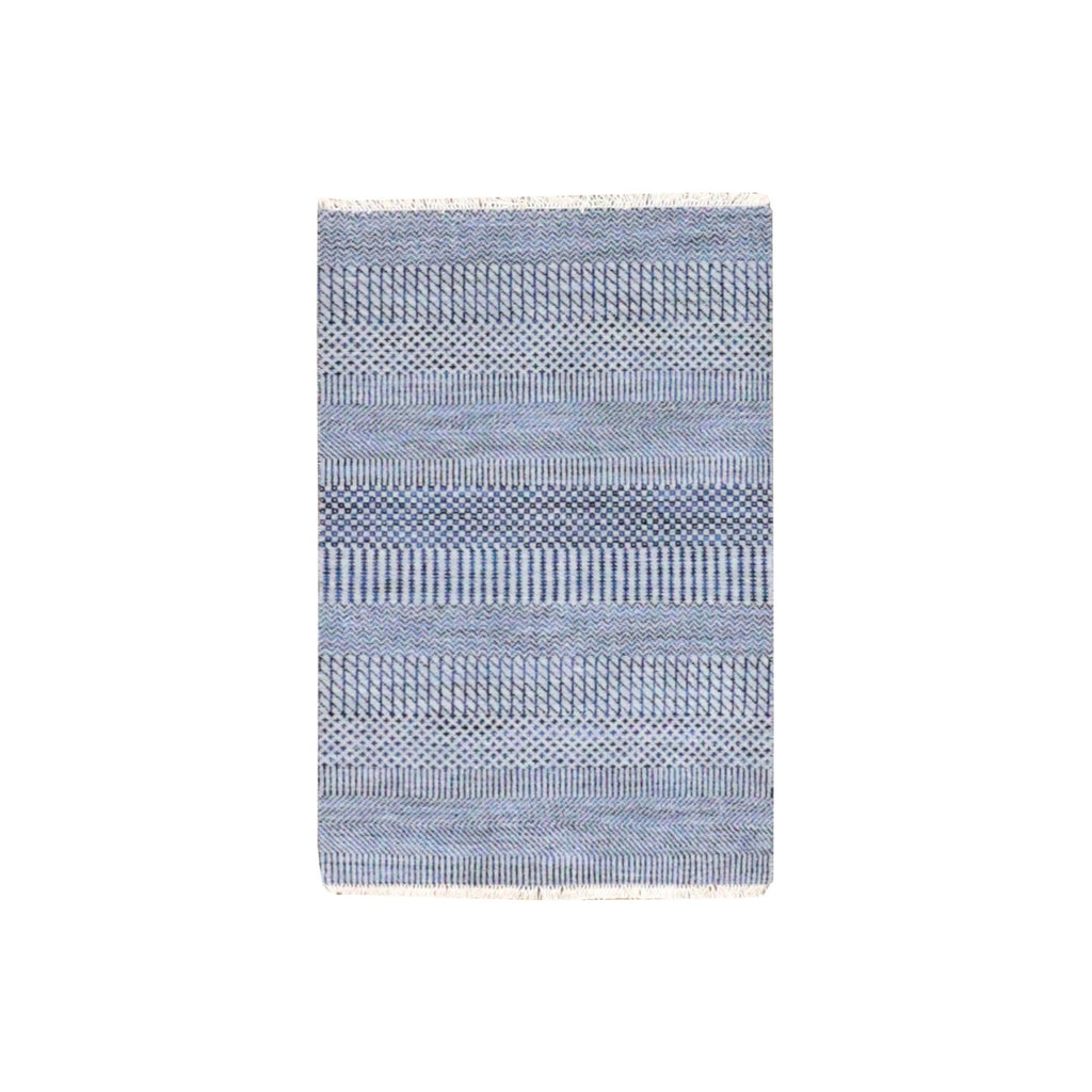 2'1"x3'3" Chrome Gray, Modern Hand Knotted Grass Design, Tone On Tone, Dyed Organic Wool, Mat Oriental Rug FWR477852