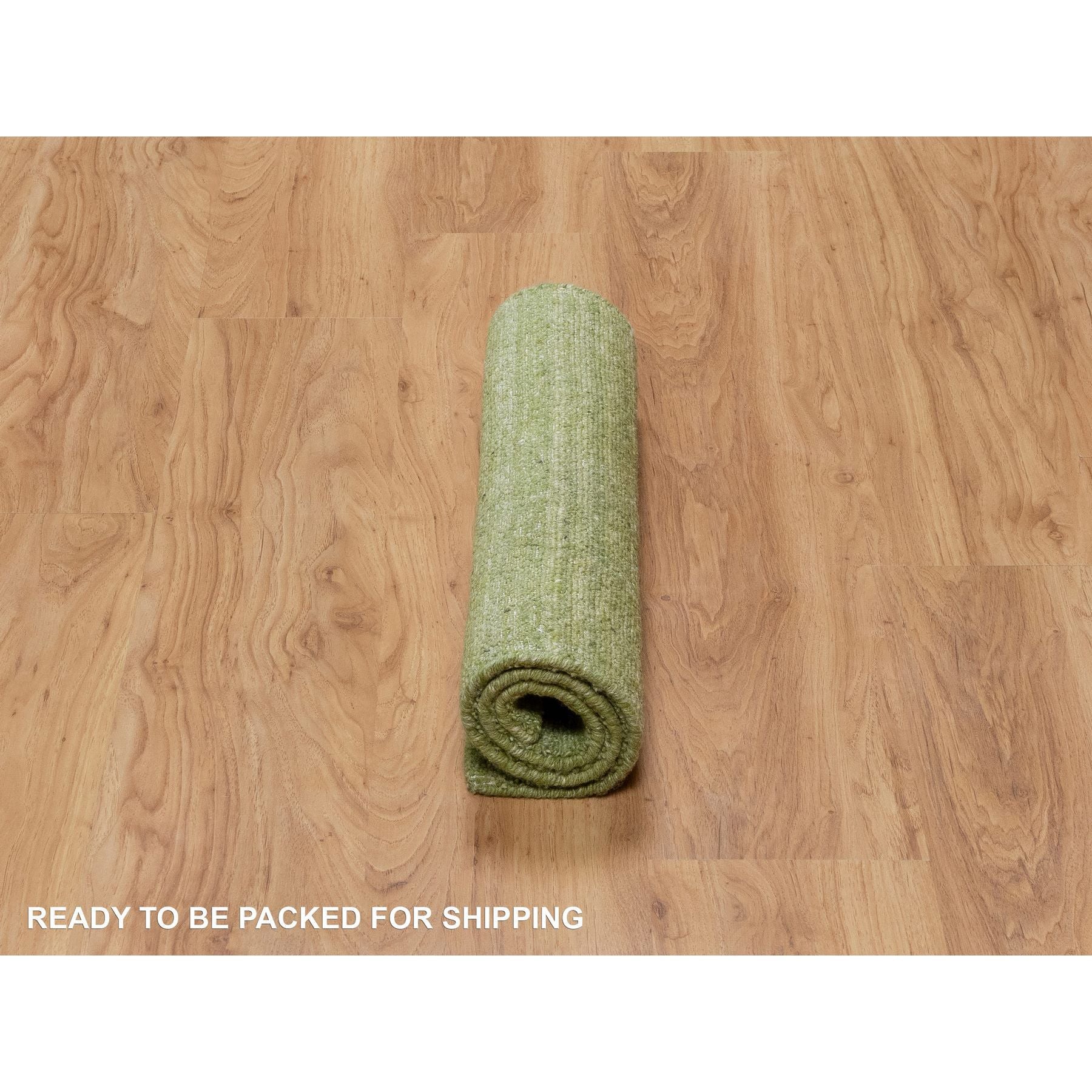 2'1"x3' Avocado Green, Tone On Tone, Plain Modern Striae Design, Soft Pile, Pure Wool, Hand Loomed, Mat, Oriental Rug FWR547200