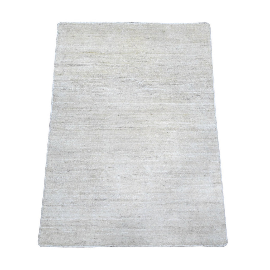 2'1"x3' Bone White, Single Color Modern Peshawar With Plain Design, Sample, Shabby Chic, Hand Knotted Natural Dyes, 100% Wool, Mat, Oriental Rug FWR538398