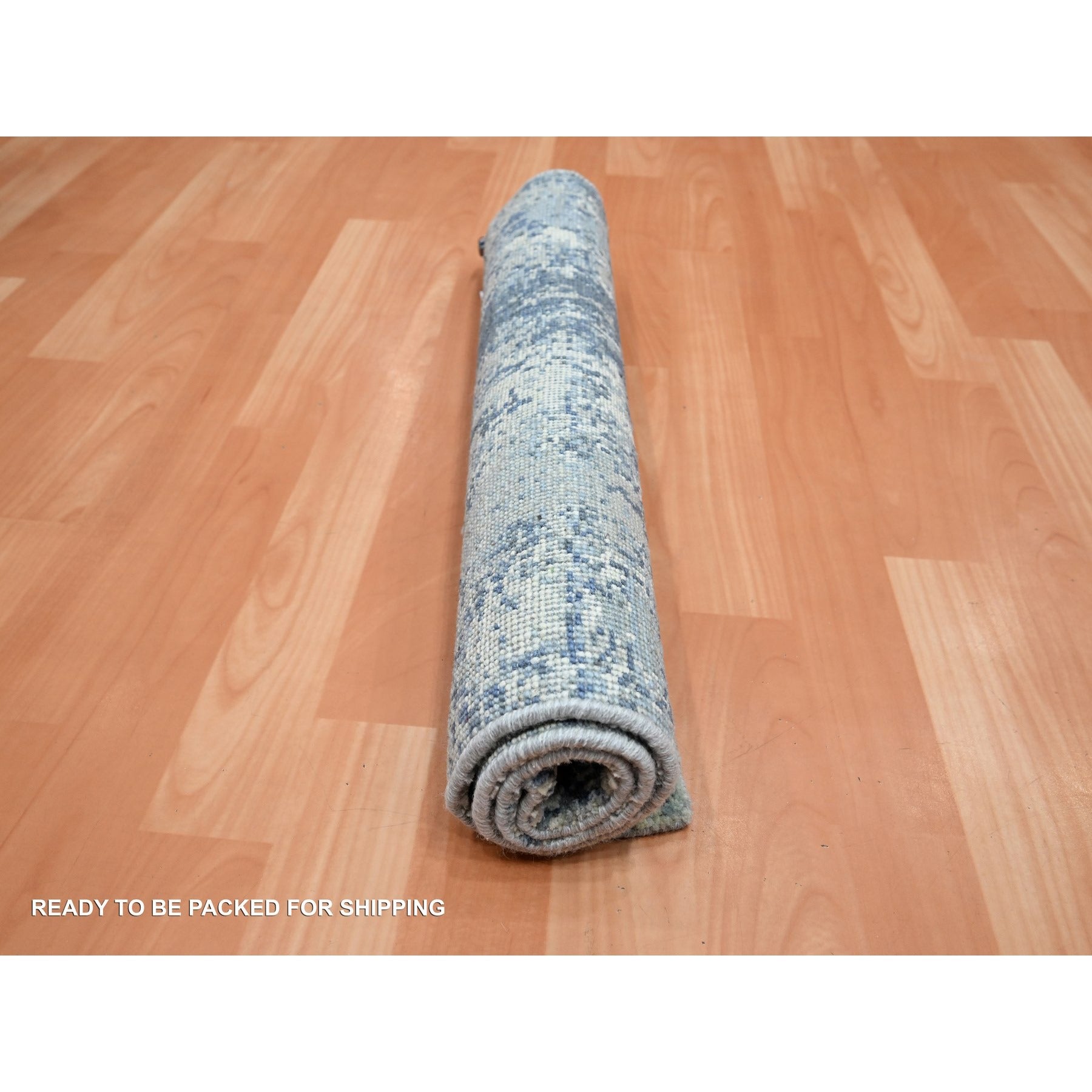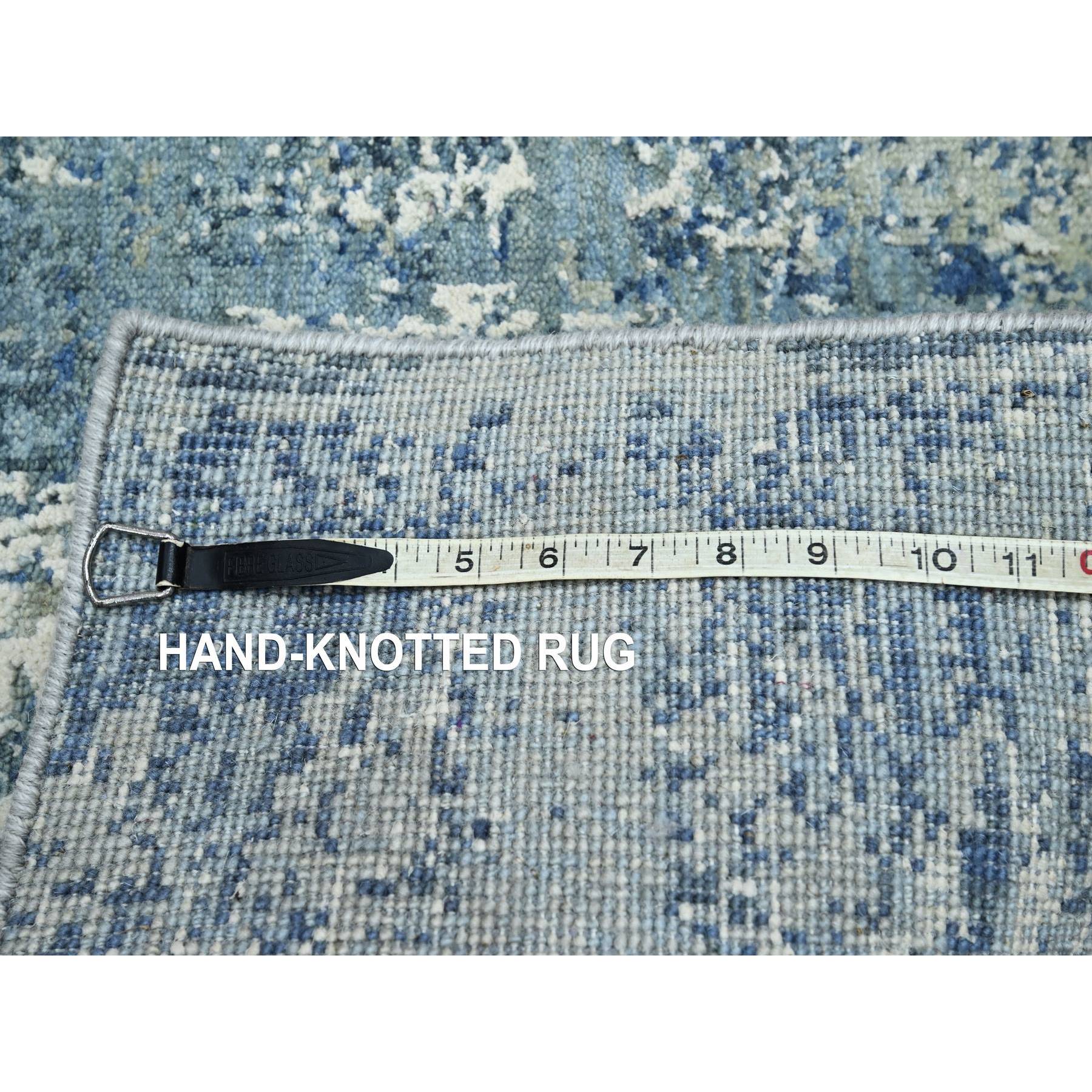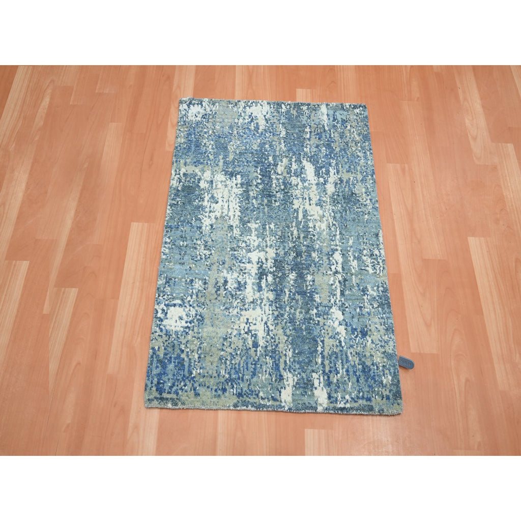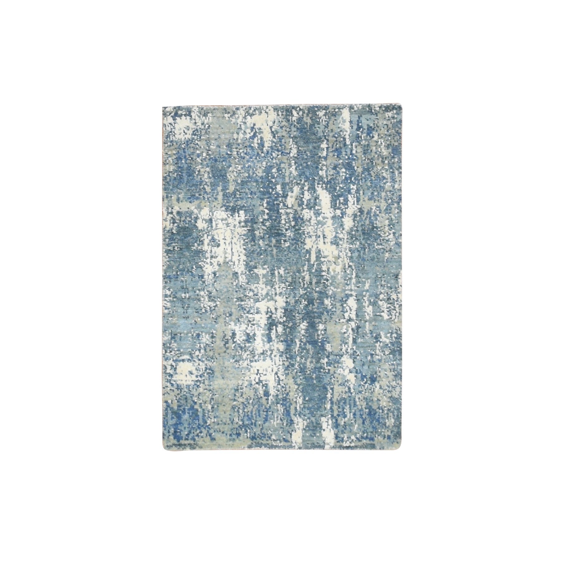 2'1"x3' Cerulean Blue, Abstract Design, Denser Weave, Hi-low Pile, Wool And Real Silk, Hand Knotted, Mat, Oriental Rug FWR453240