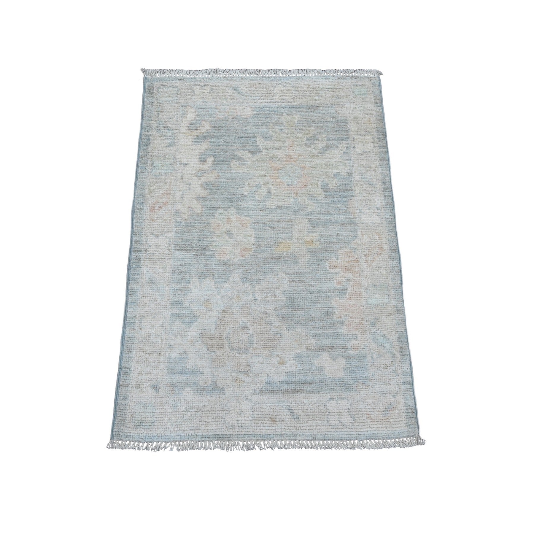 2'1"x3' Mineral Blue, Hand Knotted, Afghan Angora Oushak With Large Leaf Design, Natural Dyes, 100% Wool, Mat, Oriental Rug FWR122904