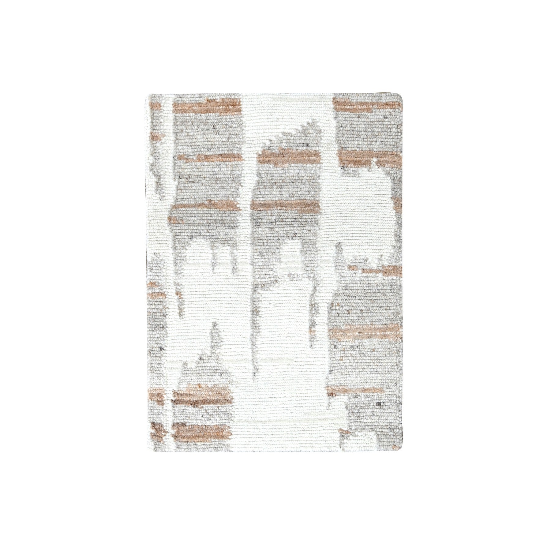 2'1"x3' Parchment White, Minimalist Swedish Design, Hand Knotted, Organic Wool, Mat, Sample, Oriental Rug FWR62022