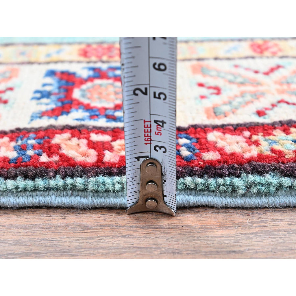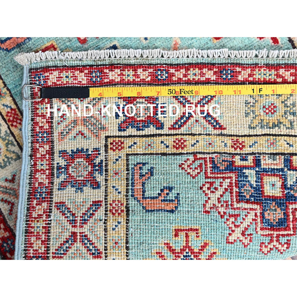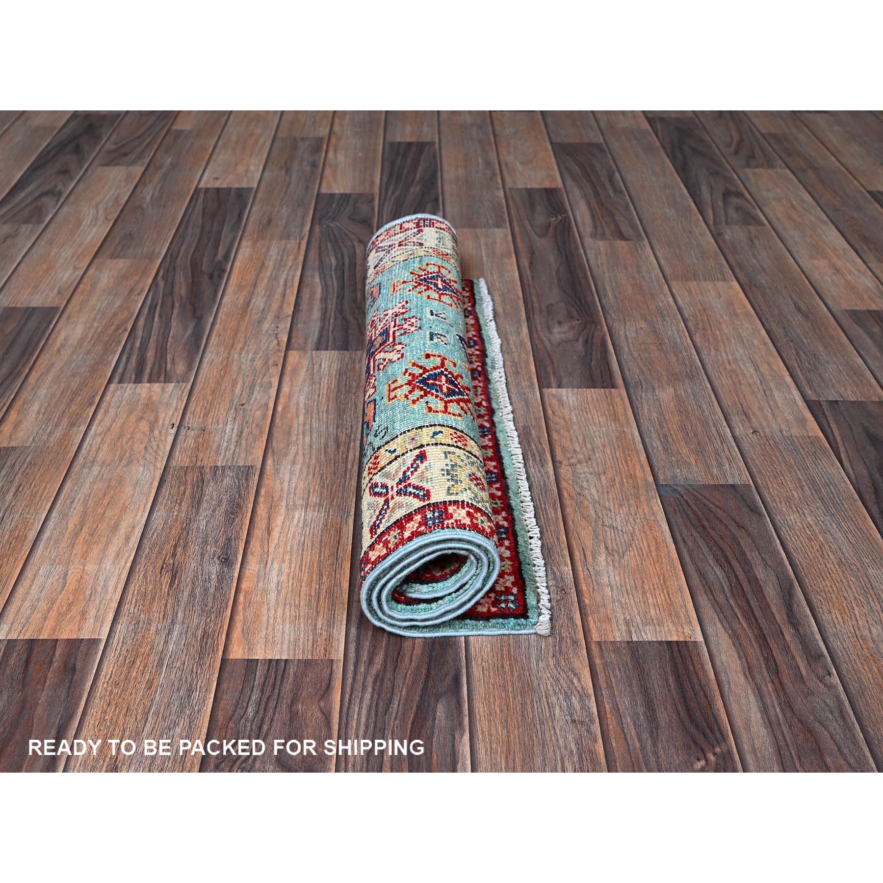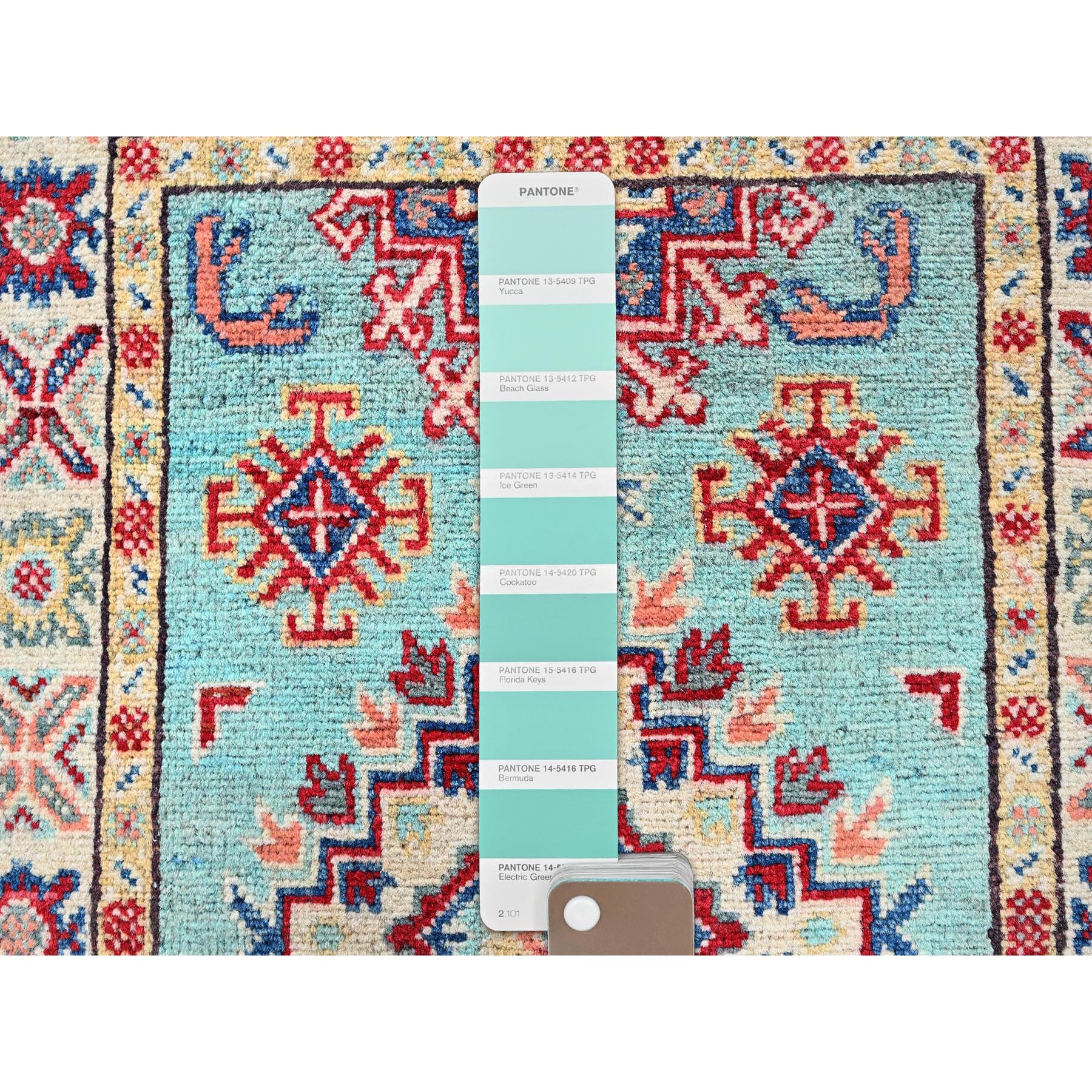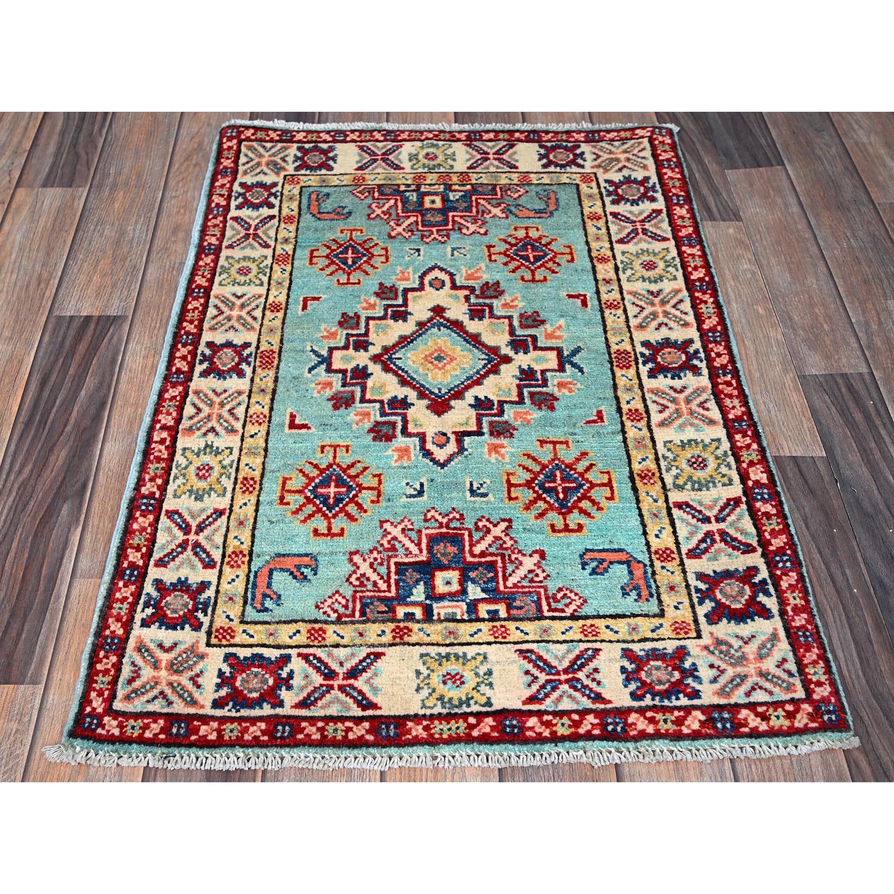 2'1"x3' Powder Blue, Kazak With Geometric Pattern, Soft And Shiny Wool, Vegetable Dyes, Hand Knotted, Denser Weave, Sample, Mat, Oriental Rug FWR2190