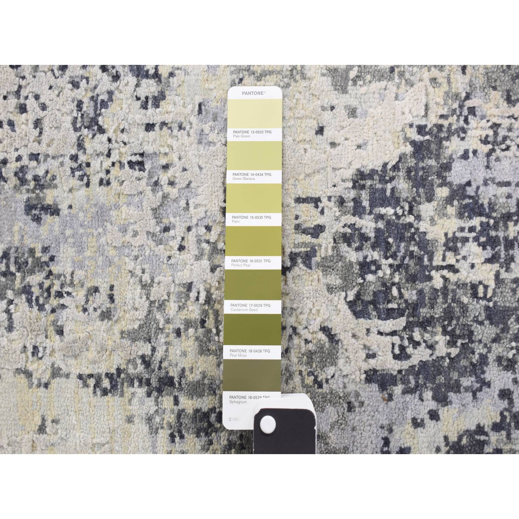 2'1"x3' Stone White, Abstract Design, Wool And Pure Silk, Denser Weave, Persian Knot, Hand Knotted, Mat Oriental Rug FWR468612