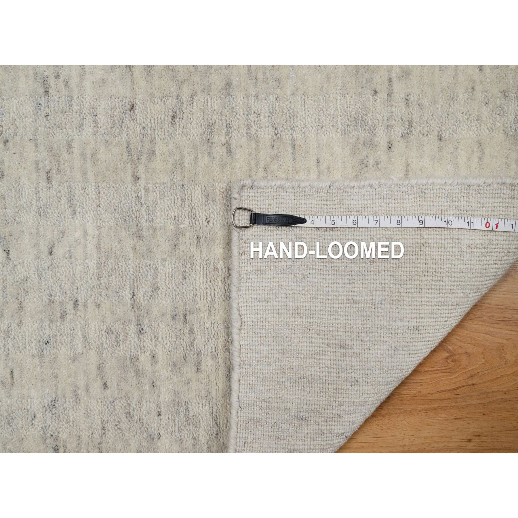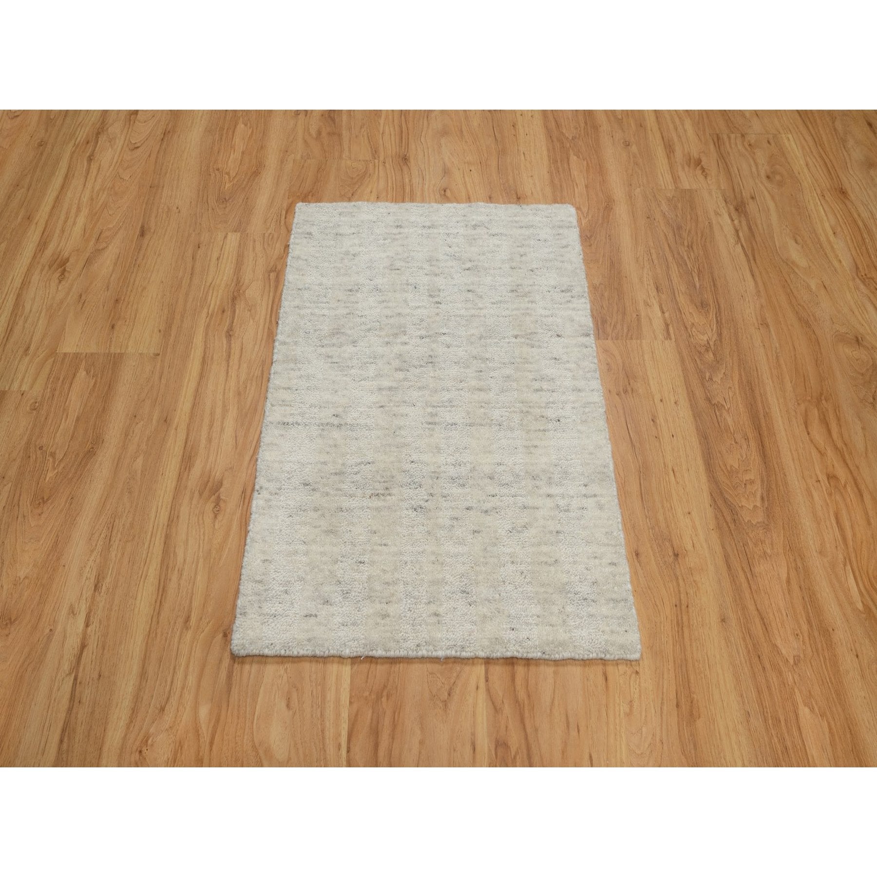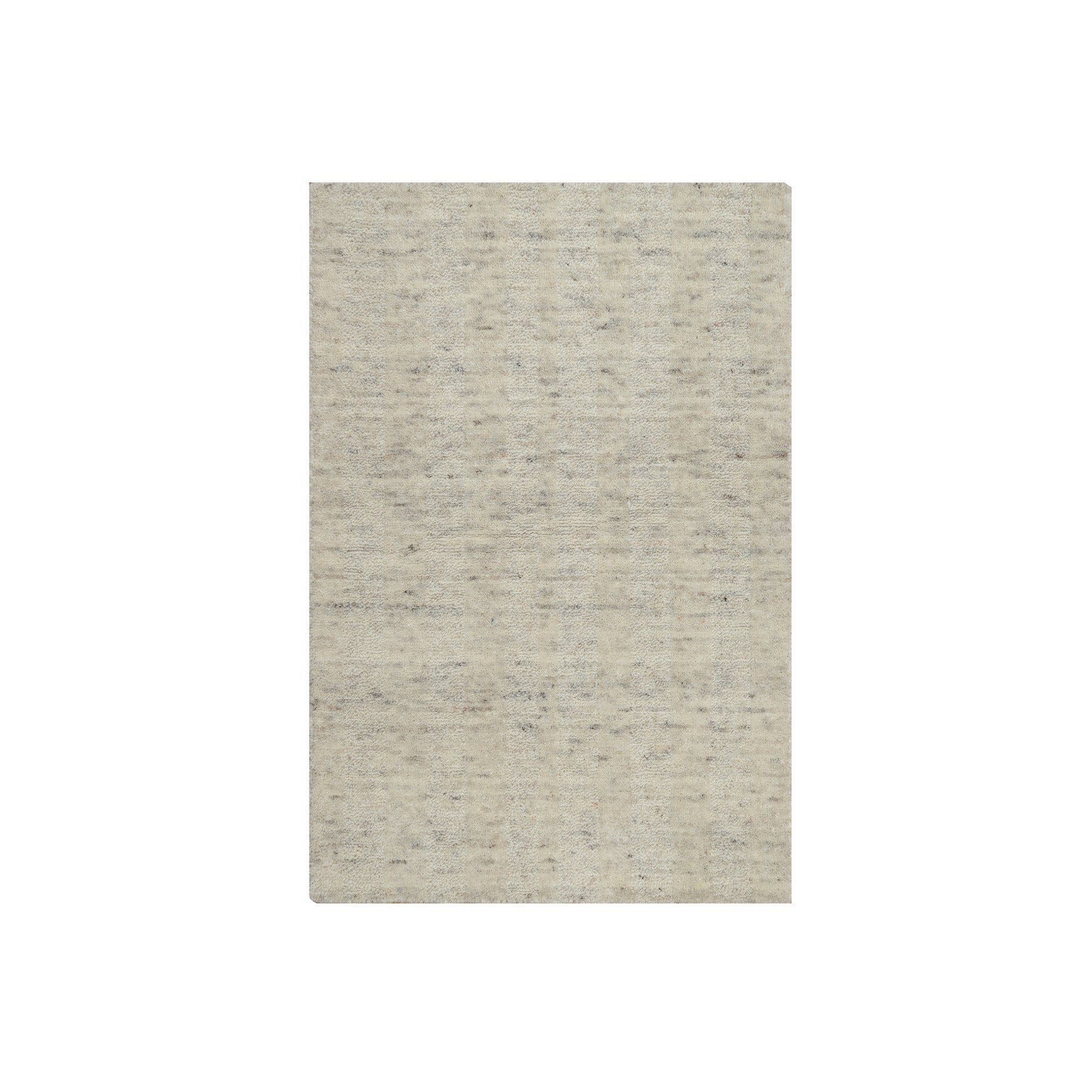 2'1"x3' Winter White, Hand Loomed, Salt And Pepper Effect With Vertical Stripes Design, Undyed Natural Wool, Sample, Mat, Oriental Rug FWR550782