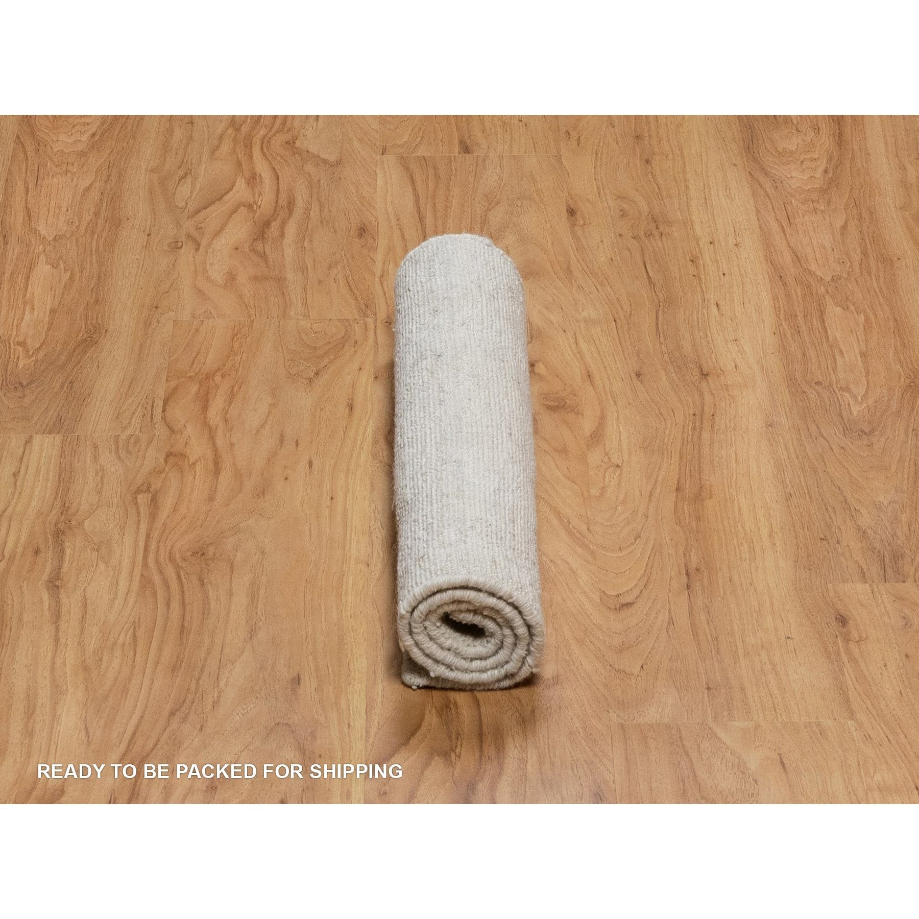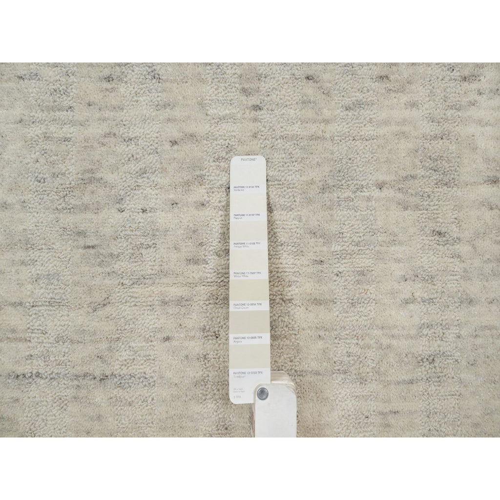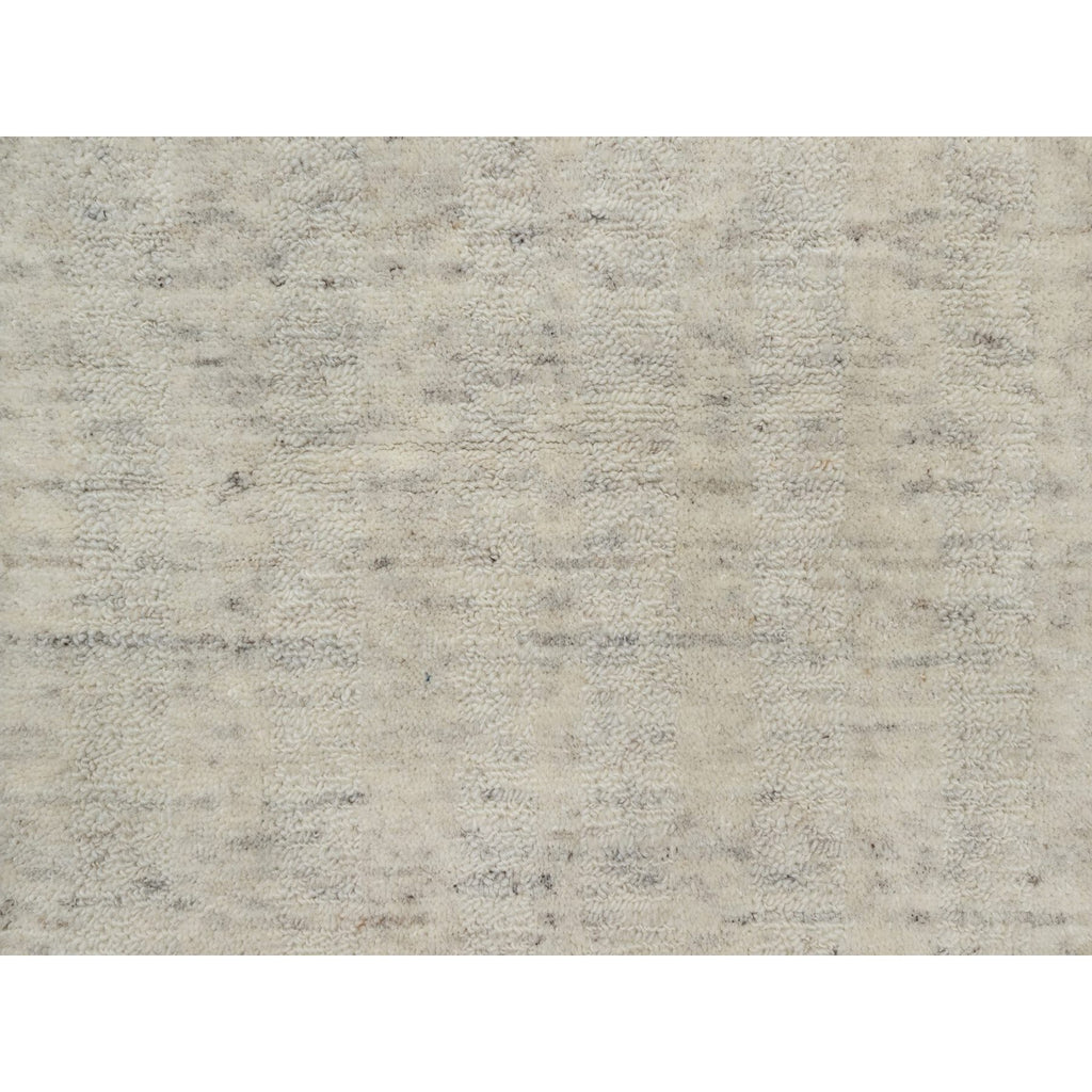 2'1"x3' Winter White, Hand Loomed, Salt And Pepper Effect With Vertical Stripes Design, Undyed Natural Wool, Sample, Mat, Oriental Rug FWR550782