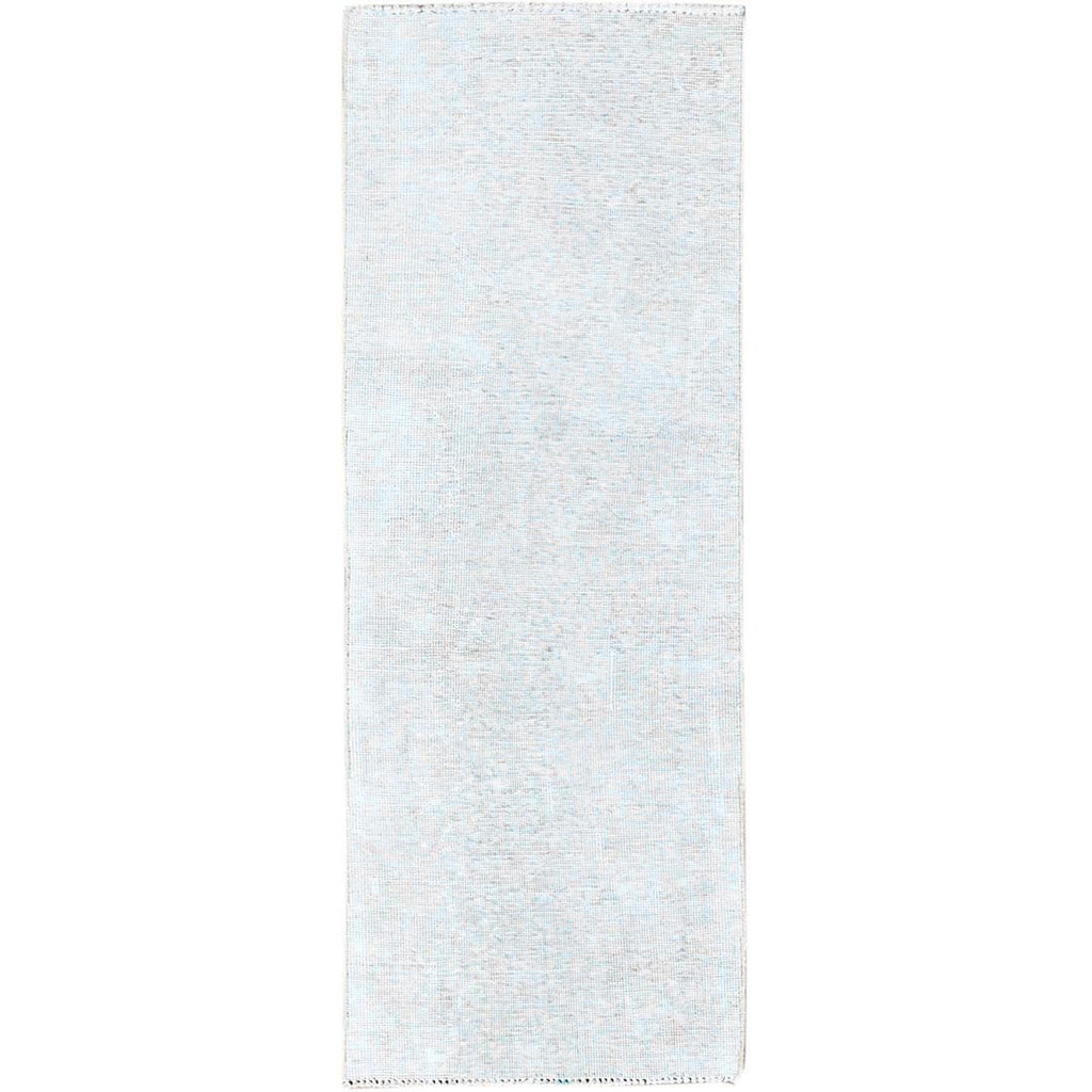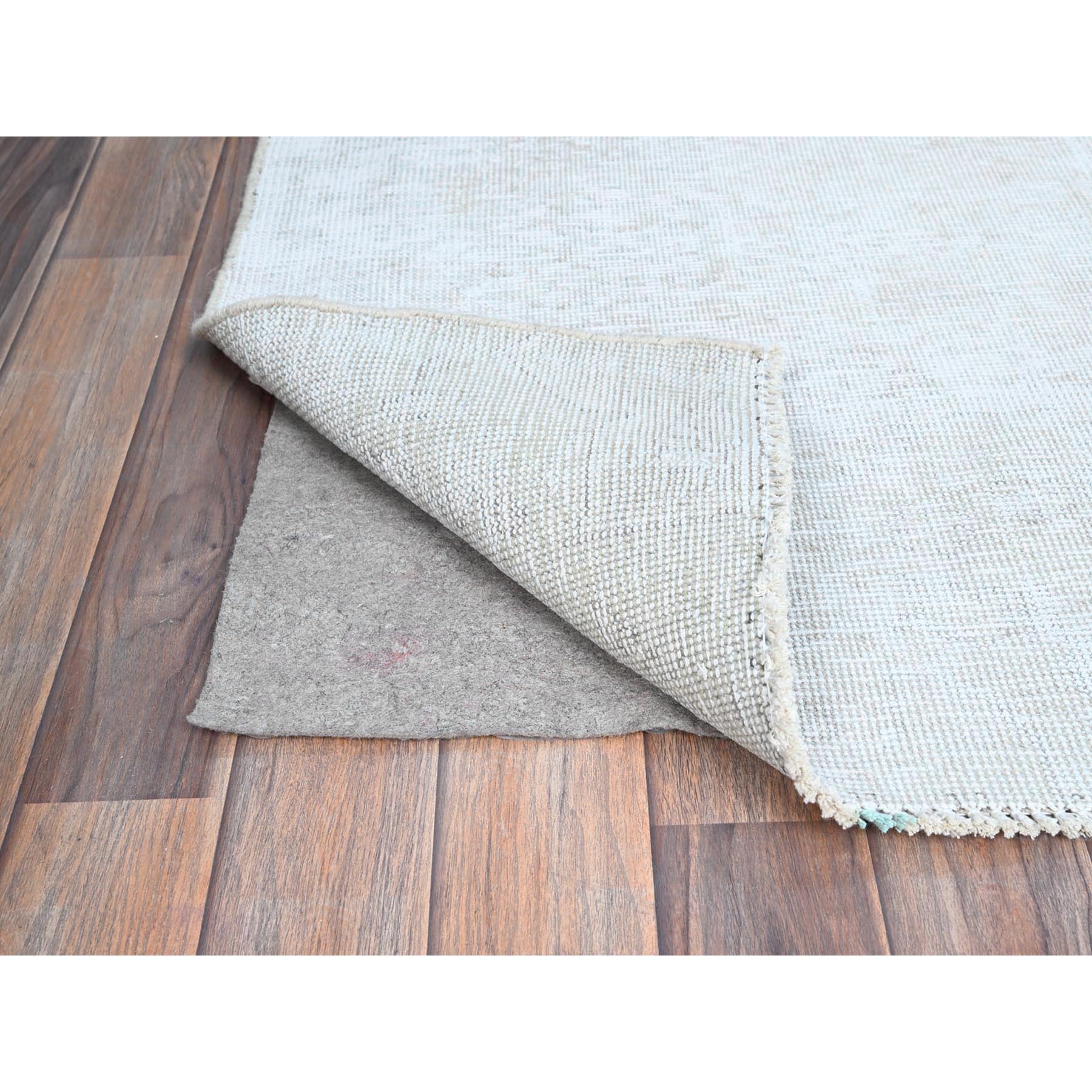 2'1"x5'10" Papyrus White, Worn Down Fragment, Organic Wool Hand Knotted White Wash Old Persian Tabriz, Distressed Look And Sheared Low, Sides And Ends Secured, Oriental Runner Rug FWR1320