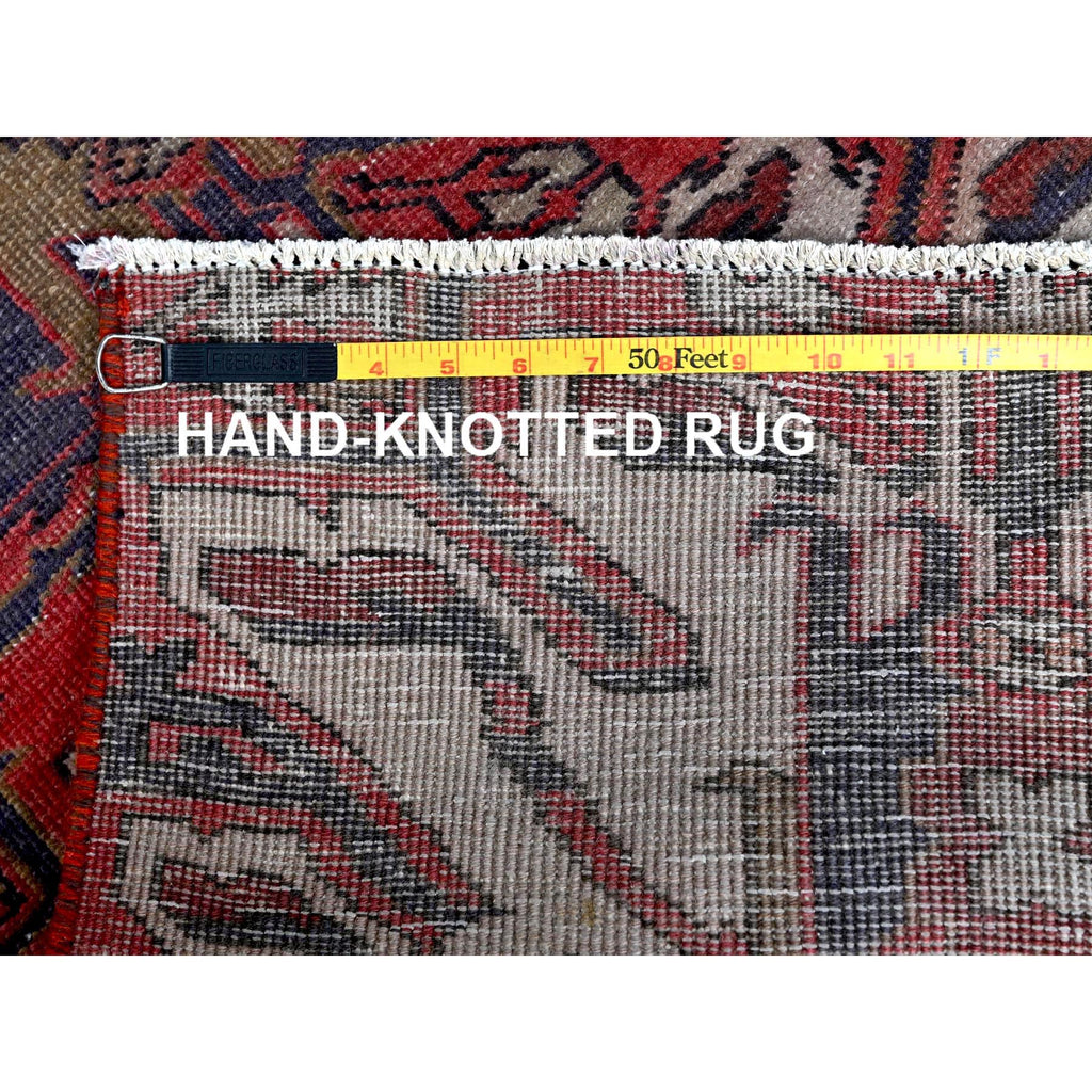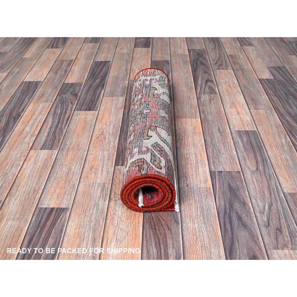 2'1"x5'4" Crimson Red, Vintage Persian Heriz With Eagle Kazak Design, Shaved Down, Zero Pile, Sides And Ends Professionally Secured, Hand Knotted, Pure Wool, Short & Narrow Runner, Oriental Rug FWR3828