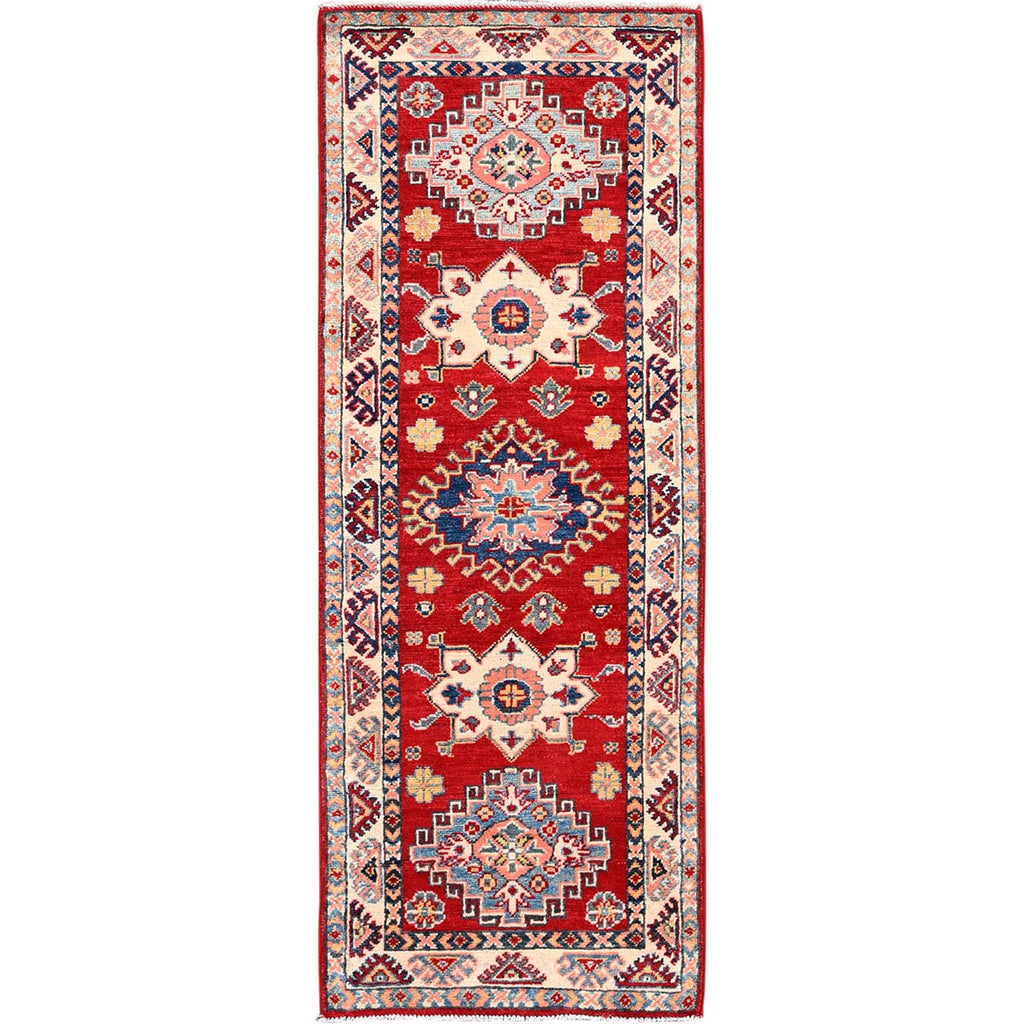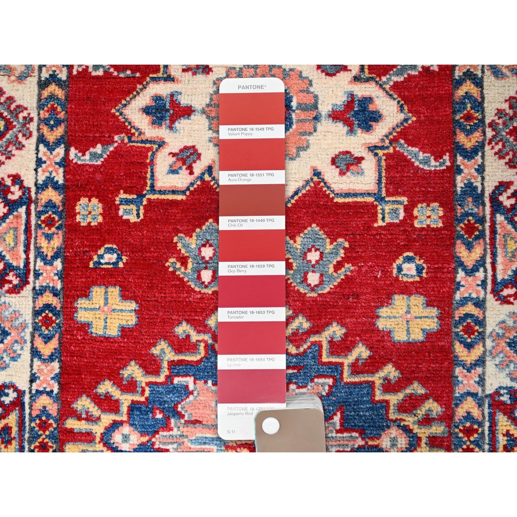 2'1"x5'6" Geranium Red And Oyster White, Kazak With Geometric Medallion Motifs, Natural Dyes, Dense Weave, 100% Wool, Hand Knotted, Oriental Rug FWR517008