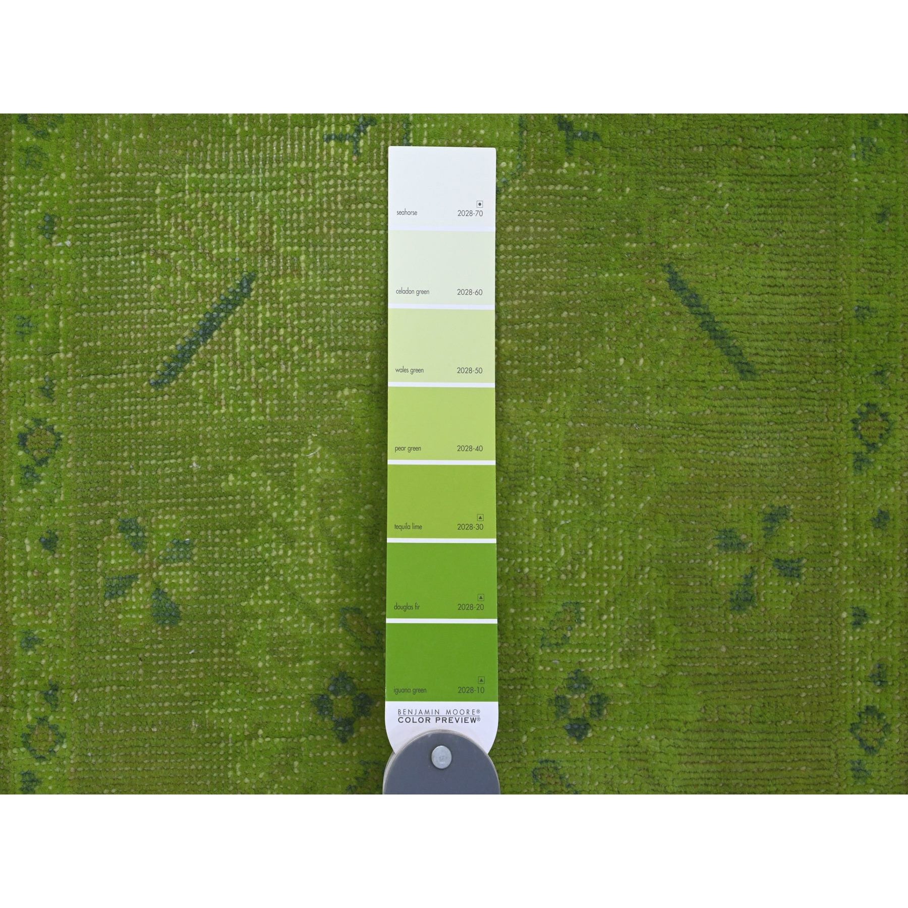 2'1"x5'9" Fern Green, Overdyed Kazak With Tribal Medallions Design, Hand Knotted, 100% Wool, Runner, Oriental Rug FWR124068