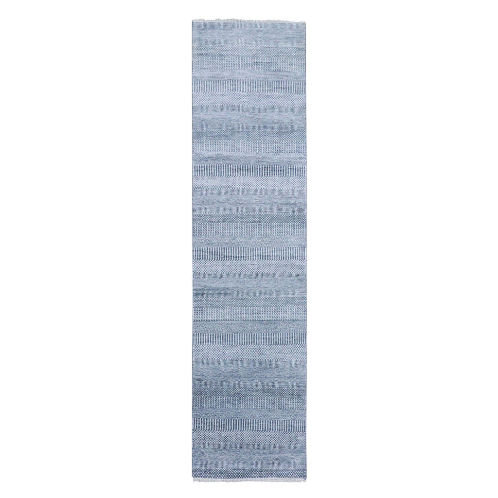 2'10"x10'2" Gray, Modern Grass Design Gabbeh, Densely Woven Wool And Silk Hand Knotted, Runner Oriental Rug FWR474882