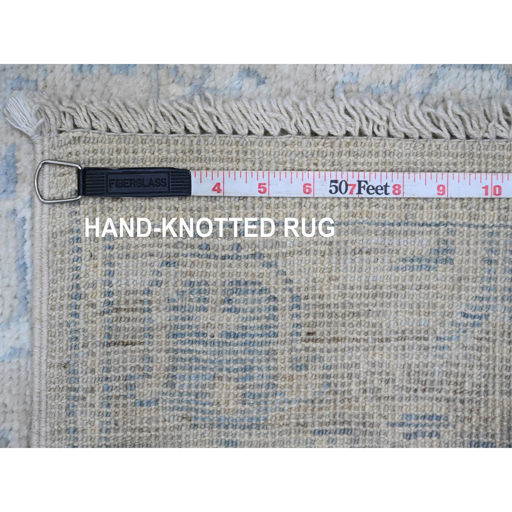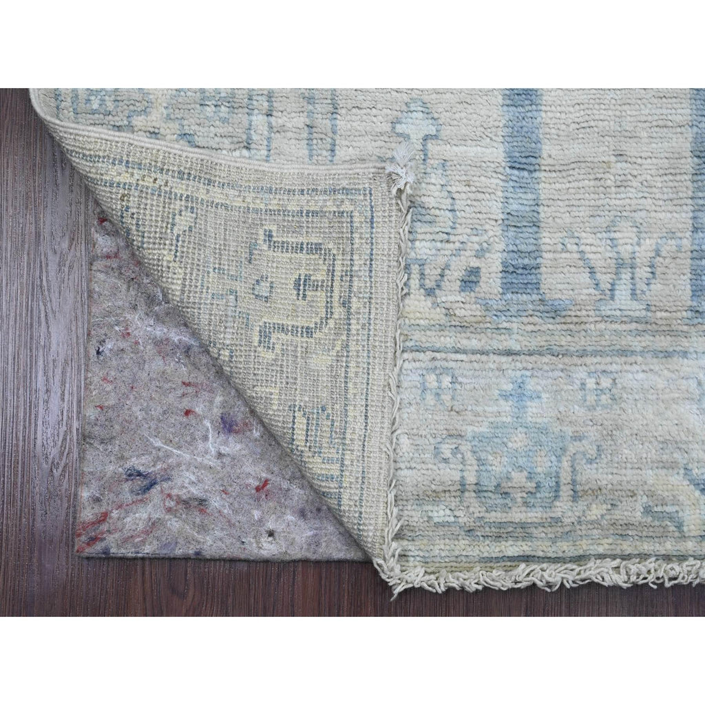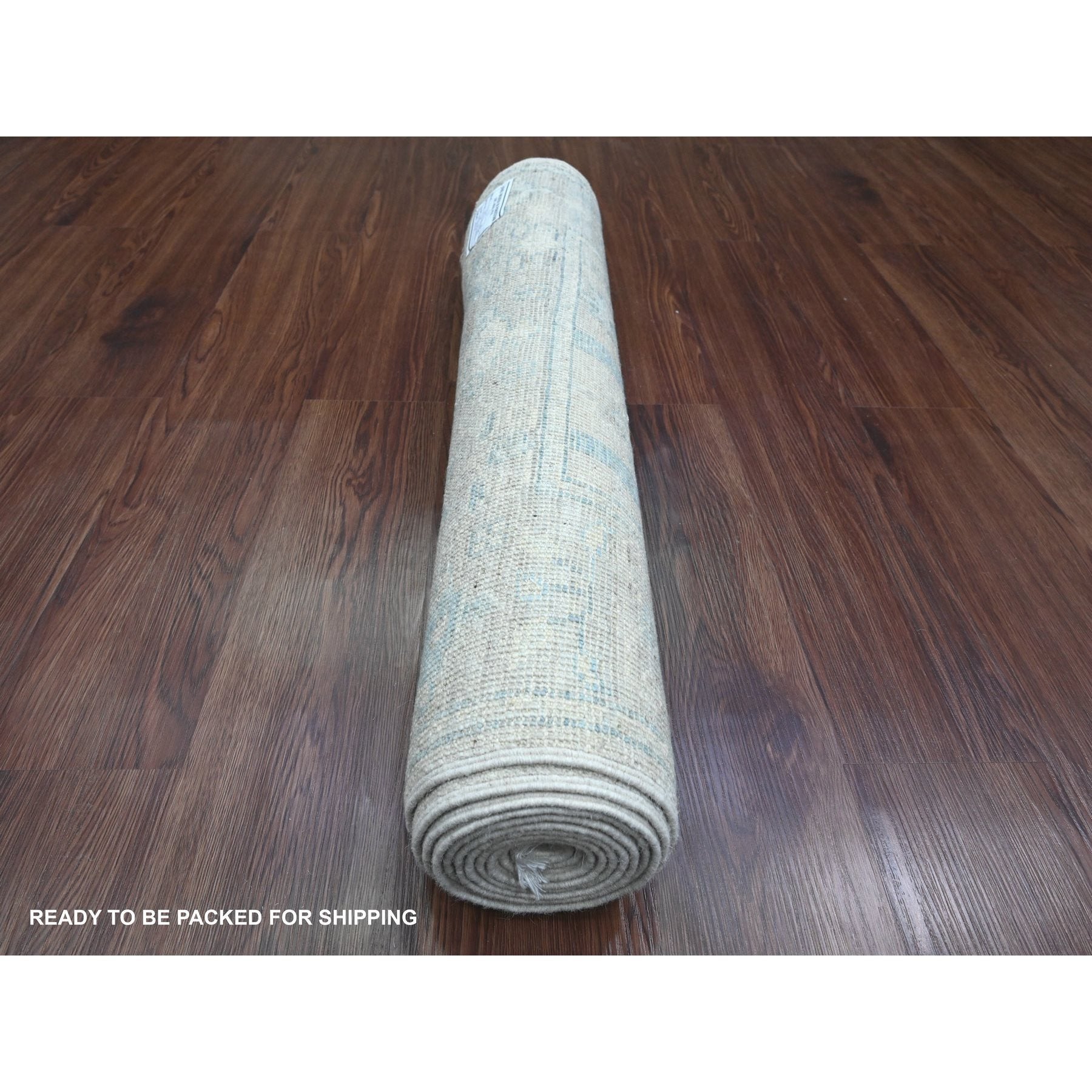 2'10"x10' Pearl White, Afghan Angora Oushak With Cypress Tree Design, Veggie Dyes, Pure Wool, Hand Knotted, Runner, Oriental Rug FWR539268