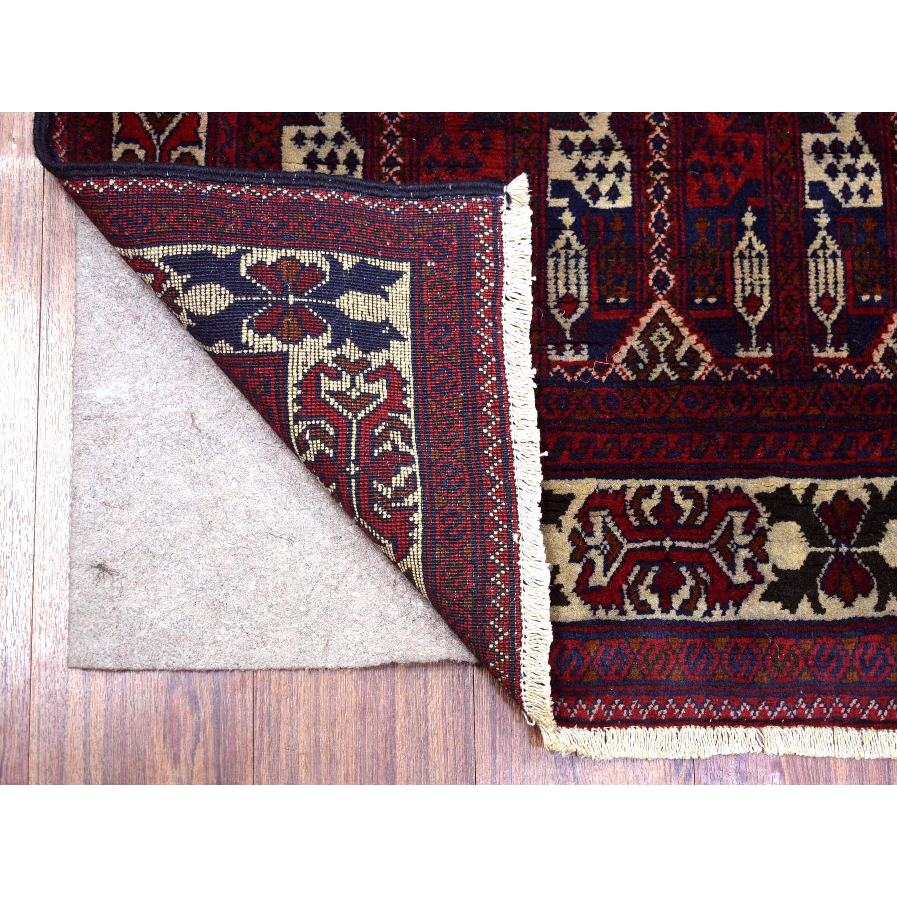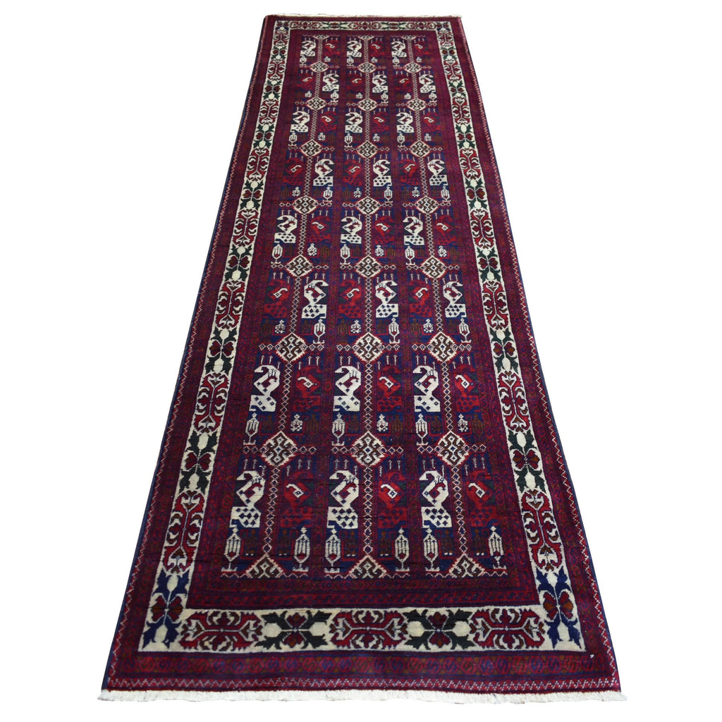 2'10"x10" Red With A Mix Of Ivory Soft And Shiny Wool, Hand Knotted With Geometric Repetitive Design Afghan Khamyab Runner Oriental Rug FWR432126
