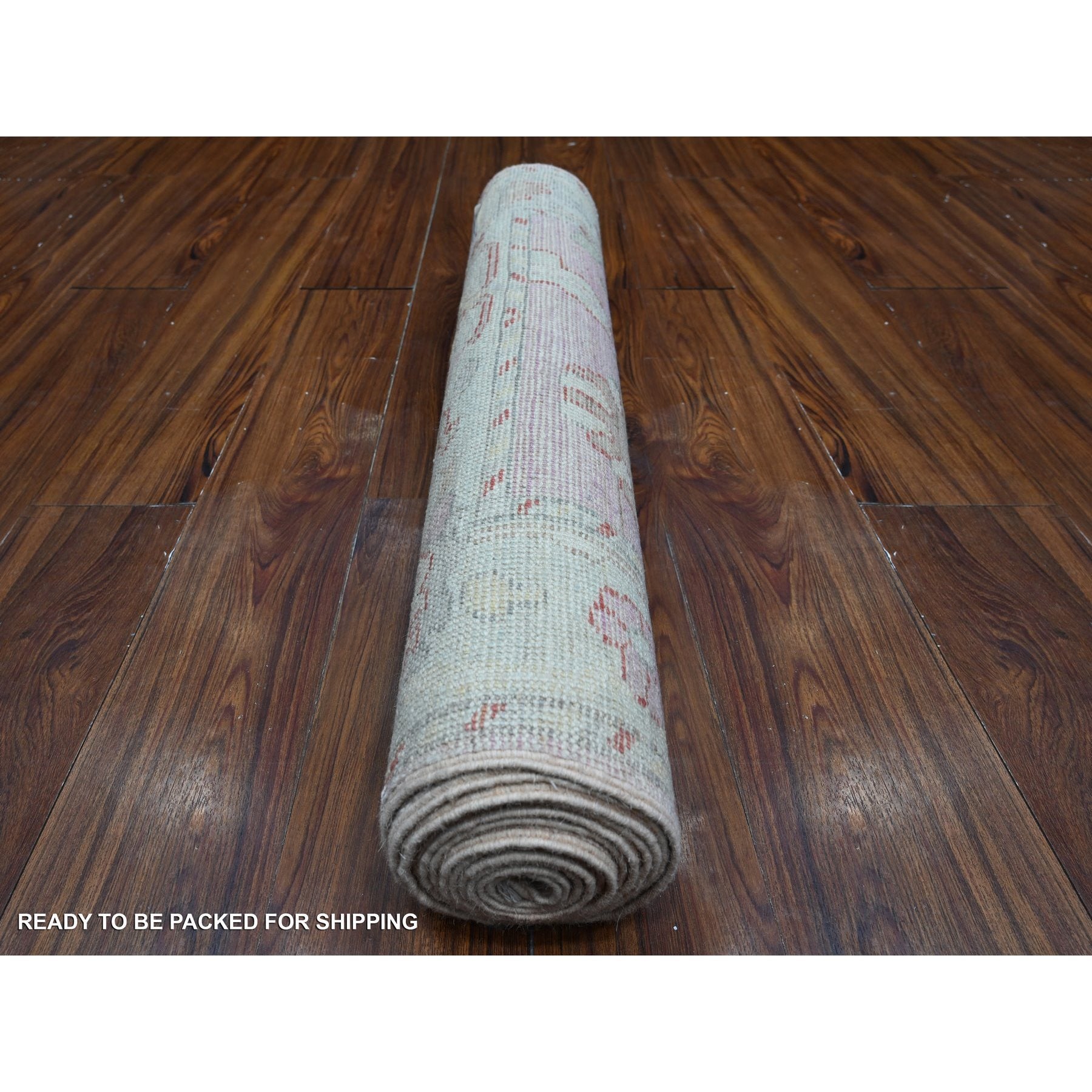 2'10"x11'6" Dust Storm Pink, Soft Wool Foundation, Natural Dyes, Hand Knotted, Village Elements All Over Design, Angora Oushak, Runner Oriental Rug FWR532926