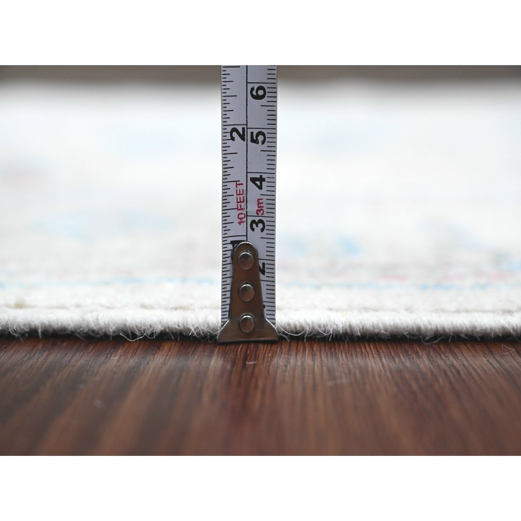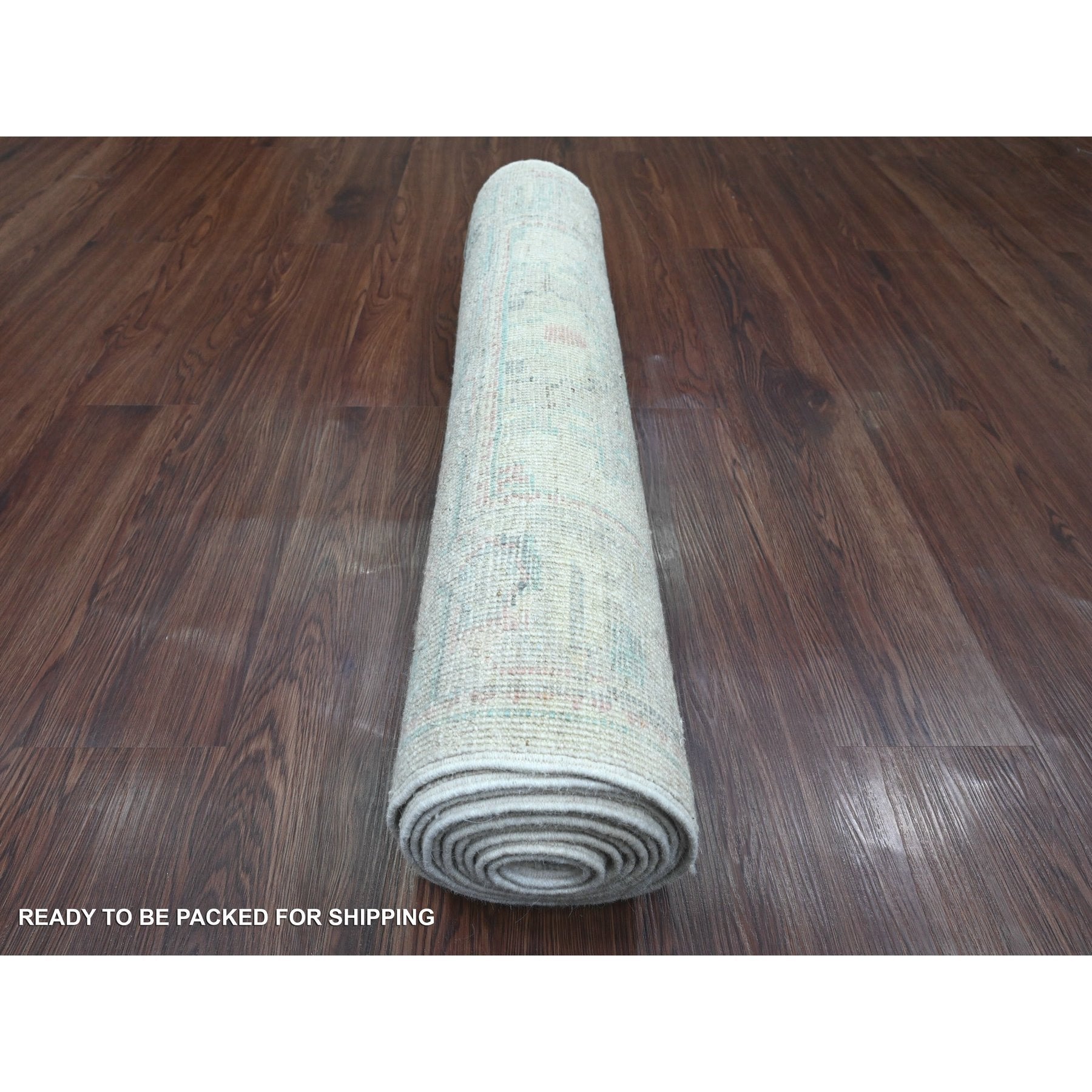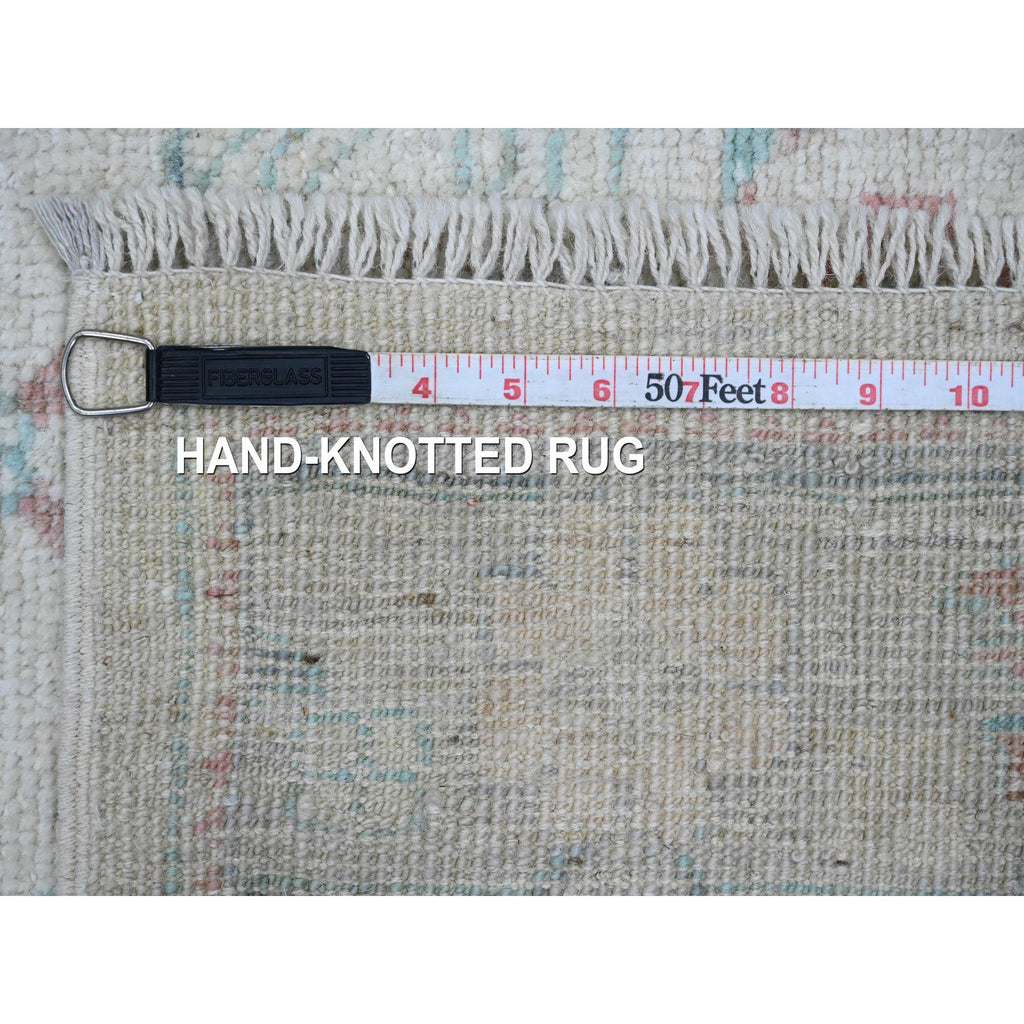 2'10"x11'7" Chiffon White, Hand Knotted, Afghan Angora Oushak With Colorful Leaf Design, Natural Dyes, 100% Wool, Runner, Oriental Rug FWR122850