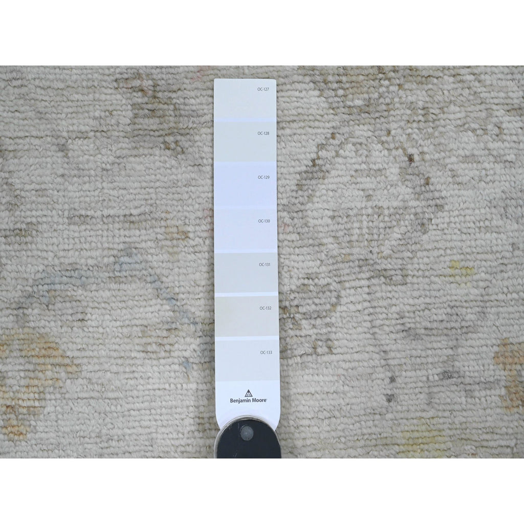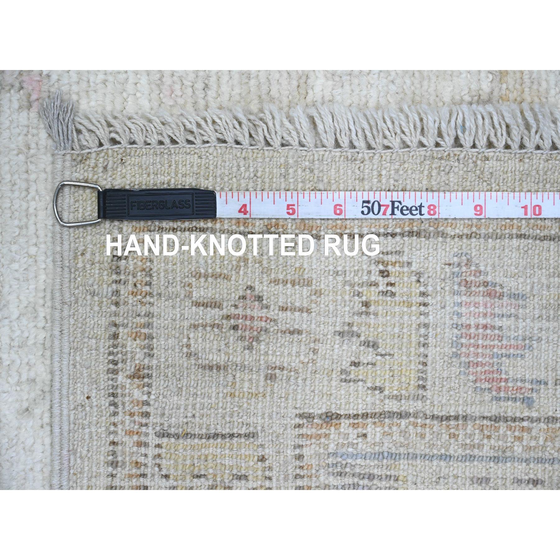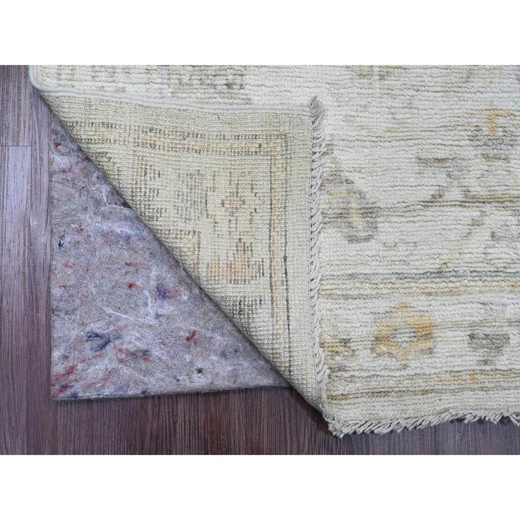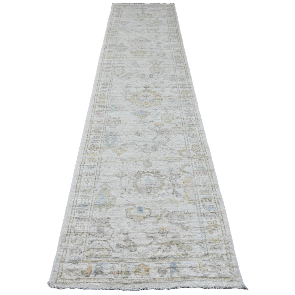 2'10"x12'5" Alabaster White, Hand Knotted, Afghan Angora Oushak With All Over Leaf Design, Vegetable Dyes, 100% Wool, Runner, Oriental Rug FWR120174
