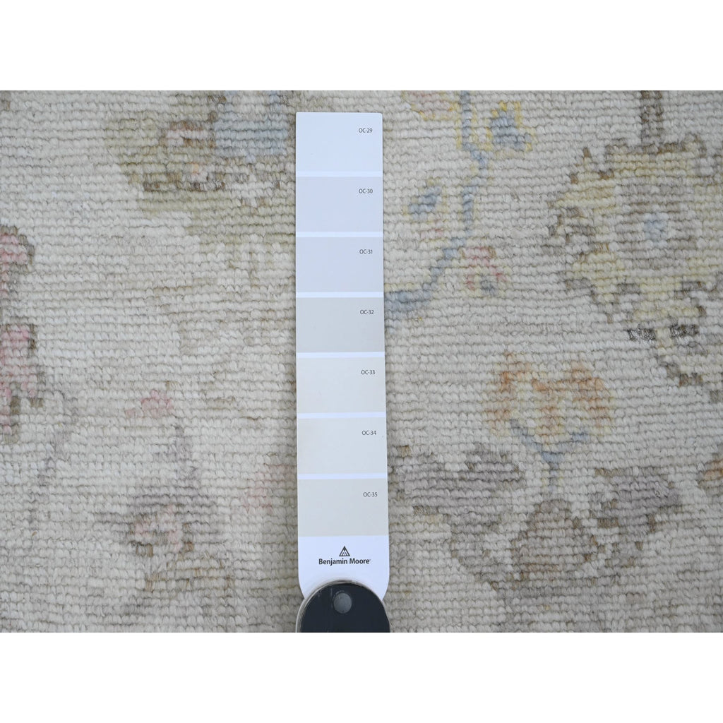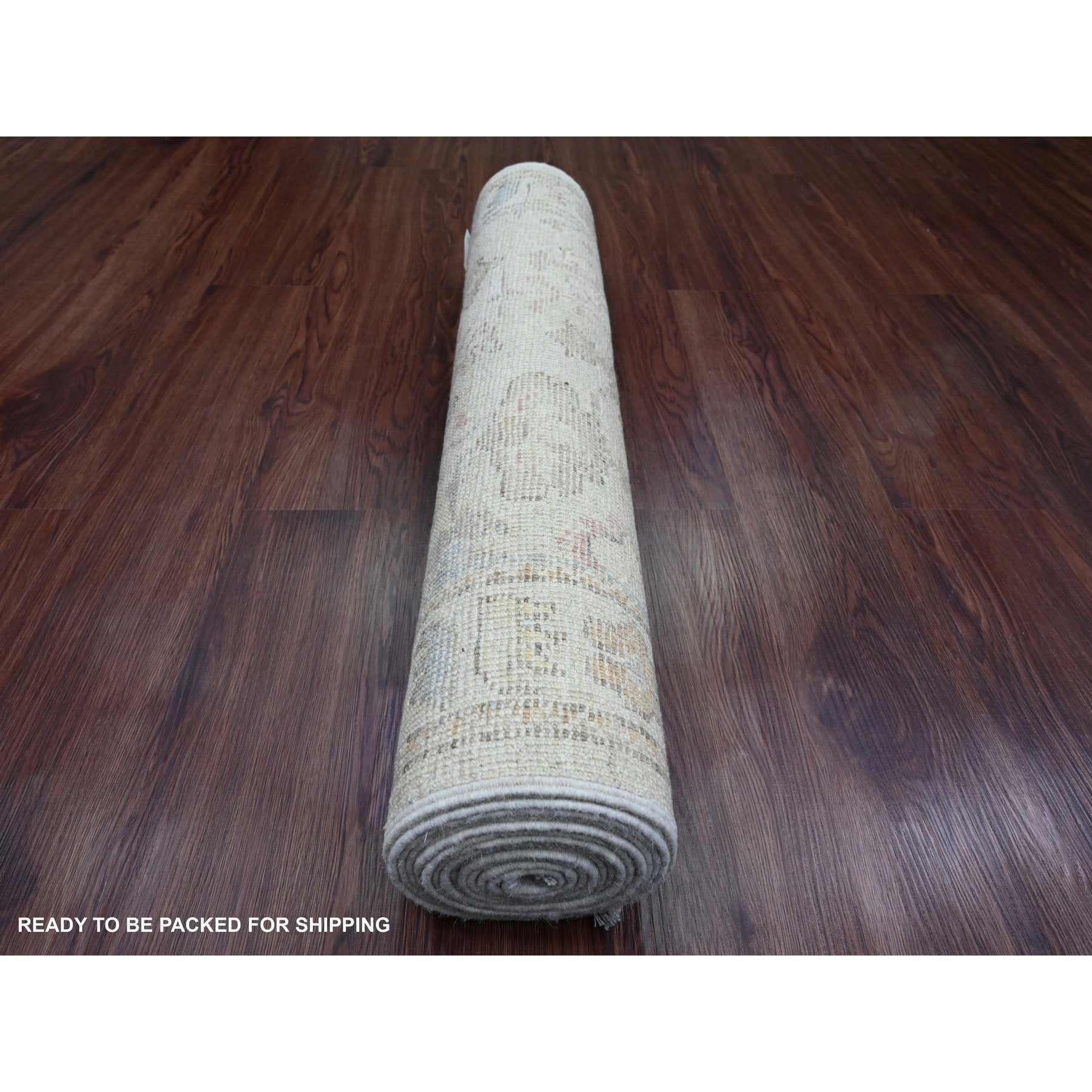 2'10"x12'7" Pearl White, 100% Wool, Afghan Angora Oushak With All Over Leaf Motifs, Natural Dyes, Hand Knotted, Runner, Oriental Rug FWR539652