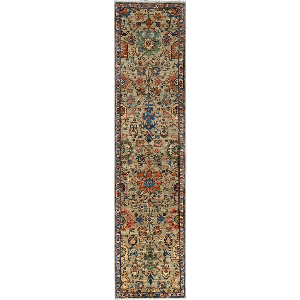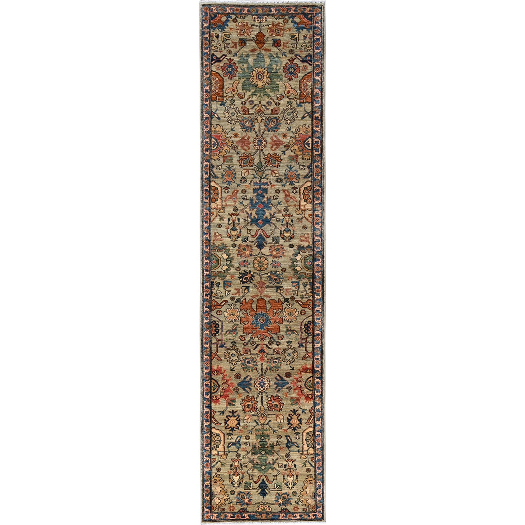 2'10"x12' Light Green, Heriz All Over Design, Aryana Collection, Vegetable Dyes, High Mountain Wool, Hand Knotted, Soft Pile, Densely Woven, Runner, Oriental Rug FWR6630