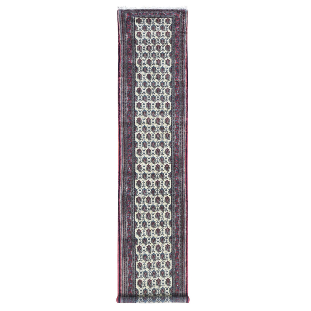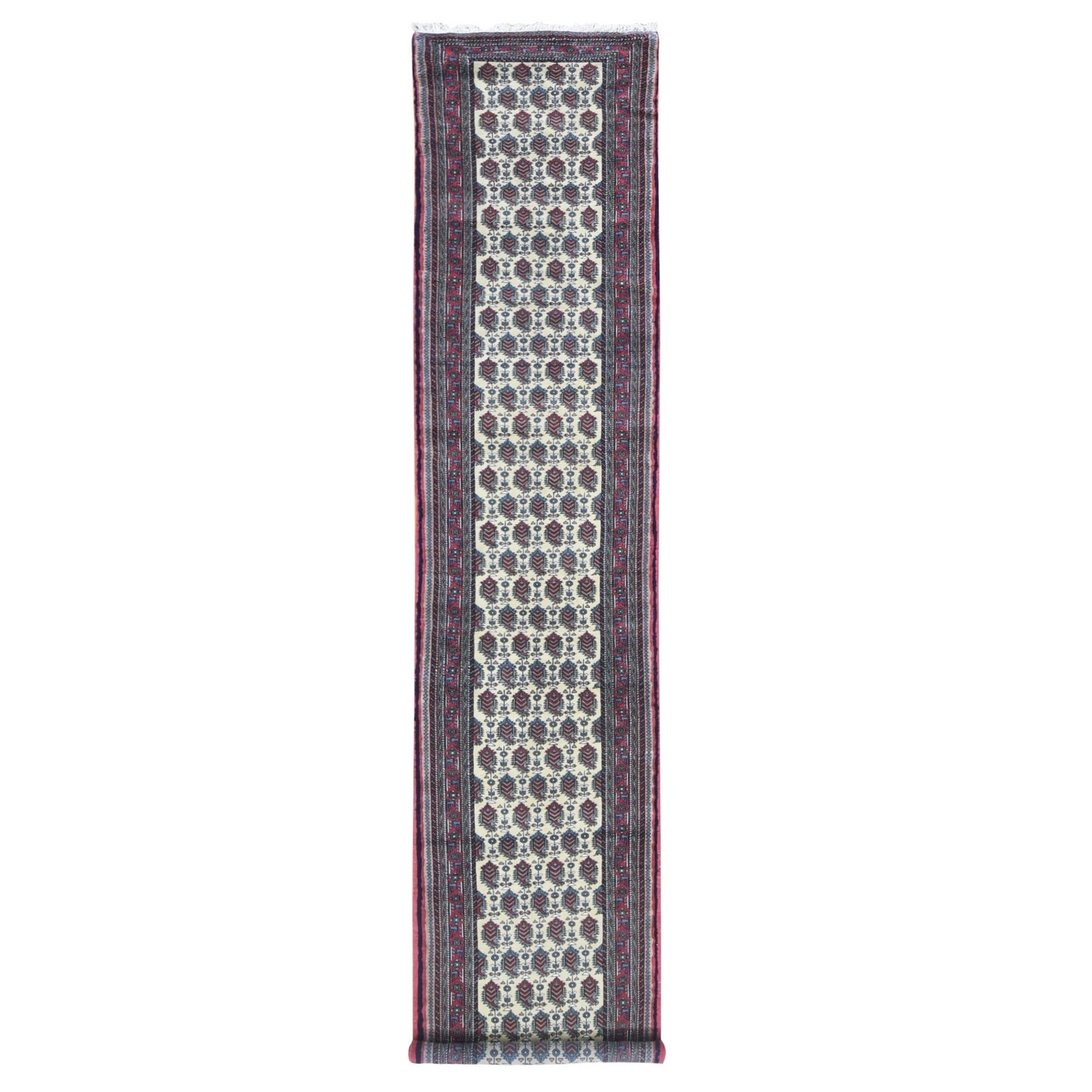 2'10"x13'2" Ivory, Tribal Northwest Persian With Repetitive Boteh Design, Pure Wool Hand Knotted, Runner Oriental Rug FWR481530