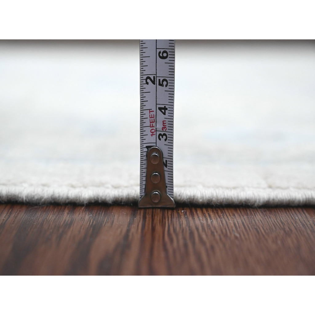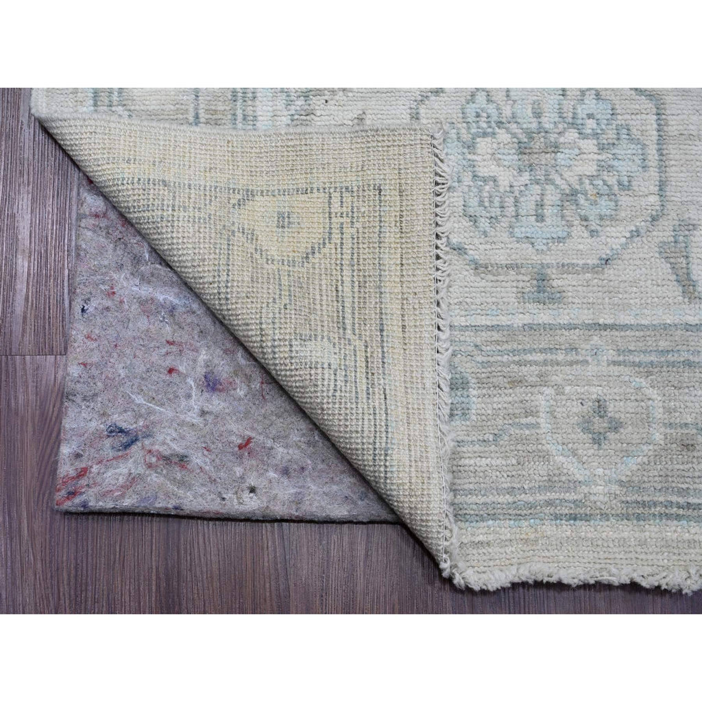 2'10"x13'7" Alabaster White, Afghan Angora Oushak With Large Leaf Design, Hand Knotted, Vegetable Dyes, 100% Wool, Runner, Oriental Rug FWR122838