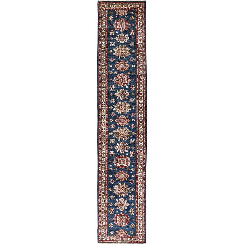 2'10"x13'8" Navy Blue, Afghan Super Kazak With Geometric Medallions Design, Natural Dyes, Densely Woven, Natural Wool, Hand Knotted, Runner Oriental Rug FWR497472