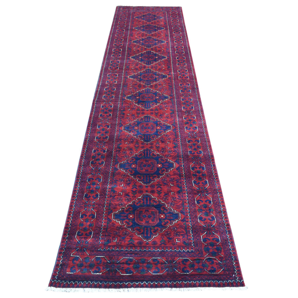 2'10"x13' Deep And Saturated Red, Afghan Khamyab With Tribal Medallions Design, Soft And Shiny Wool Hand Knotted, Runner Oriental Rug FWR434076