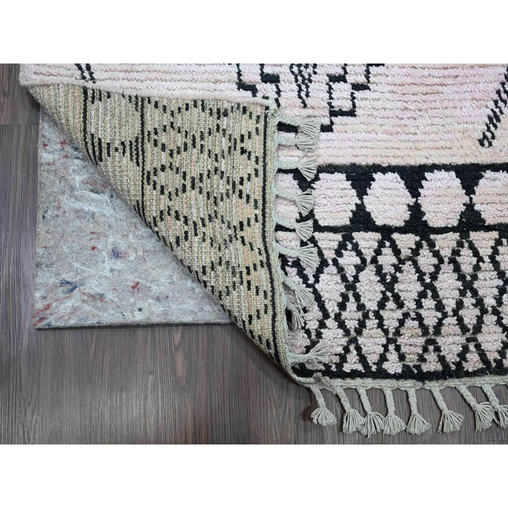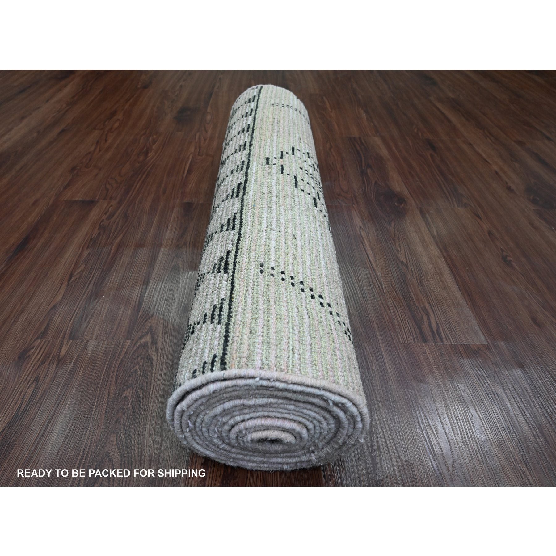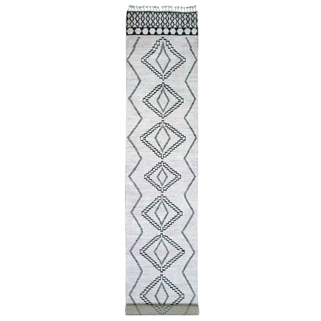 2'10"x15'8" Alabaster White, Moroccan Weave With Serrated Medallions Design, Soft Wool, Hand Knotted, Textured Pile, Xl Runner, Oriental Rug FWR121662