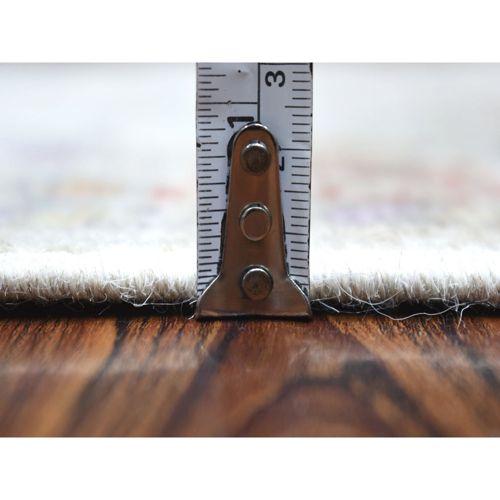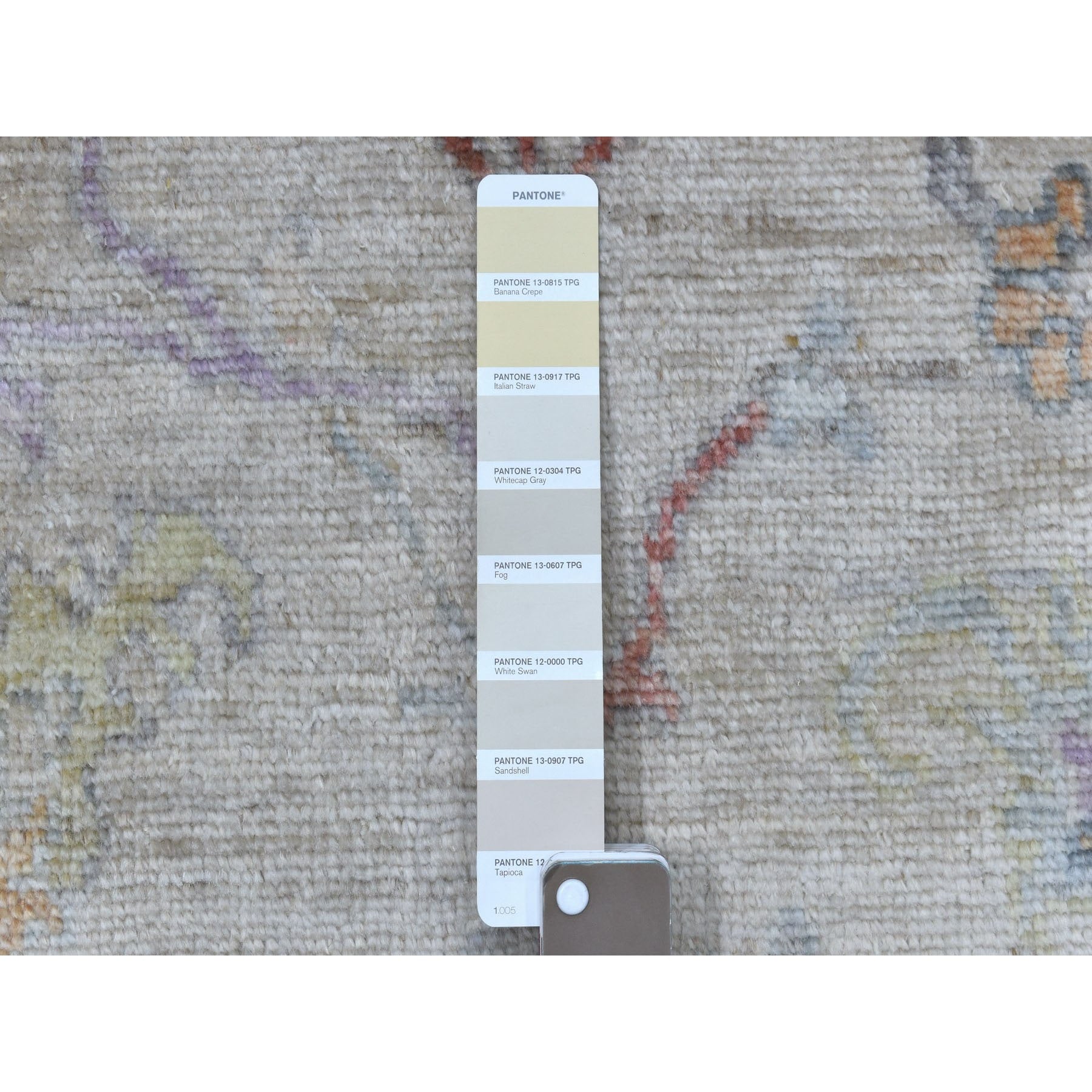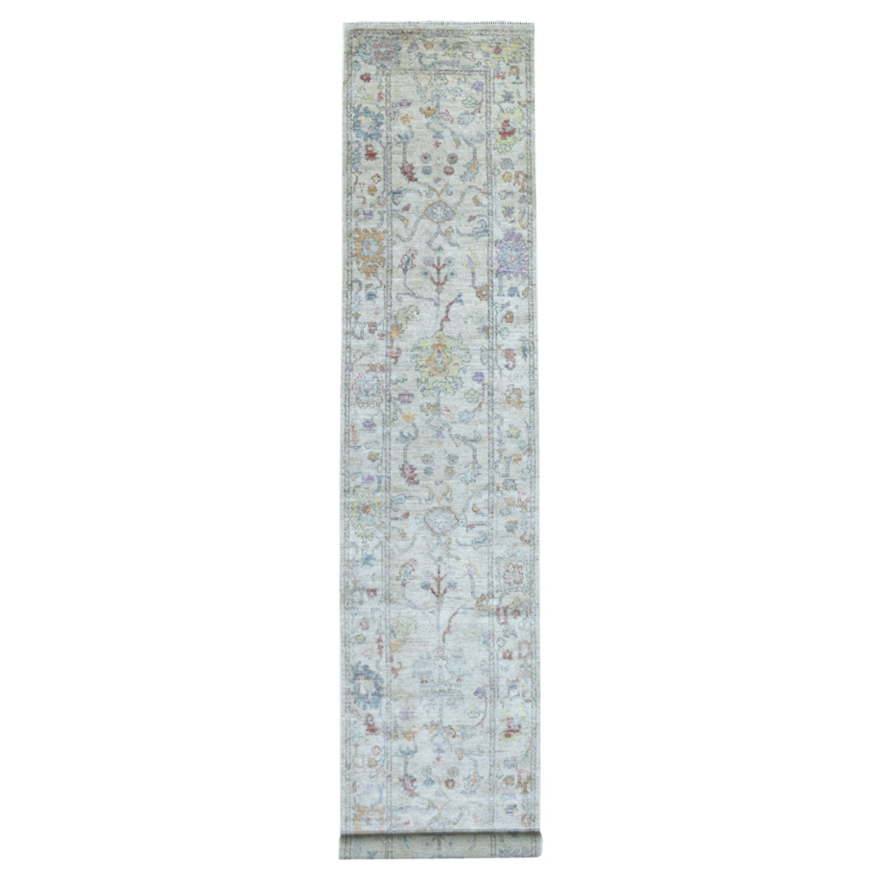 2'10"x16' Hand Knotted Soft, Velvety Plush Angora Oushak Light Gray With Colorful Motifs Oriental Xl Runner Rug FWR405582
